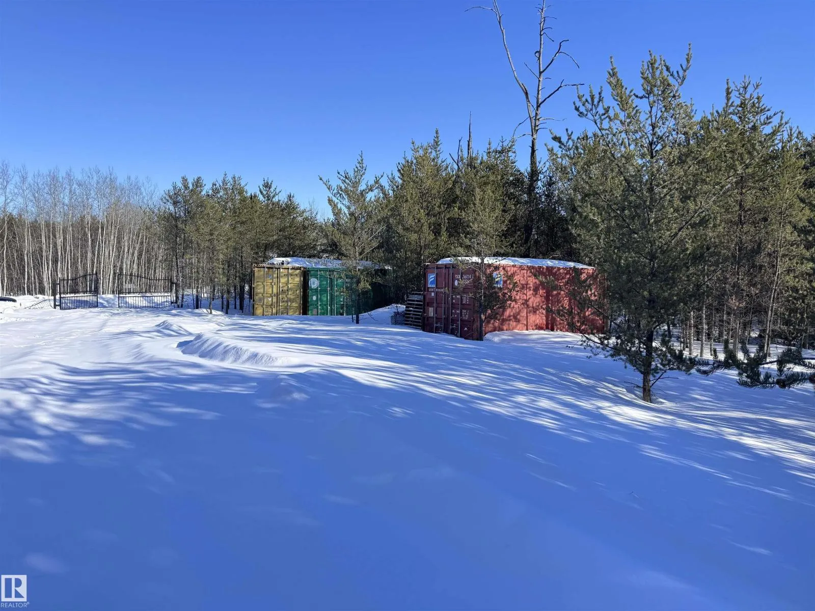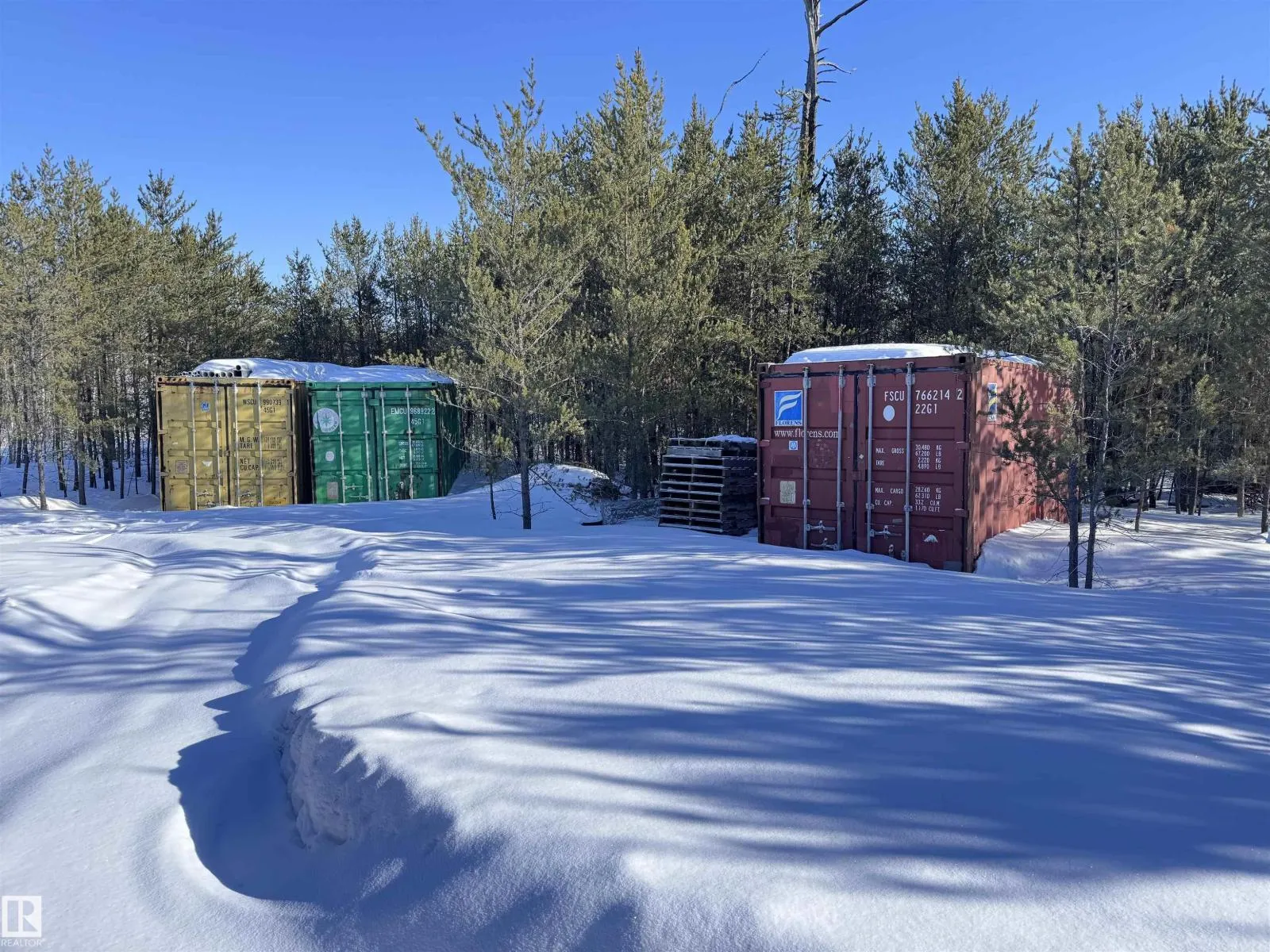 Nearly 27 acres of private, treed land just off the highway, offering seclusion with convenient access. This 26.85-acre parcel features sandy soil, natural sand dunes, mature pine trees, and is almost completely bushâideal for recreation, weekend escapes, or future development. The property includes a gated driveway (black steel decorative gate) a vinyl-sided addition suitable as a mobile home addition or storage shed, and a WETT-certified wood stove. Two water cubes are housed on site, along with a 1250-gallon septic holding tank (no permit). A 3000-gallon propane tank with a 25-year certificate is included, plus one 20â sea can and two 40â sea cans for ample storage. Electricity is scheduled to be installed soon. Despite its peaceful setting, this property is close to Helliwell Lake, Tawatinaw Valley Ski Hill, and Nordic Centreâoffering year-round outdoor recreation. Close to Eleanor Hall School (K-9) in Clyde. (id:27476)