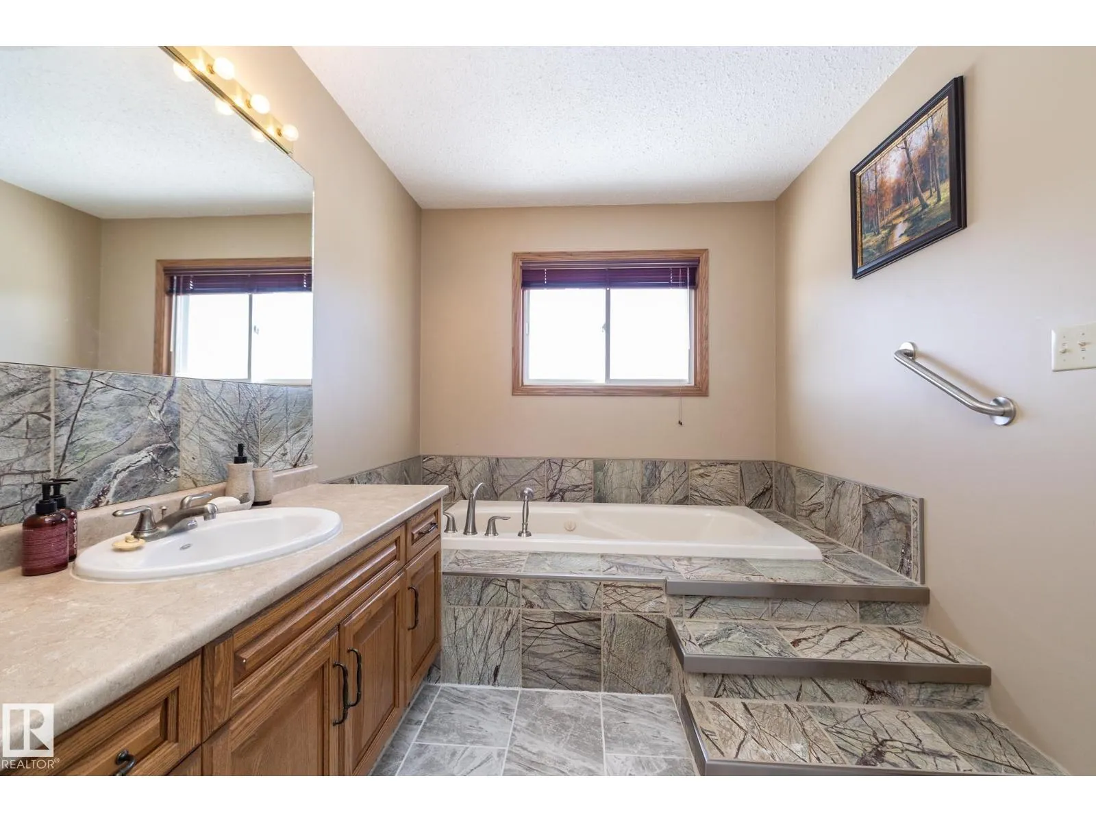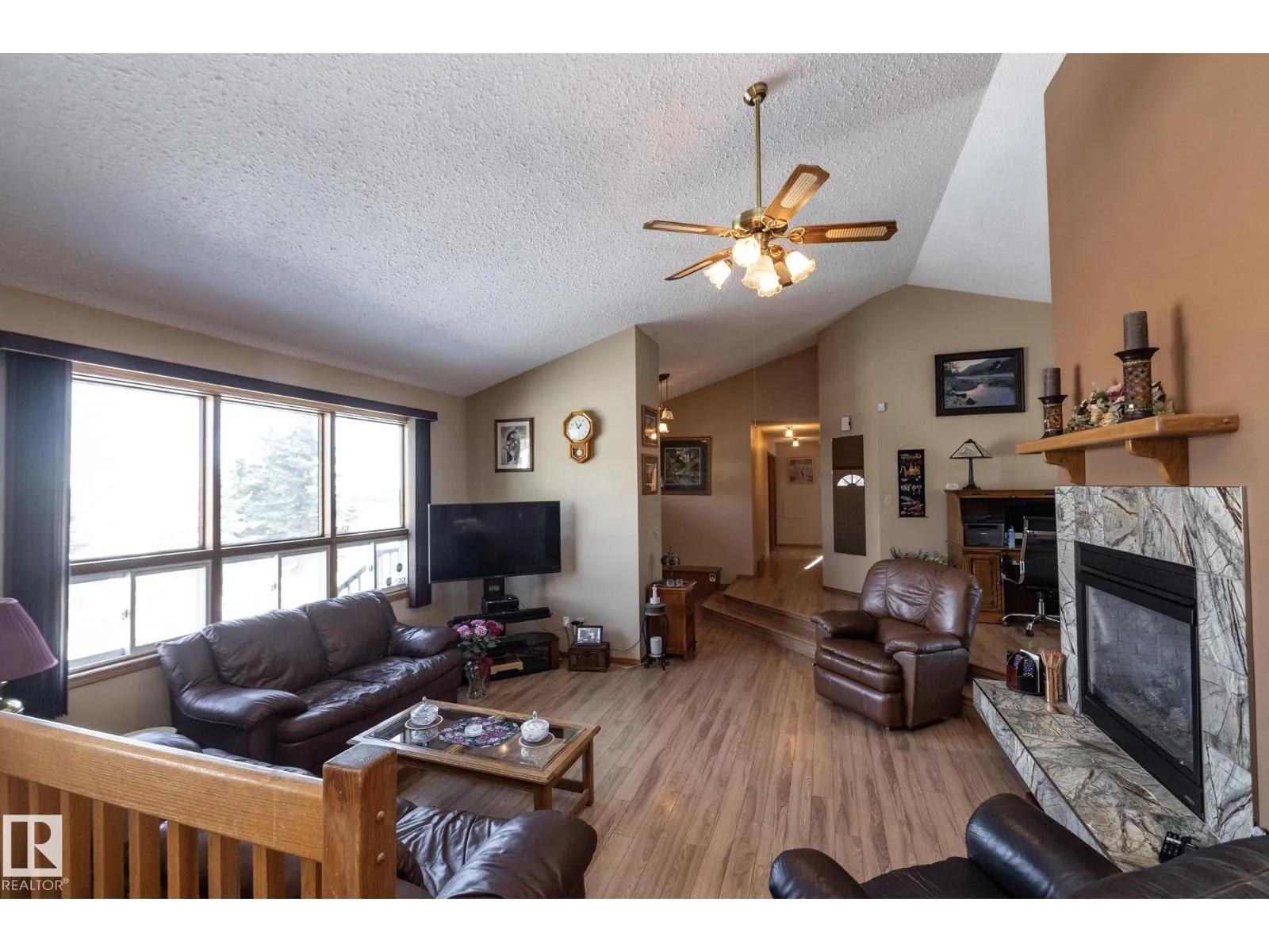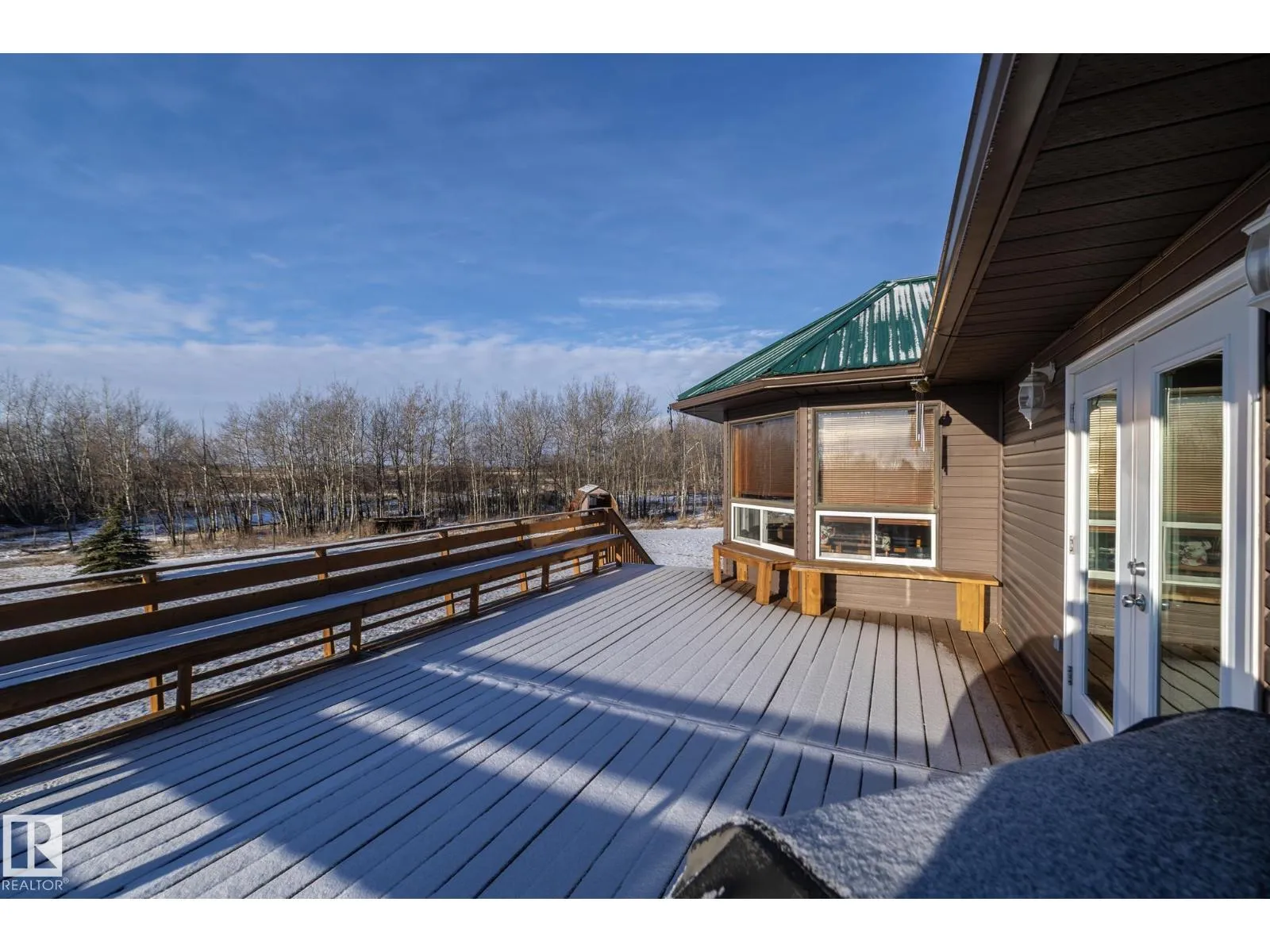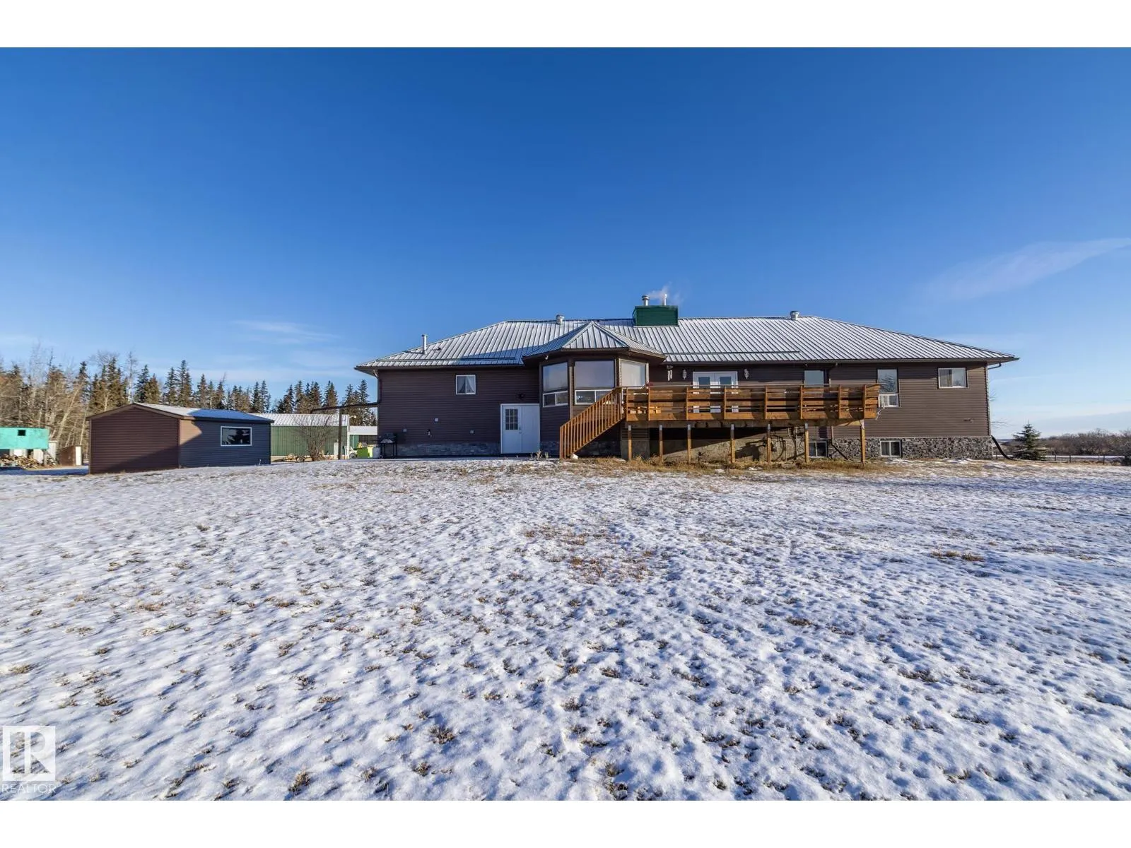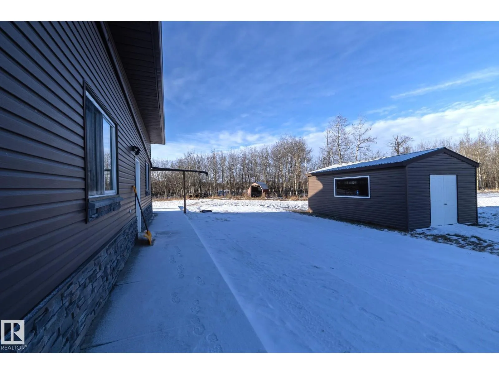 Acreage living at its fines! This versatile 5 bdrm home sits on 28.5 acres & offers nearly 2200 sq ft PER LEVEL--perfect for blended families, multi-gen living or anyone needing serious space. Main floor features 3 inviting bdrms, including a gorgeous primary suite w/spa ensuite: sunken soaker tub, separate shower & beautiful tile finishes. Sunken living room shares a 2-sided FP with den, which opens onto a HUGE West-facing deck. The bright kitchen offers panoramic views, loads of prep/storage space & easy access to the dining room. Each level features full kitchens & laundry, for true independent living. The lower level includes 2 large bdrms, full bath, rec room, games area & storage. Outside is a DREAM for hobbyists: An oversized dbl garage w/8' o/h doors, storage shed, PLUS 2 SHOPS! (id:27476)