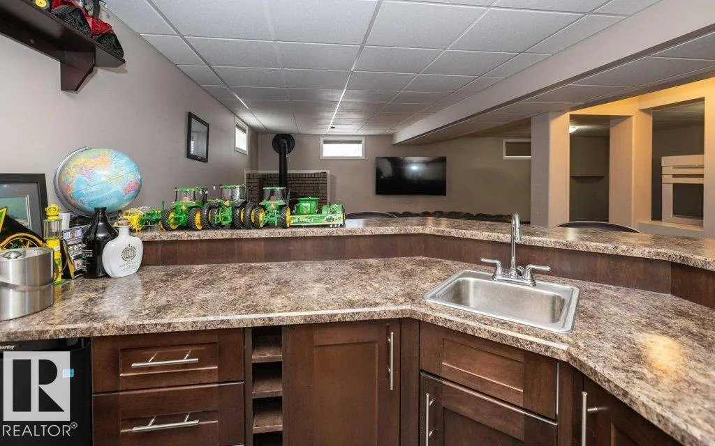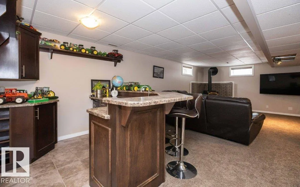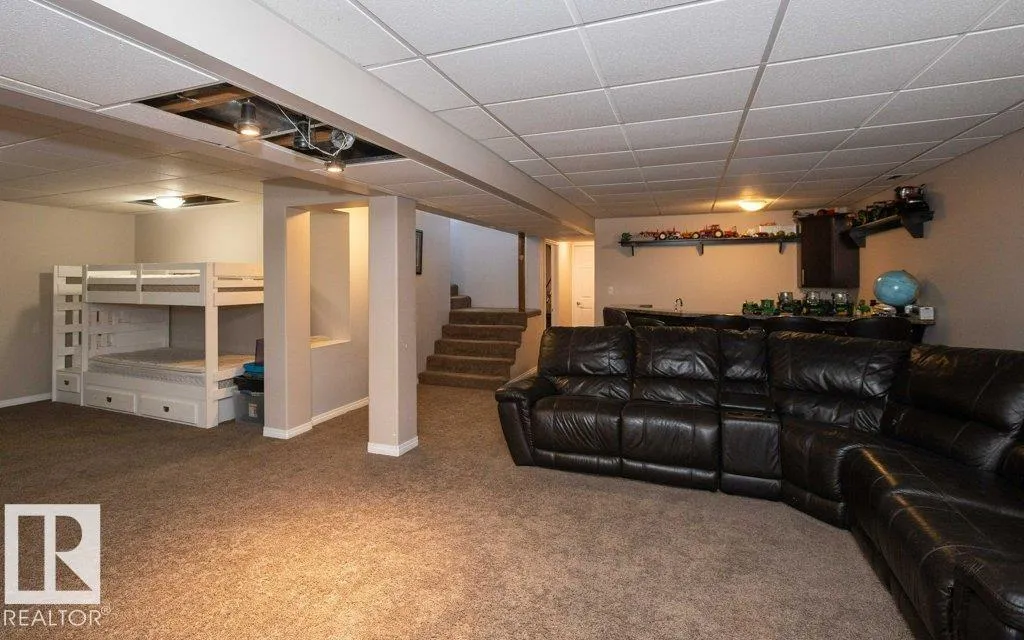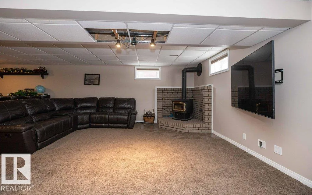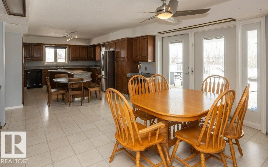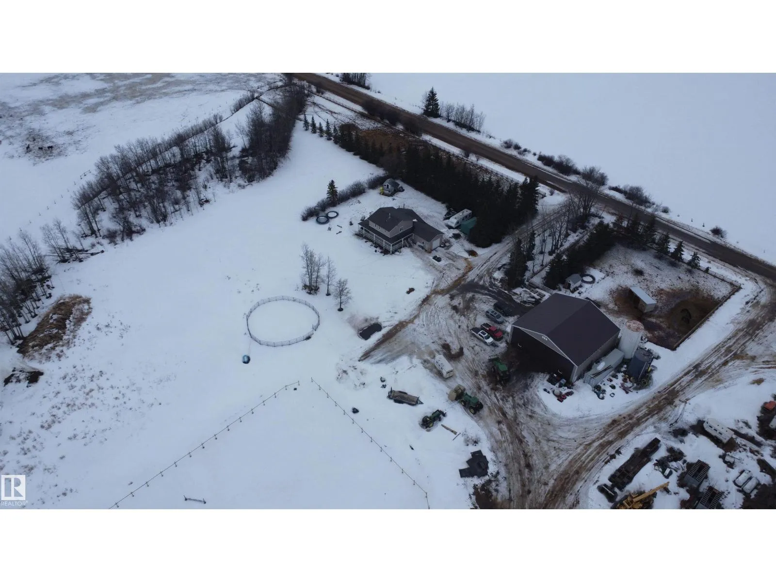 12.72-acre animal-ready acreage featuring a fully finished 2,186 sq ft two-story home with attached heated garage and impressive 60x60 shop/airplane hangar. The main floor offers a bedroom with Murphy bed, 3-pc bath, walk-in closet, laundry with wash tub and space for a deep freezer, and a large south-facing living room with hard wood floors. The massive kitchen with island and dining area open through garden doors to a wraparound composite deck with aluminum railing and hot tub (as is). Upstairs includes three bedrooms, a spacious primary suite with walk-through closet and 3-pc ensuite, plus a 3-pc bath with jetted tub. The fully finished basement features a family room with wet bar and wood stove, bedroom, 4-pc bath, mechanical room, and storage. Central A/C adds comfort. Upgraded vinyl windows. Outside boasts a new sand-based riding arena. The shop includes an overhead door, folding hangar door, office, 2-pc bath, and mezzanine. Located just one crossroad off pavement for convenient access. (id:27476)
