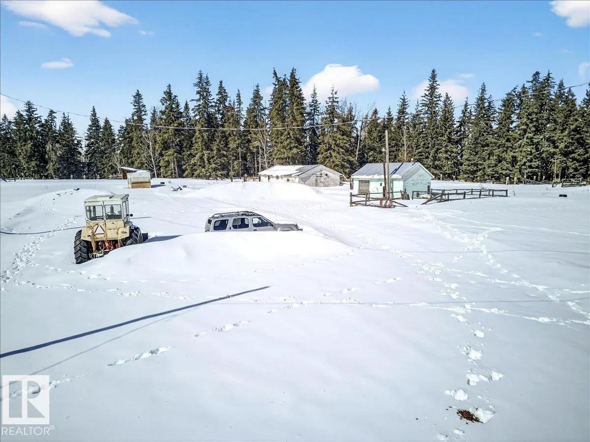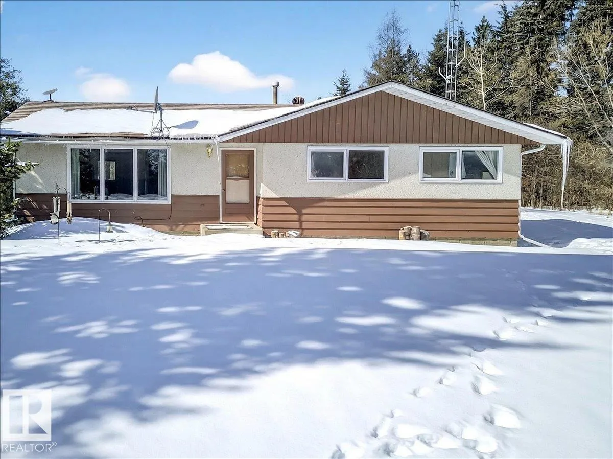 Escape to the peace and privacy of country living on this beautiful 11.1-acre property in Rural Westlock County. This 1,098 sq. ft. bungalow offers 4 beds, 2.5 baths, a den, and a fully finished basement. The thoughtfully designed floor plan features laminate flooring throughout, large bright windows, and plenty of functional living space. The kitchen has ample cabinet and counter space, a gas stove, refrigerator and built-in dishwasher. Adjacent to the kitchen is a spacious dining area with room for all your guests. With 3 generously sized bedrooms on the main floor, the basement offers an additional family room, a bedroom, a den, and a 3-piece bathroom. Outside, enjoy a heated workshop, corral, animal shelter, and additional outbuildings. Located just minutes off Hwy 44, only 5 mins to Fawcett, 10 mins to Hidden Valley Golf Course, and quick access to the scenic Pembina River. Surrounded by mature trees and beautiful landscaping, this private oasis offers tranquility in the peaceful countryside. (id:27476)