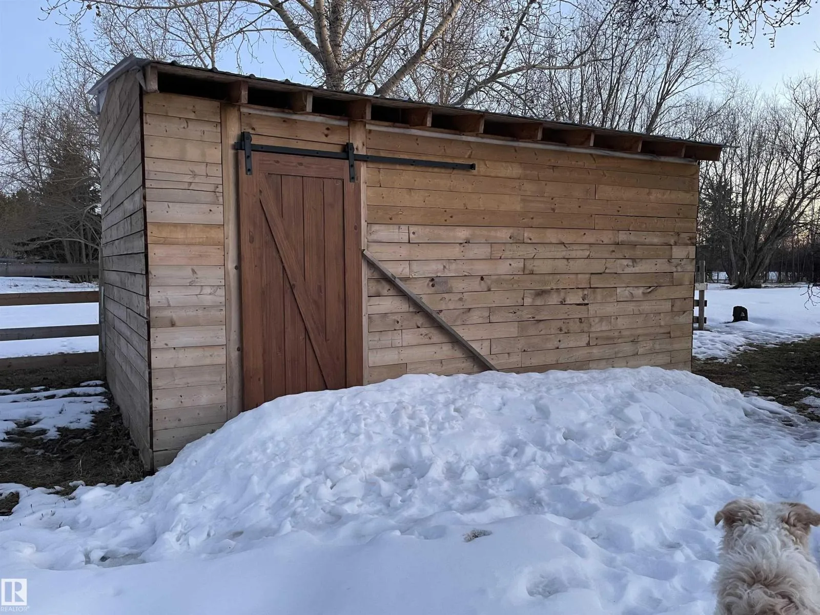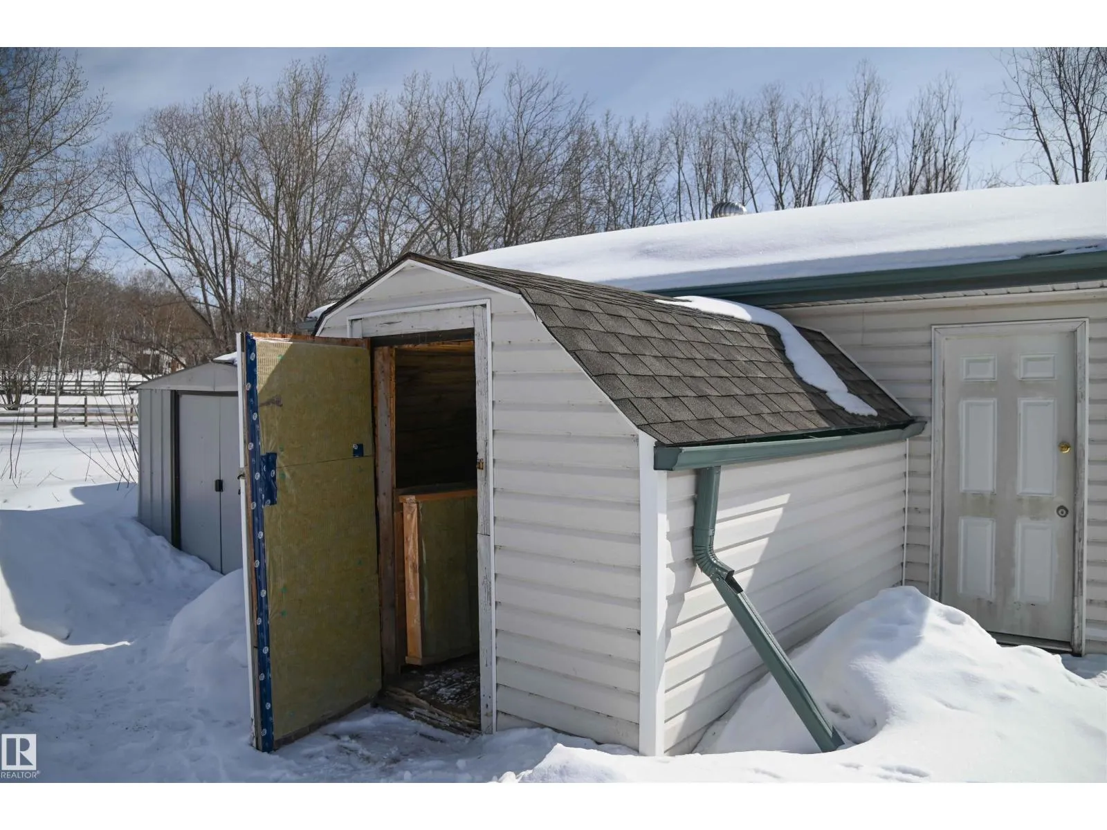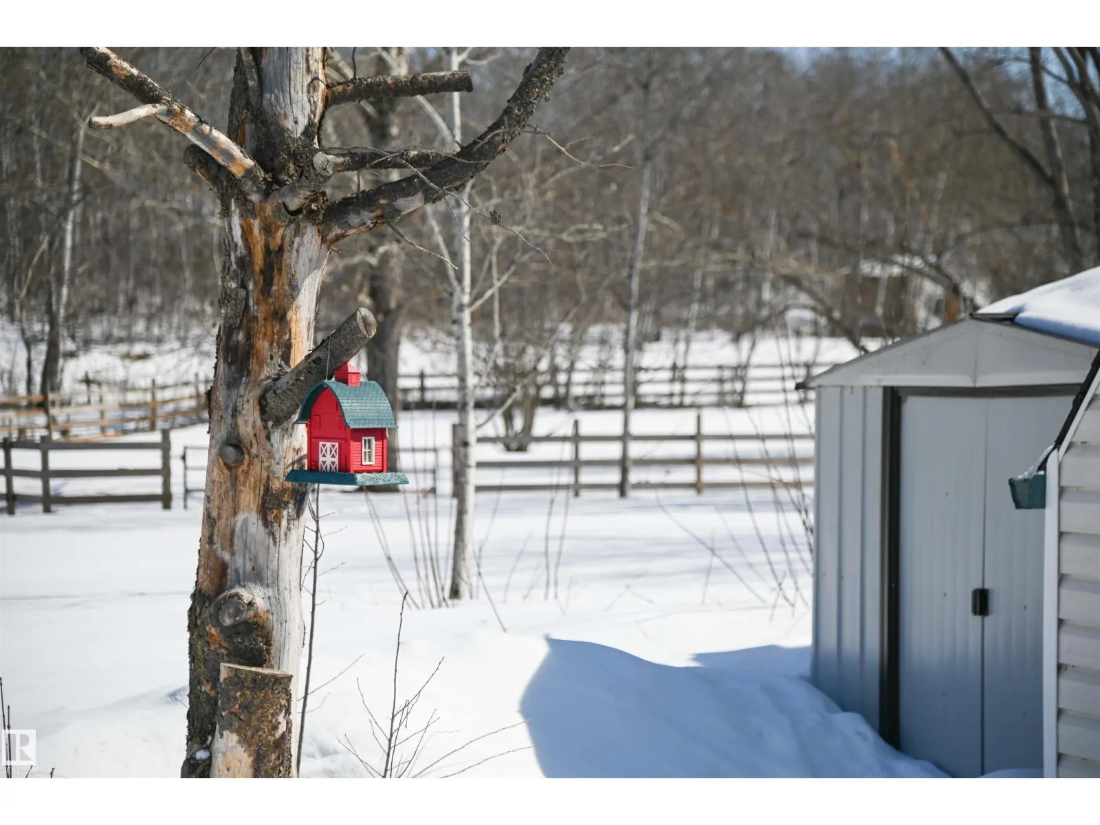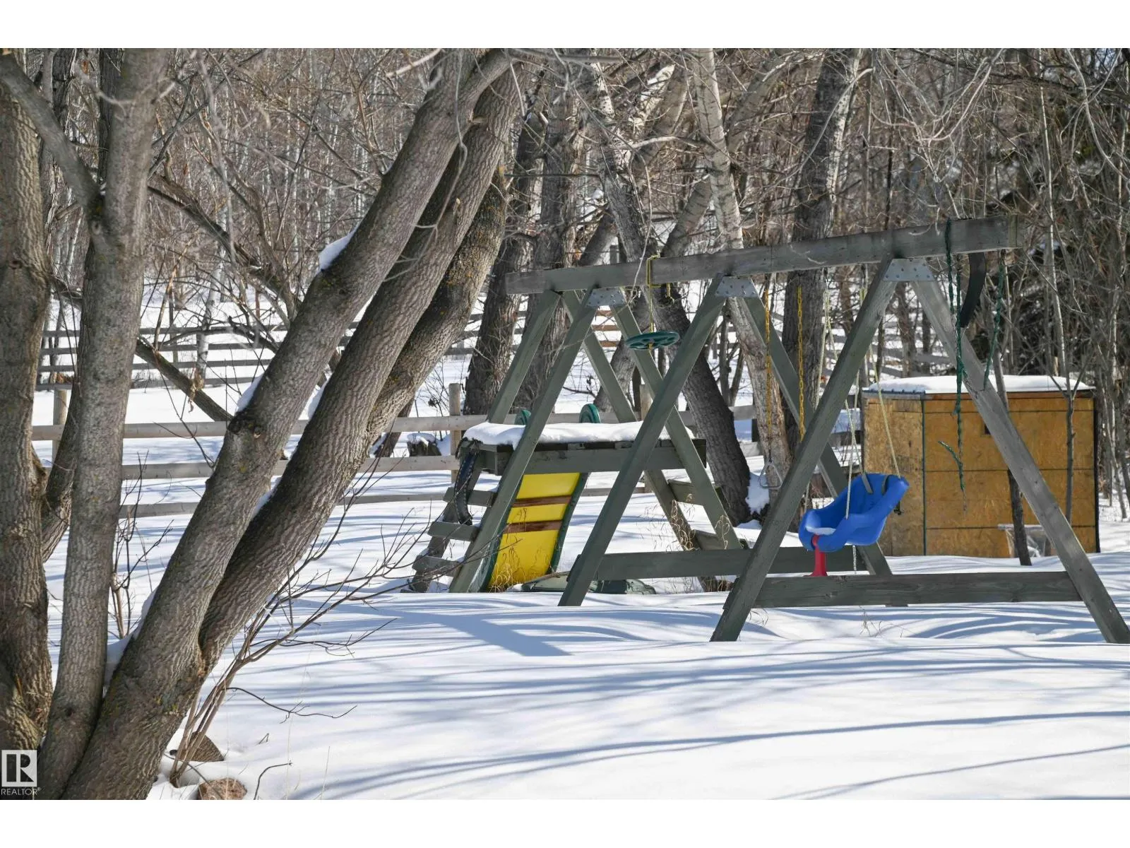 Just 35 minutes from Edmonton and only 5 minutes to Half Moon Lake, this affordable acreage offers the best of country living. Enjoy your own private 2 acres, fully fenced and set up with a horse corral and shelter, potting shed/greenhouse, fruit trees, wildflowers, and rose bushes. The large double garage is insulated and features a 30 amp plug and 30A heater. An electrified shed adds flexible space for a playhouse, bunkhouse, or extra storage. The spacious 1998 manufactured home (16x76) offers a great layout with 3 bedrooms and 2.5 bathrooms. Just a short trot away, youâll find the Rainbow Equitation Society and Half Moon Lake Natural Area, perfect for trail riding and hiking. A fantastic spot for riding, boating, fishing, and enjoying the country lifestyle, with only about 100 metres of gravel road to travel. (id:27476)