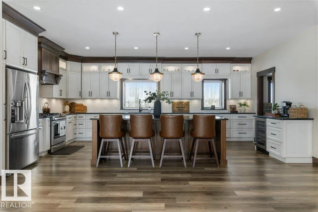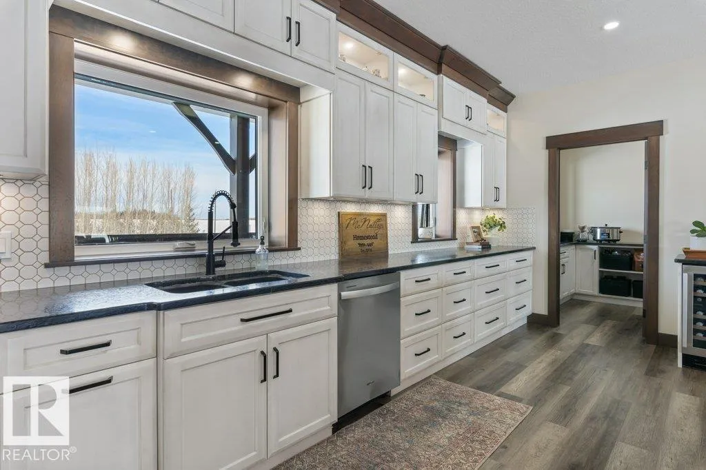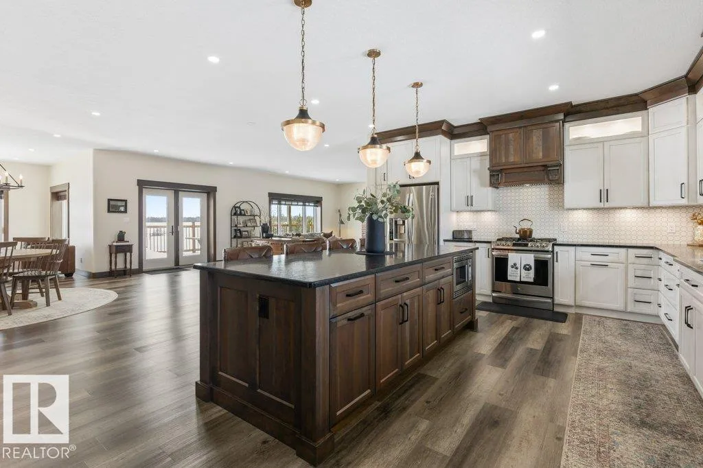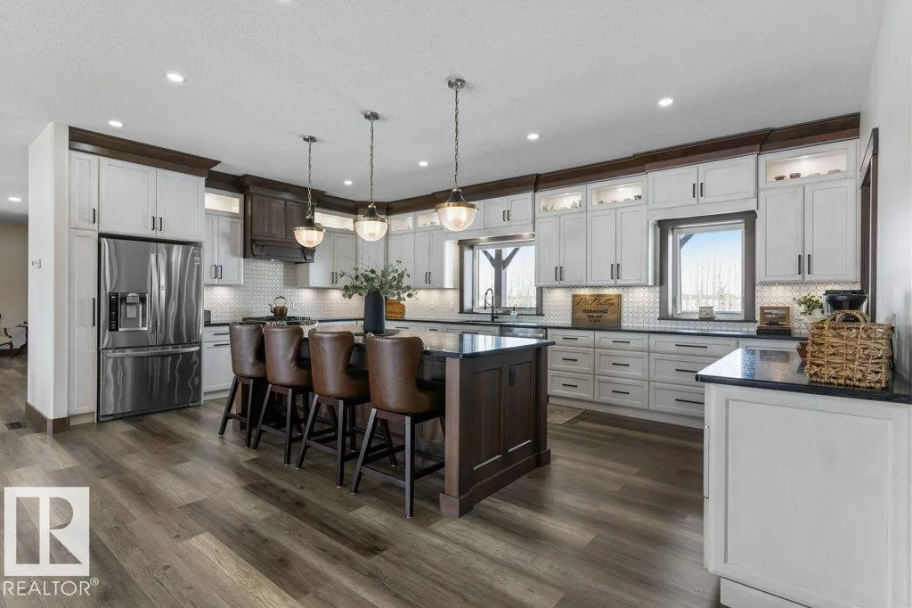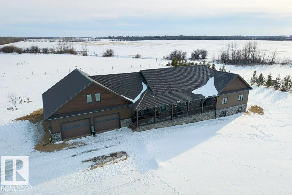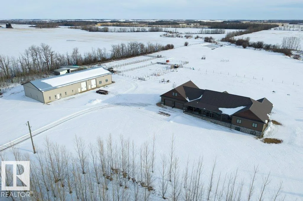 Located on 12 Acres & a 1/2 a mile off of HWY 44, this METICULOUS, LIKE NEW ICF home offers over 6,500 sq ft of detailed living space and a 6000 sqft refurbished shop offering over 12,000 sqft of AMAZING SPACE. If you have a large family or are looking for a multi-generational estate home this 7+BDRM BUNGALOW with an extra large garage that can fit up to 5 cars lets you live in style & set up your business. Features include: Luxurious kitchen with professional series appliances, custom millwork throughout, SUNDRENCHED ROOMS, separate loft/bdrm with ensuite & A/C, spectacular master with 5pc spa inspired ensuite, 3 lower bdrms, 1 including attached living area, second kitchen, theatre rm, rec rm, & 2 feature FP's just to start. THE HEATED 6000 SQFT SHOP WITH 3 OVERHEAD DOORS has 4 separate workshops & a 3 pc bath. The 12 acres is set up for a hobby farm with water to pastures, out building, dugout & creek. Additional features include radiant in floor heating & state of the art osmosis system & much more (id:27476)