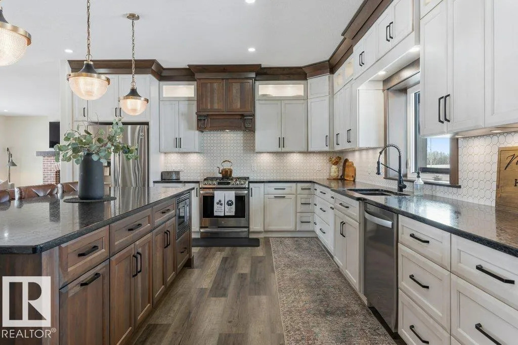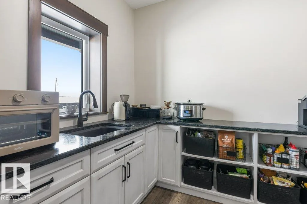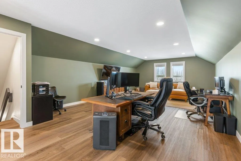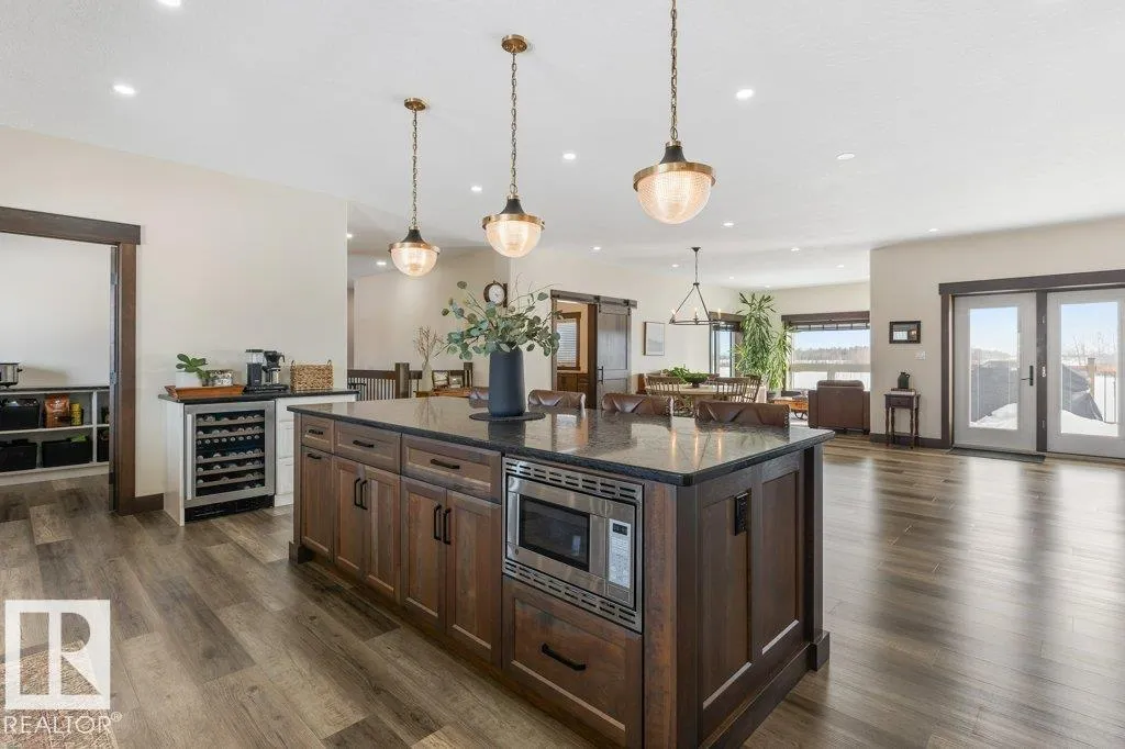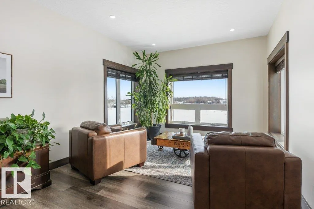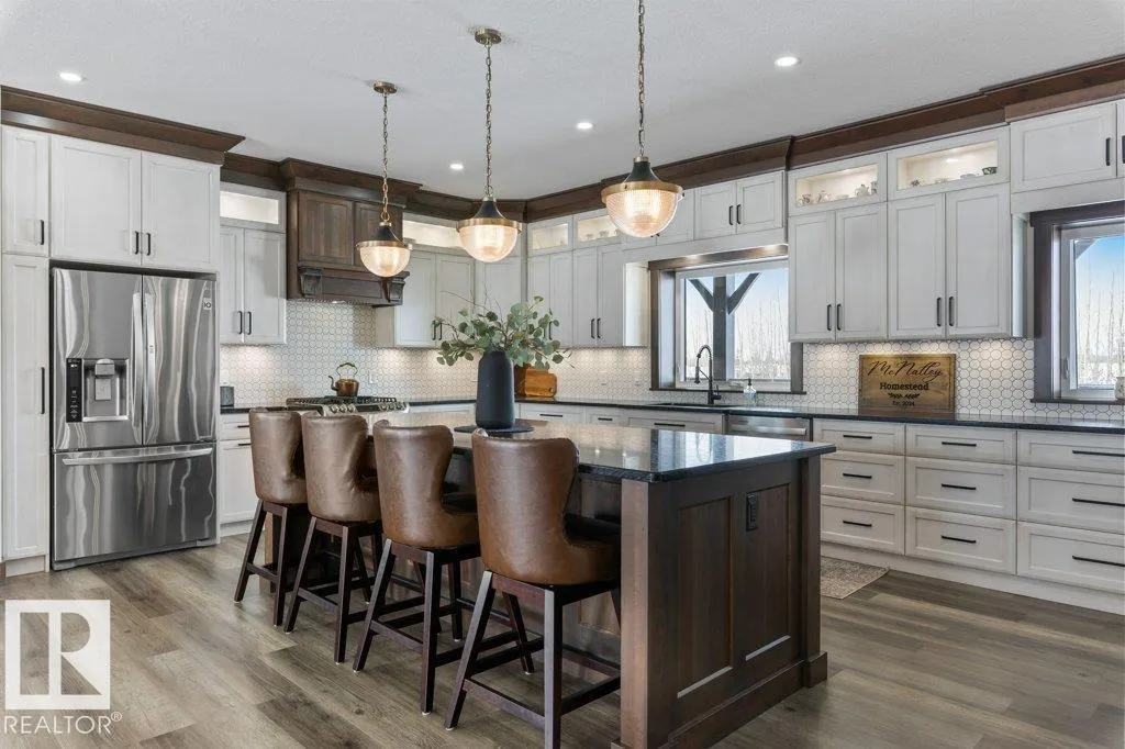 Located on 12 Acres & a 1/2 a mile off of HWY 44, this METICULOUS, LIKE NEW ICF home offers over 6,500 sq ft of detailed living space and a 6000 sqft refurbished shop offering over 12,000 sqft of AMAZING SPACE. If you have a large family or are looking for a multi-generational estate home this 7+BDRM BUNGALOW with an extra large garage that can fit up to 5 cars lets you live in style & set up your business. Features include: Luxurious kitchen with professional series appliances, custom millwork throughout, SUNDRENCHED ROOMS, separate loft/bdrm with ensuite & A/C, spectacular master with 5pc spa inspired ensuite, 3 lower bdrms, 1 including attached living area, second kitchen, theatre rm, rec rm, & 2 feature FP's just to start. THE HEATED 6000 SQFT SHOP WITH 3 OVERHEAD DOORS has 4 separate workshops & a 3 pc bath. The 12 acres is set up for a hobby farm with water to pastures, out building, dugout & creek. Additional features include radiant in floor heating & state of the art osmosis system & much more (id:27476)