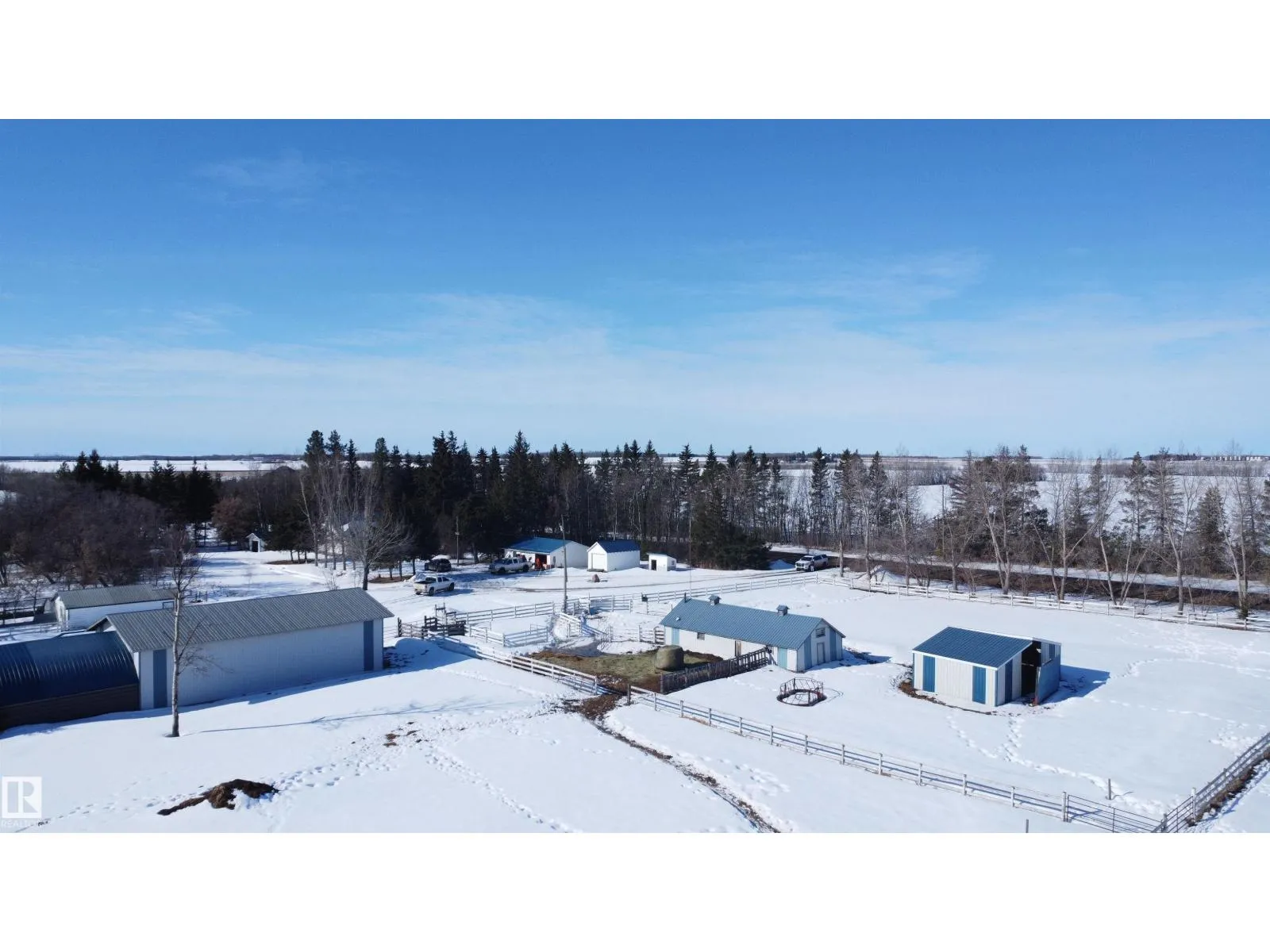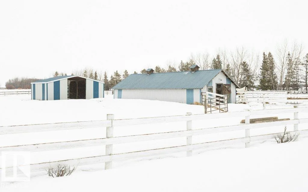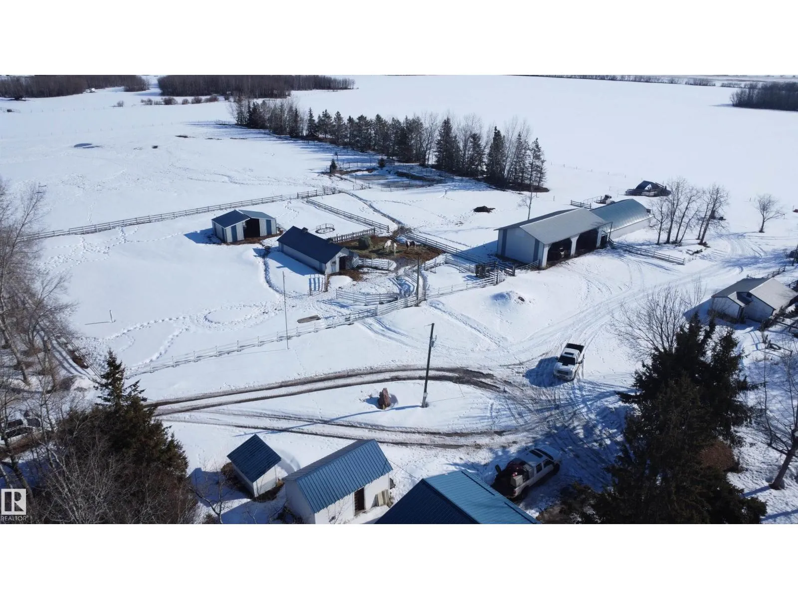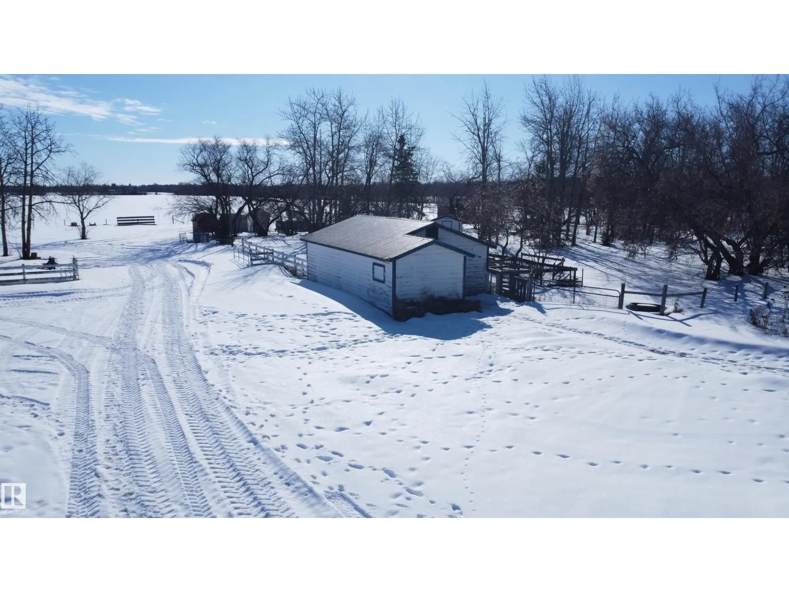 Escape to country living on 13.52 acres, ideal for horses or a hobby farm. This unique property features a charming 1.5 storey home, originally built in 1957 with a spacious addition completed in the 1980s. House is nestled in the trees bringing nature to you. The main level offers a primary bedroom with 3 pc ensuite, a welcoming living room with a newer cookstove/fireplace, and an open kitchen with a large dining area perfect for gatherings. Upstairs hosts two additional spacious bedrooms, while the finished basement includes a second family room and den. Outside, youâll find a 24x34 heated double detached garage and numerous outbuildings, including a machine shed, quonset, barn, chicken coop, gazebo, and animal shelters (Majority have tin roofs). Multiple pens and a circular pen make it well-suited for animal/horses. Property features a dugout and waterlines throughout the yard for gardening or animals. Backup generator provides peace of mind year-round. (id:27476)