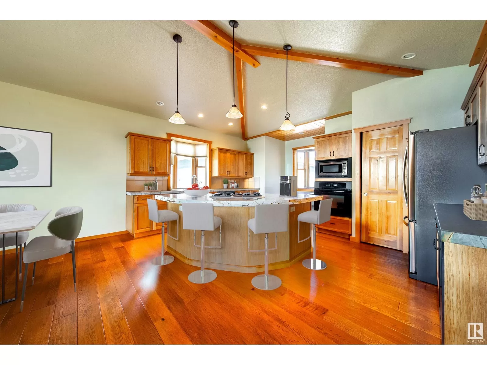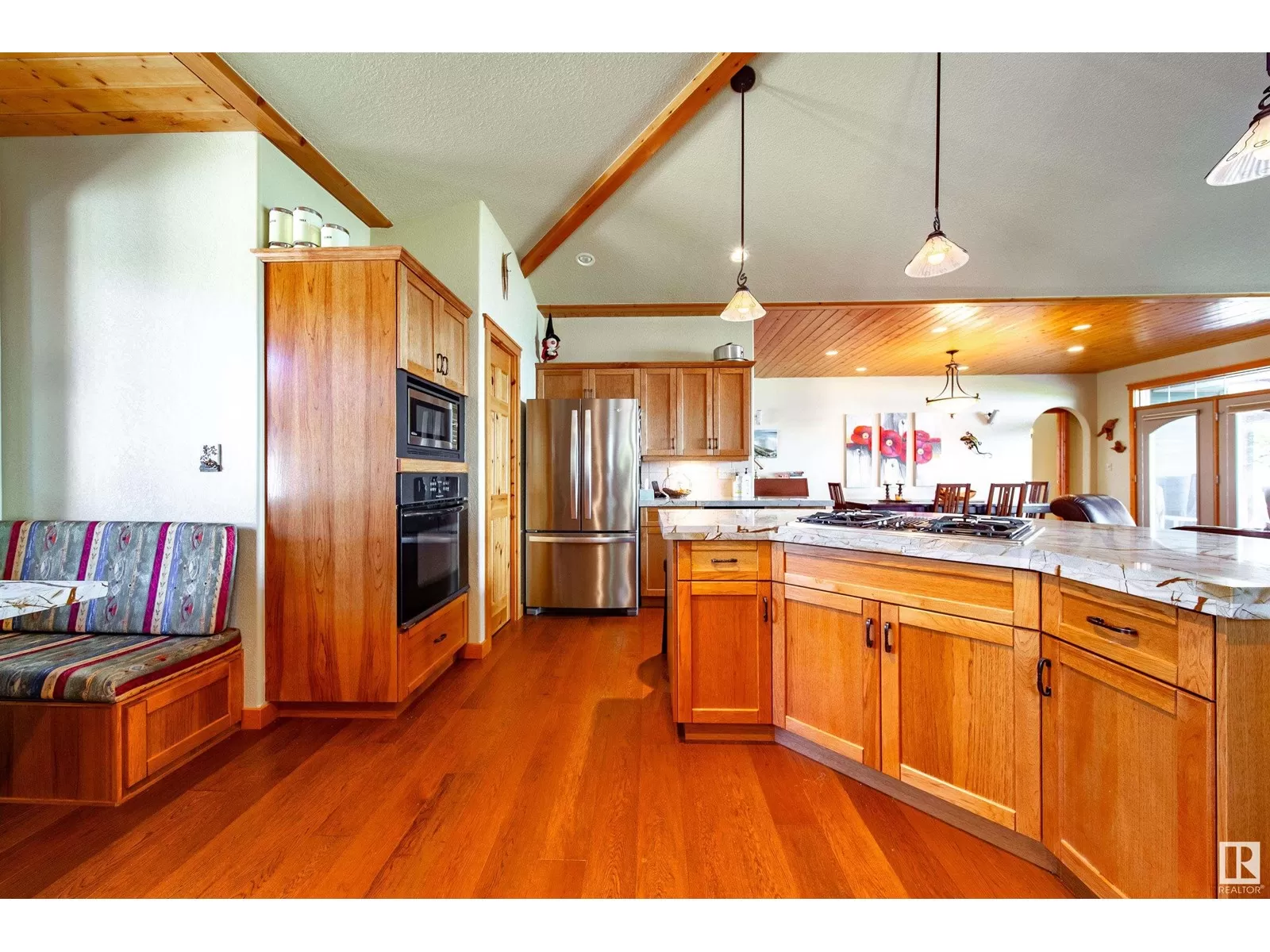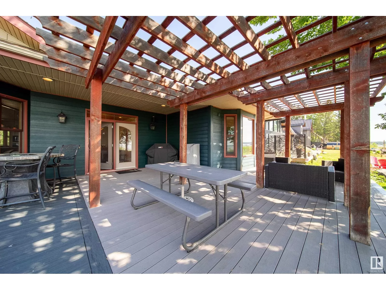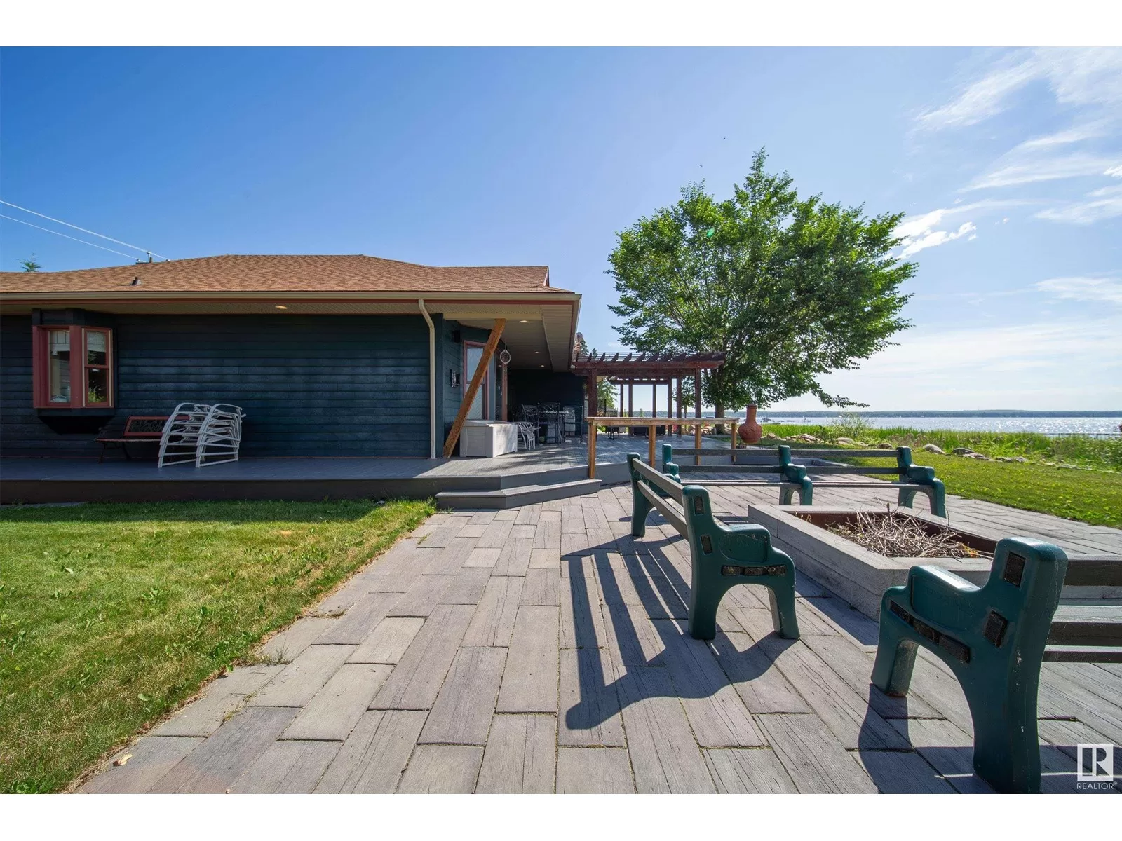 Lakefront Bungalow Retreat at Pigeon Lake!Enjoy year-round serenity in this beautifully upgraded lakefront property with stunning water views & a natural shoreline.Thoughtfully designed for comfort,relaxation & entertaining.This charming bungalow is the perfect escape for your weekend retreat or forever home that easily sleeps 10. Featuring an open-concept,vaulted ceilings & textured walls,solid pine cabinets, baseboards,beams & ceilings.Granite countertops throughout with upgraded finishes & engineered hardwood flooring.Attached double heated garage with infloor heating. A detached spacious 357sqft guesthouse with 3-piece bathroom & a single attached heated garage. Over 80K in professional landscaping for low-maintenance living,composite decking & concrete landscaping blocks.Cement board siding & shingles 2 years old. Packed with first class amenities:Boating,Fishing,18 Hole Golf Course,Playgrounds,Registered Kids Camps,Sailing Club,nearby restaurants & groceries. Some pictures virtually staged. (id:27476)
