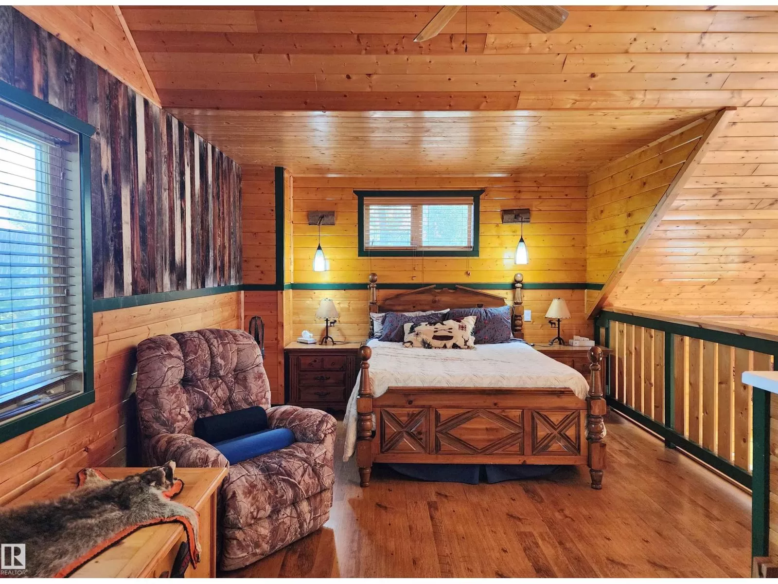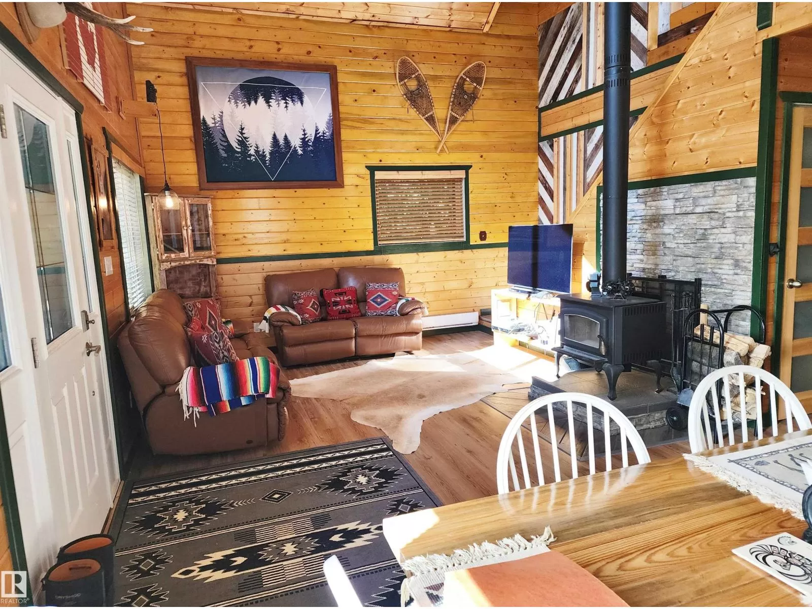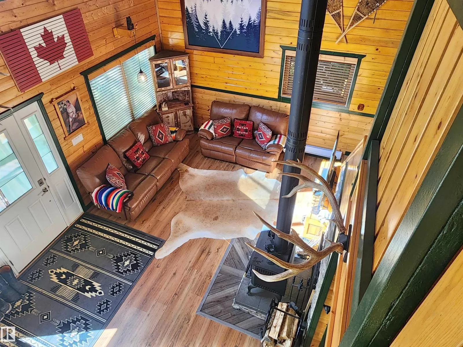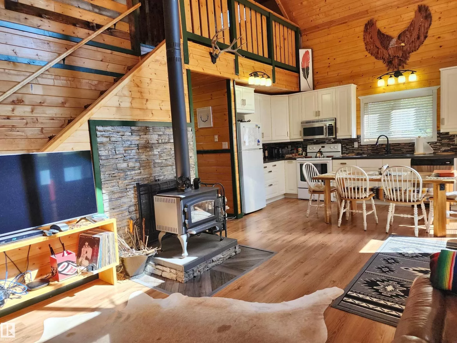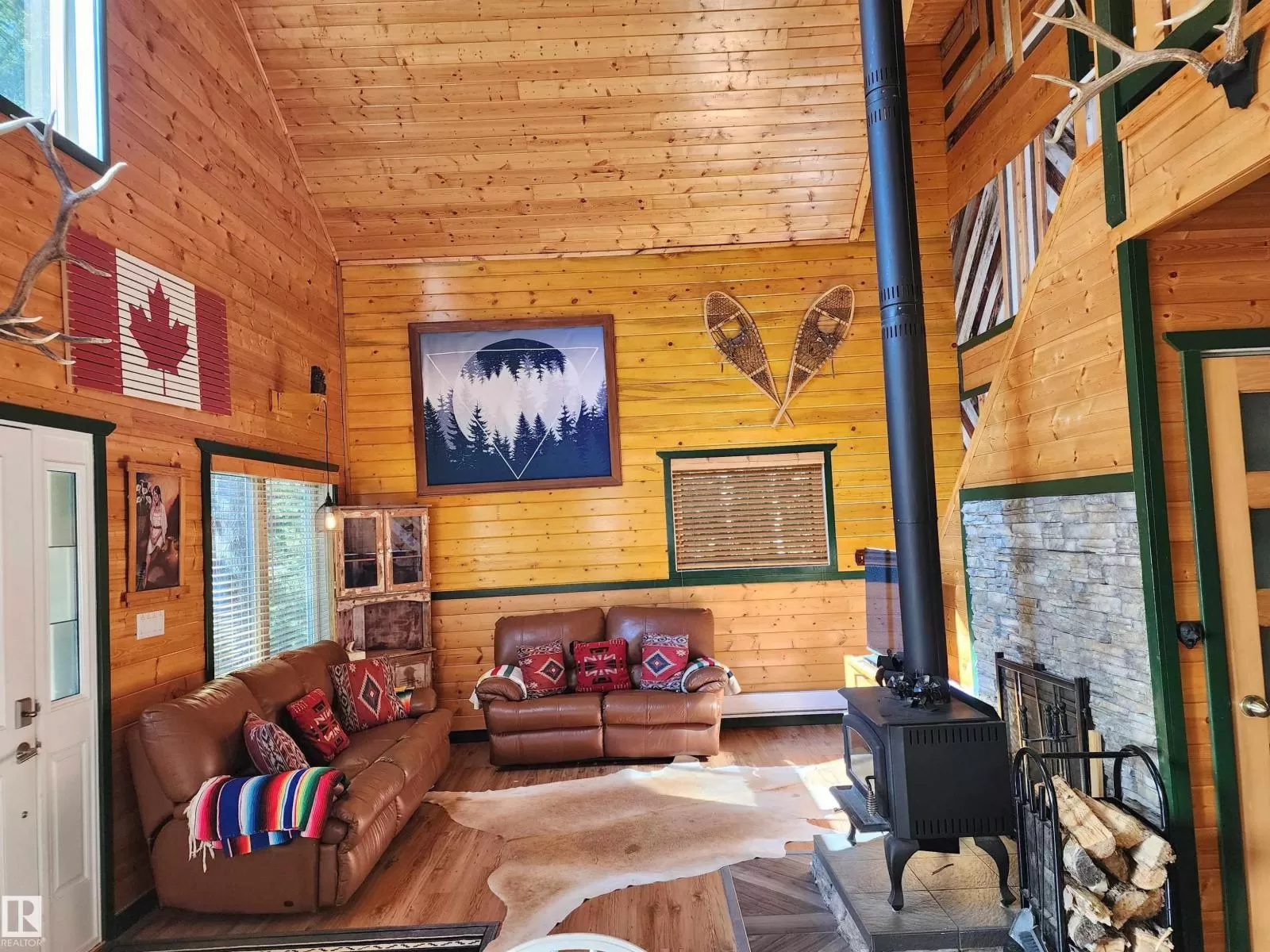 Treat yourself and your family to quiet, relaxing surroundings near the shores of Buck Lake. Located in the Evergreen community, this beautiful home has style and charm, with soaring ceilings, finished with natural woodwork suited to country settings. Unique touches of history and nature in the creative reclaimed wood accents throughout the home gives a warm feeling. Open design kitchen and living room clear, clean and uncluttered. The home has two bedrooms, full bathroom and washer and dryer on the main floor. The upstairs hideaway loft could serve as a bedroom with a walk-in closet or a perfect spot to read or simply relax. Huge patio great for entertaining or enjoy cool summer evenings by the fire in the covered gazebo. Double detached garage, wood shed round out this property. The price includes a share of the community dock for your boat with a small yearly community fee. Weekend retreat, summer home or full time residence? This lakeside property is a fabulous find for a change of lifestyle! (id:27476)