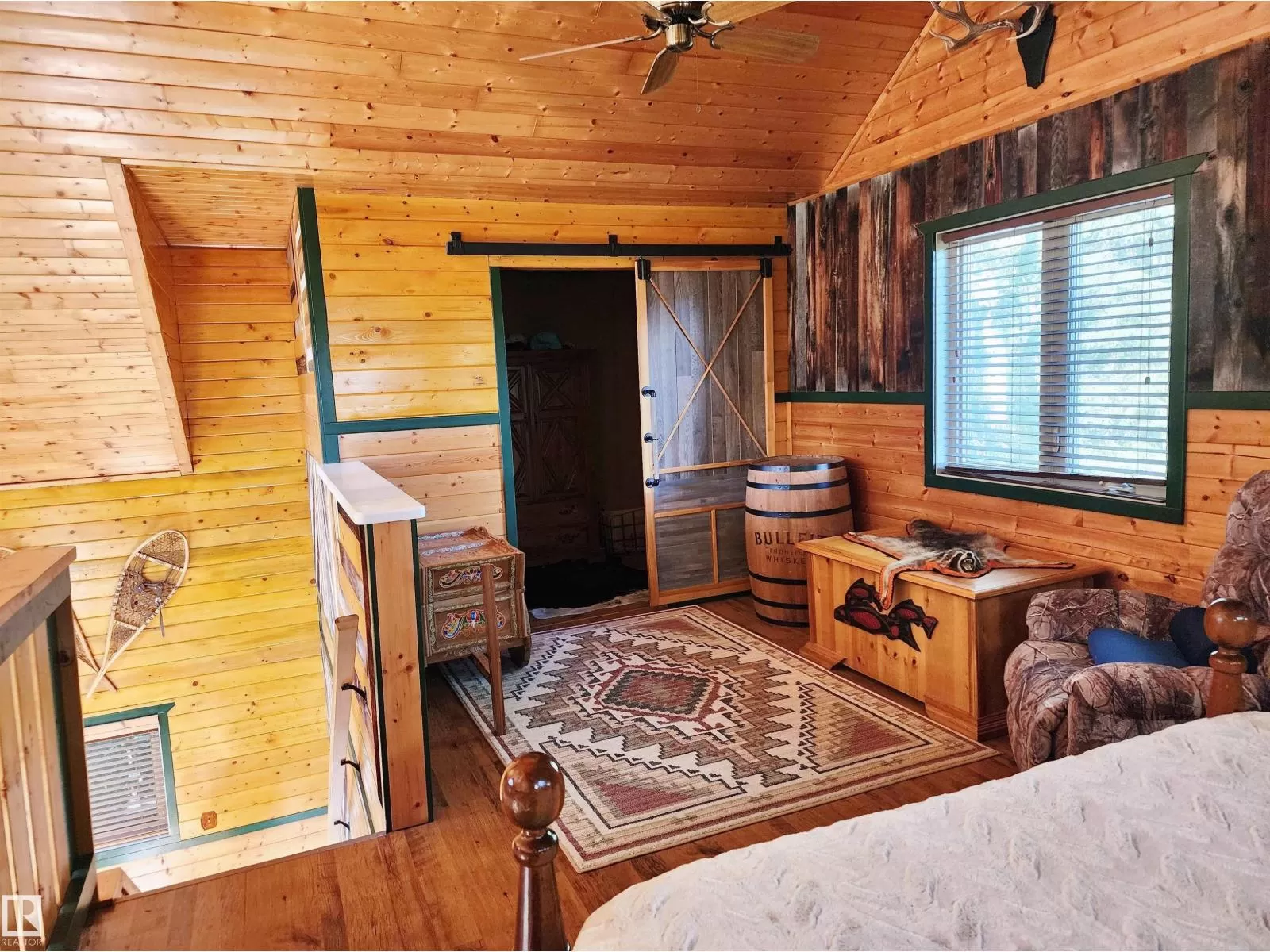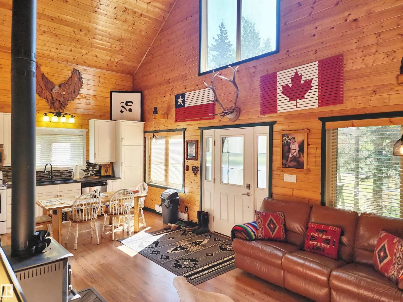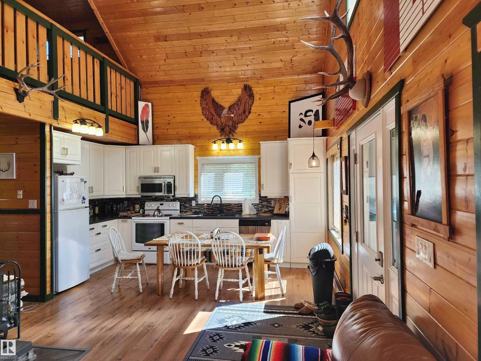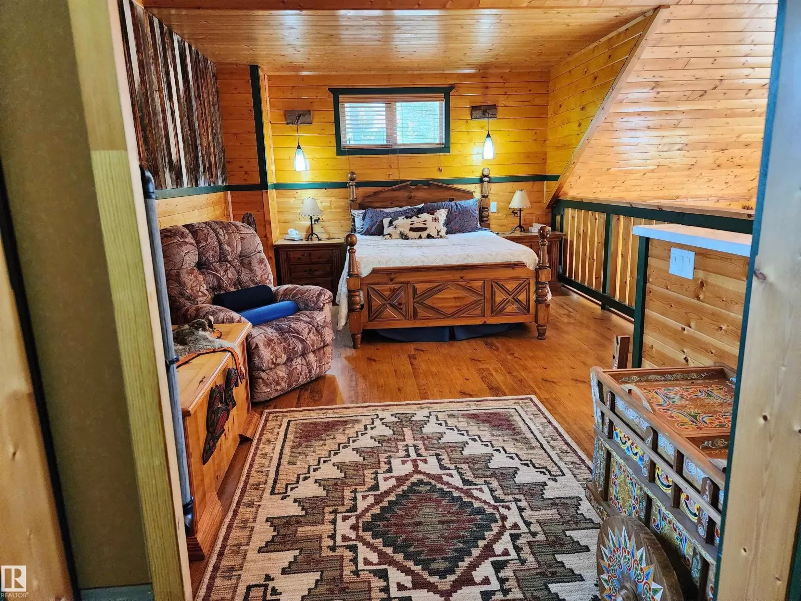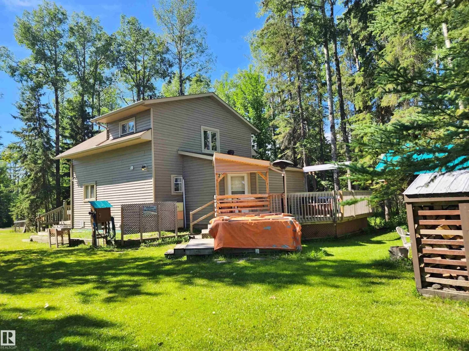 Treat yourself and your family to quiet, relaxing surroundings near the shores of Buck Lake. Located in the Evergreen community, this beautiful home has style and charm, with soaring ceilings, finished with natural woodwork suited to country settings. Unique touches of history and nature in the creative reclaimed wood accents throughout the home gives a warm feeling. Open design kitchen and living room clear, clean and uncluttered. The home has two bedrooms, full bathroom and washer and dryer on the main floor. The upstairs hideaway loft could serve as a bedroom with a walk-in closet or a perfect spot to read or simply relax. Huge patio great for entertaining or enjoy cool summer evenings by the fire in the covered gazebo. Double detached garage, wood shed round out this property. The price includes a share of the community dock for your boat with a small yearly community fee. Weekend retreat, summer home or full time residence? This lakeside property is a fabulous find for a change of lifestyle! (id:27476)