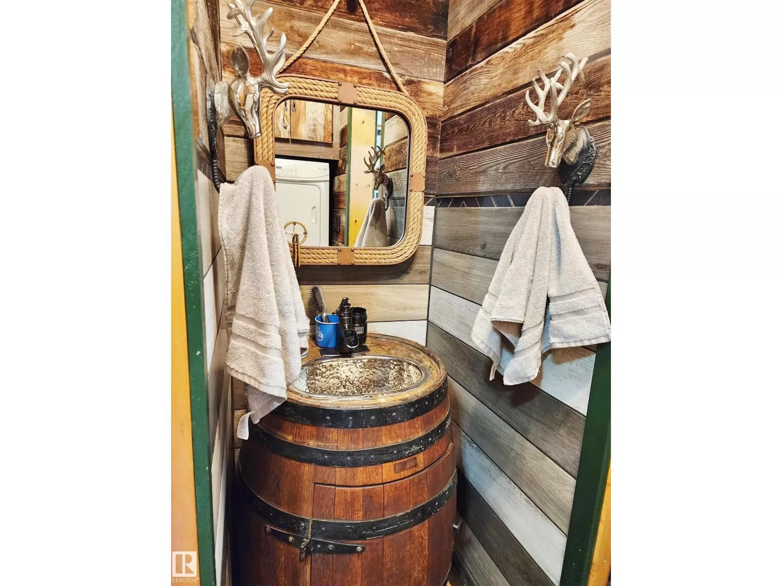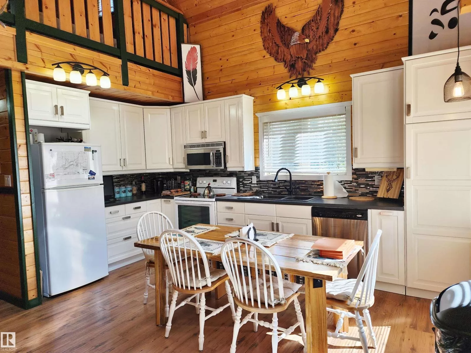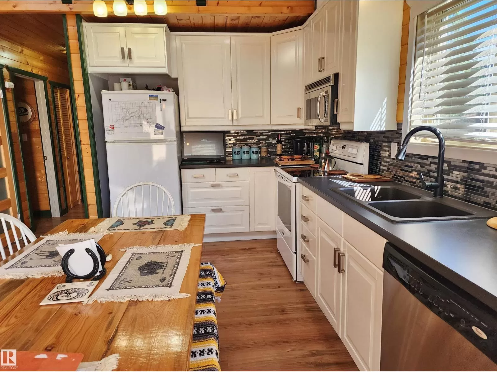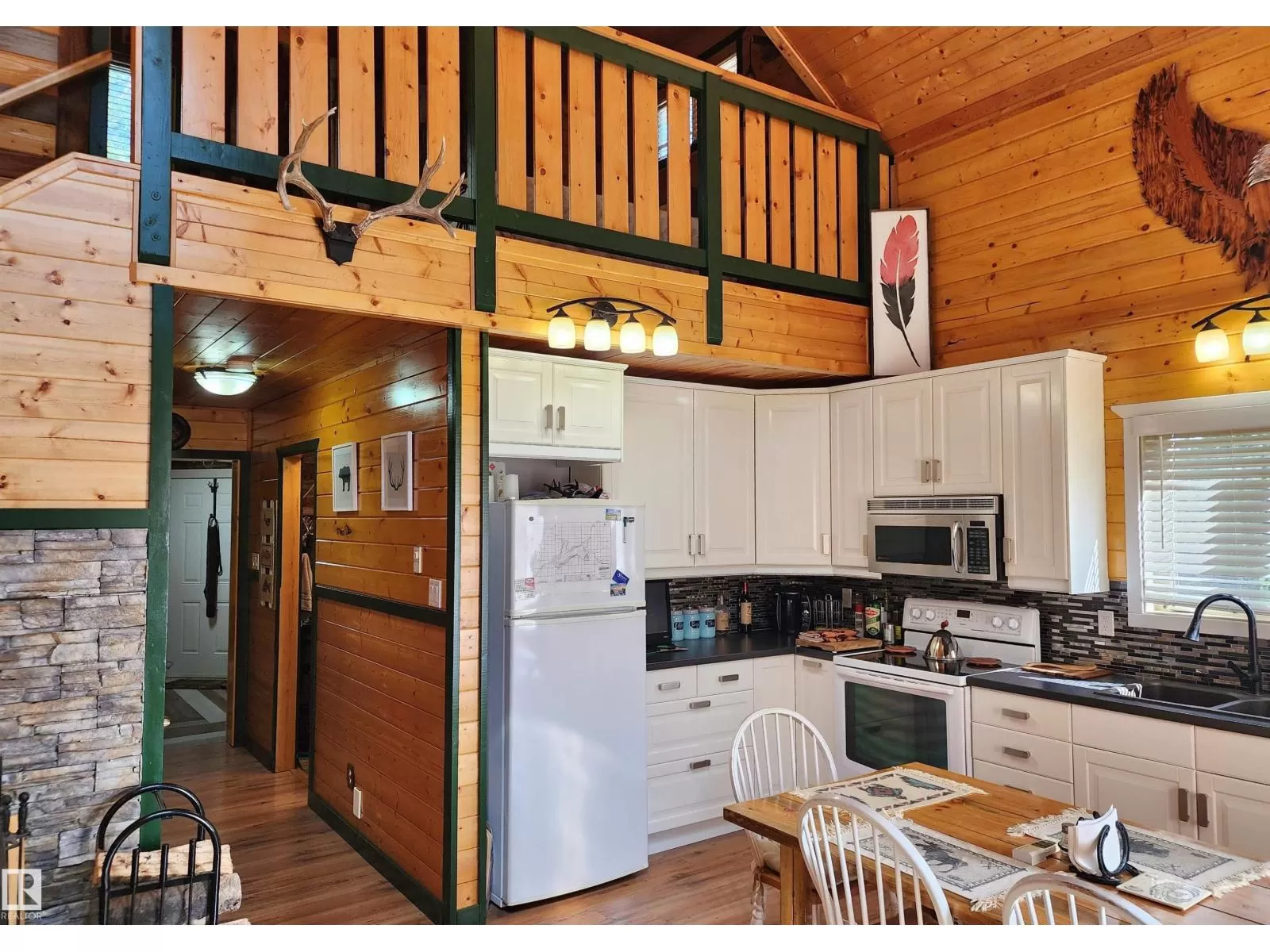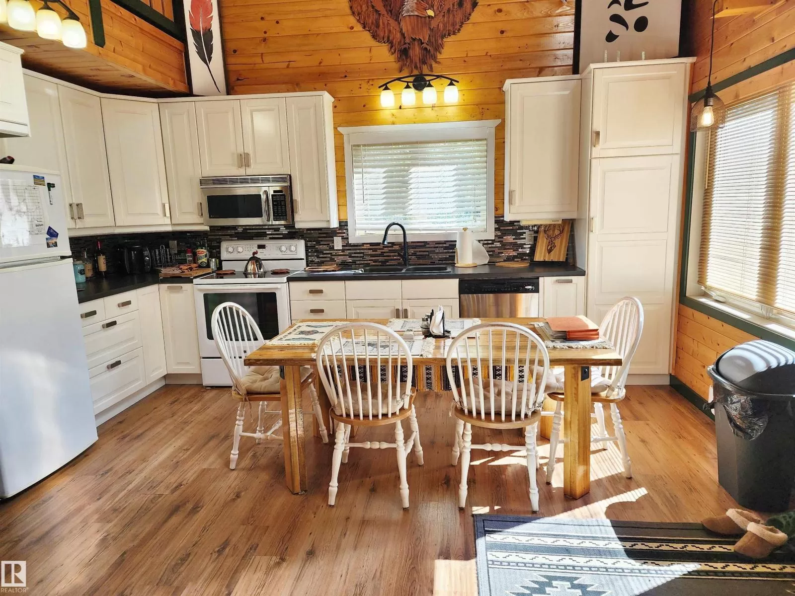Treat yourself and your family to quiet, relaxing surroundings near the shores of Buck Lake. Located in the Evergreen community, this beautiful home has style and charm, with soaring ceilings, finished with natural woodwork suited to country settings. Unique touches of history and nature in the creative reclaimed wood accents throughout the home gives a warm feeling. Open design kitchen and living room clear, clean and uncluttered. The home has two bedrooms, full bathroom and washer and dryer on the main floor. The upstairs hideaway loft could serve as a bedroom with a walk-in closet or a perfect spot to read or simply relax. Huge patio great for entertaining or enjoy cool summer evenings by the fire in the covered gazebo. Double detached garage, wood shed round out this property. The price includes a share of the community dock for your boat with a small yearly community fee. Weekend retreat, summer home or full time residence? This lakeside property is a fabulous find for a change of lifestyle! (id:27476)