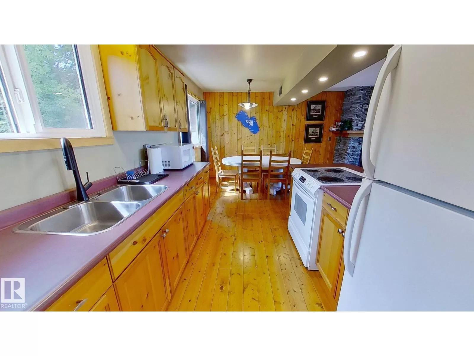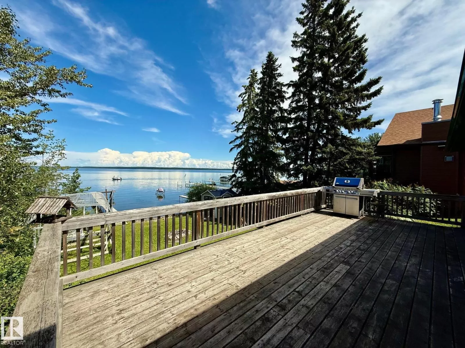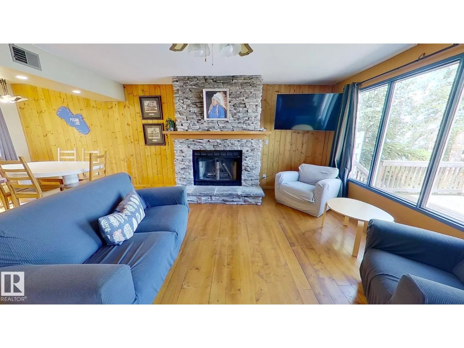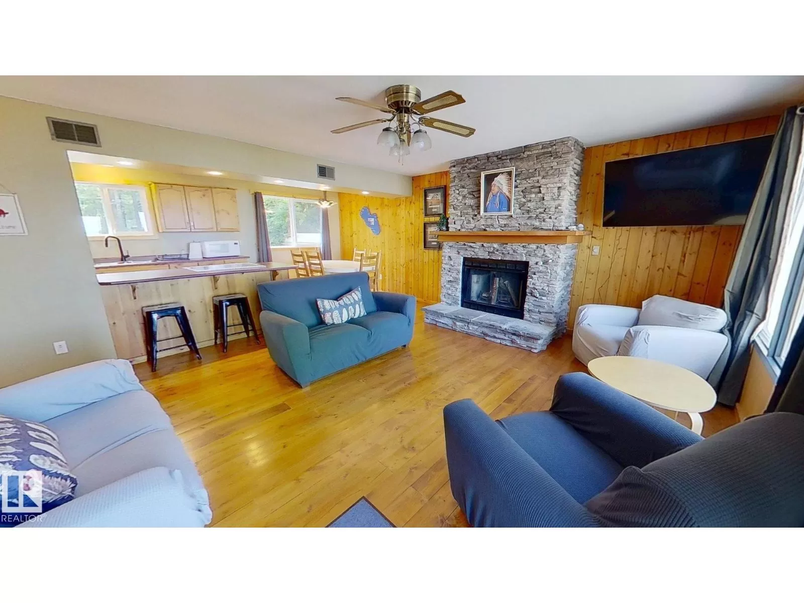 LAKE FRONT 4 Season Cabin. Double Car Garage, heated, Insulated and boarded with plywood. All except Bay window replaced in 2024 with triple pain vinyl windows, new exterior doors as well. Stacker washer and drier new in 2023. New Hot Water Tank 2025. Extra insulation in the roof. Beautiful Stone fireplace, open concept living and kitchen. Front and rear treated decks. Very nice cabin, superb location close to the Village, Golfing and all that Pigeon Lake has to offer. (id:27476)