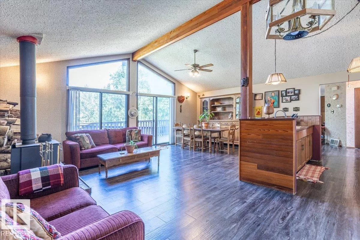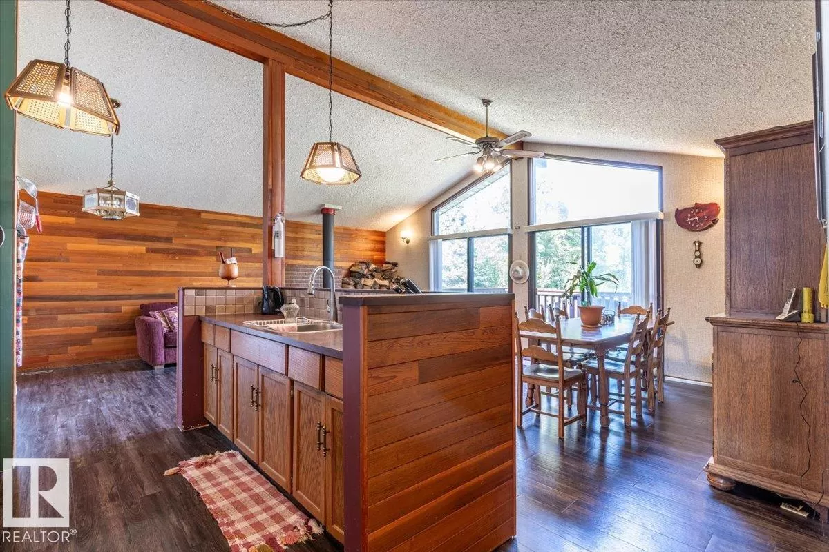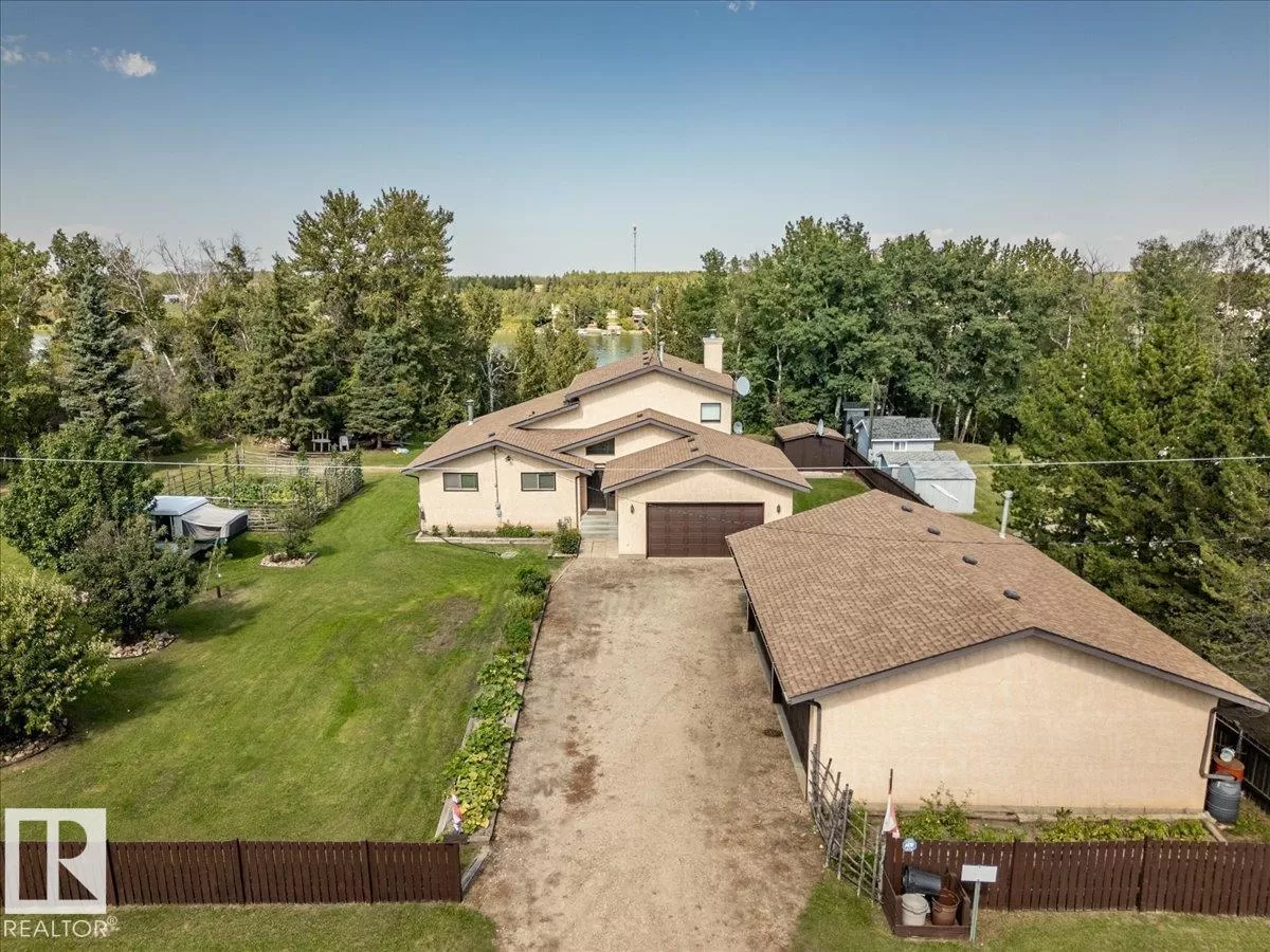 This Magnificent Property with Lakefront Access and Views holds a 2250 sq/ft Home with a Double Attached Garage, Quadruple Detached Garage, and More! Inside the home the Main Level is made up of Two Bedrooms, Living room with a wood fire place on a stone wall, Kitchen that is open to the Dining room with a vaulted ceiling, and Family room with another fireplace. A Walk-In Pantry, Laundry/Utility Room, and a 4 Piece Bathroom Conclude the Main floor. The Upper Level has the Primary Bedroom that has its own 4 Piece Ensuite Bathroom, Walk-In Closet, and an Office. This Home is Wheelchair accessible from the Attached Garage with a lift and from the large back deck that over looks the lake through the patio doors into the Living room and Family room. The Detached Garage measures 36'x28' has a Concrete floor, Heat, Power, and Two Overhead Doors. This Property Welcomes you to enjoy the lake year round with extra storage for toys of every season! (id:27476)