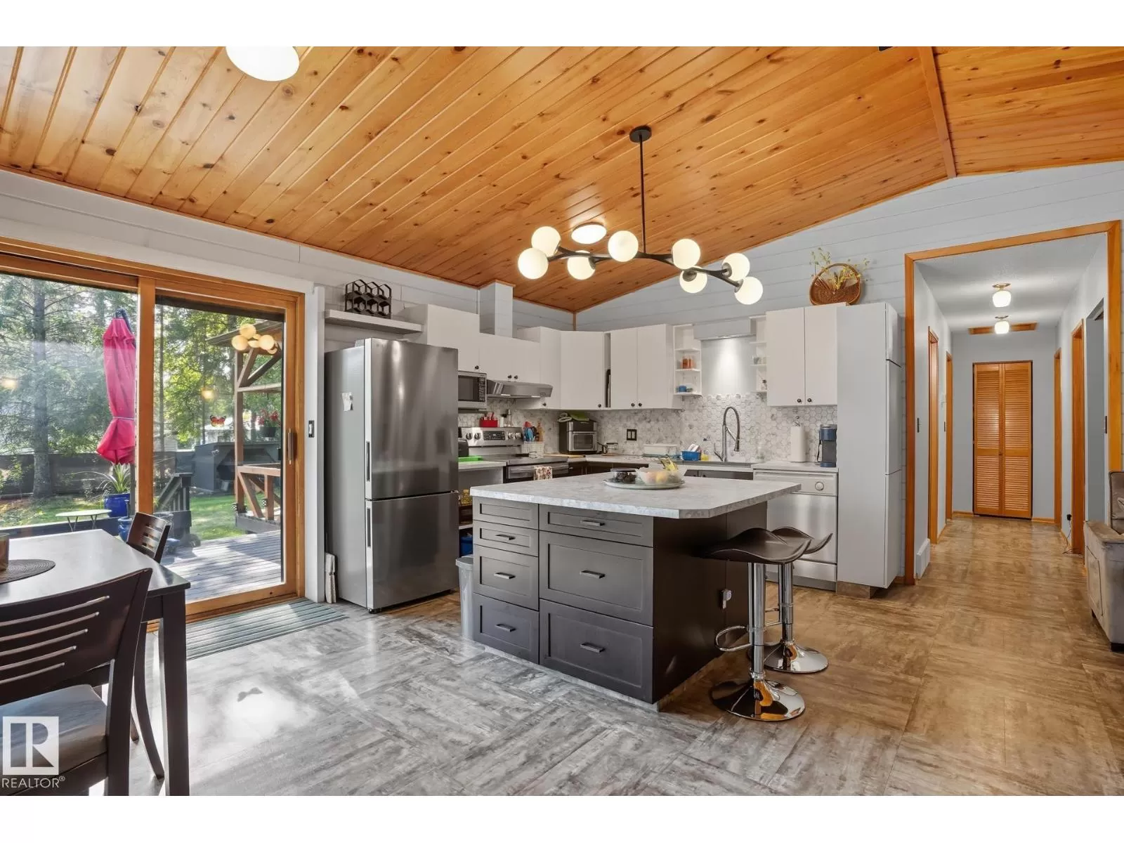 For those who want a large lot, treed large acreage feel--without the hassle of large acreage upkeep, look no further! This one-of-a-kind, custom-built 2-bedroom cedar exterior bungalow located in Mulhurst Bay at Pigeon Lake, is perfect for those who want that perfect blend of country privacy and lakeside living. Set on an expansive 0.3 acre treed lot with private water well, and municipal sewer service. The home exterior features: cedar siding, a wrap-around deck with an attached gazebo. Inside, youâll find: vaulted ceilings, pine paneling, renovated kitchen, luxury vinyl flooring throughout; the property also offers a single detached garage wired for 220V plus additional storage shed. Appliances include stove, fridge, and built-in dishwasher. And all walking distance to seasonal activities such as: golf, beach, playground, swimming, ice-fishing, snow mobiling and hiking. (id:27476)