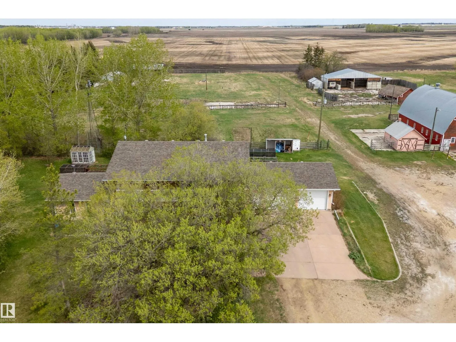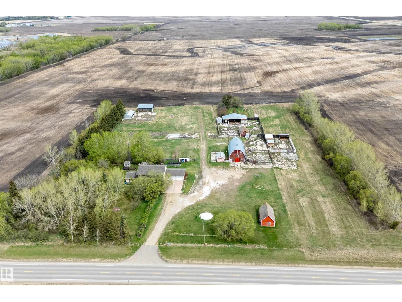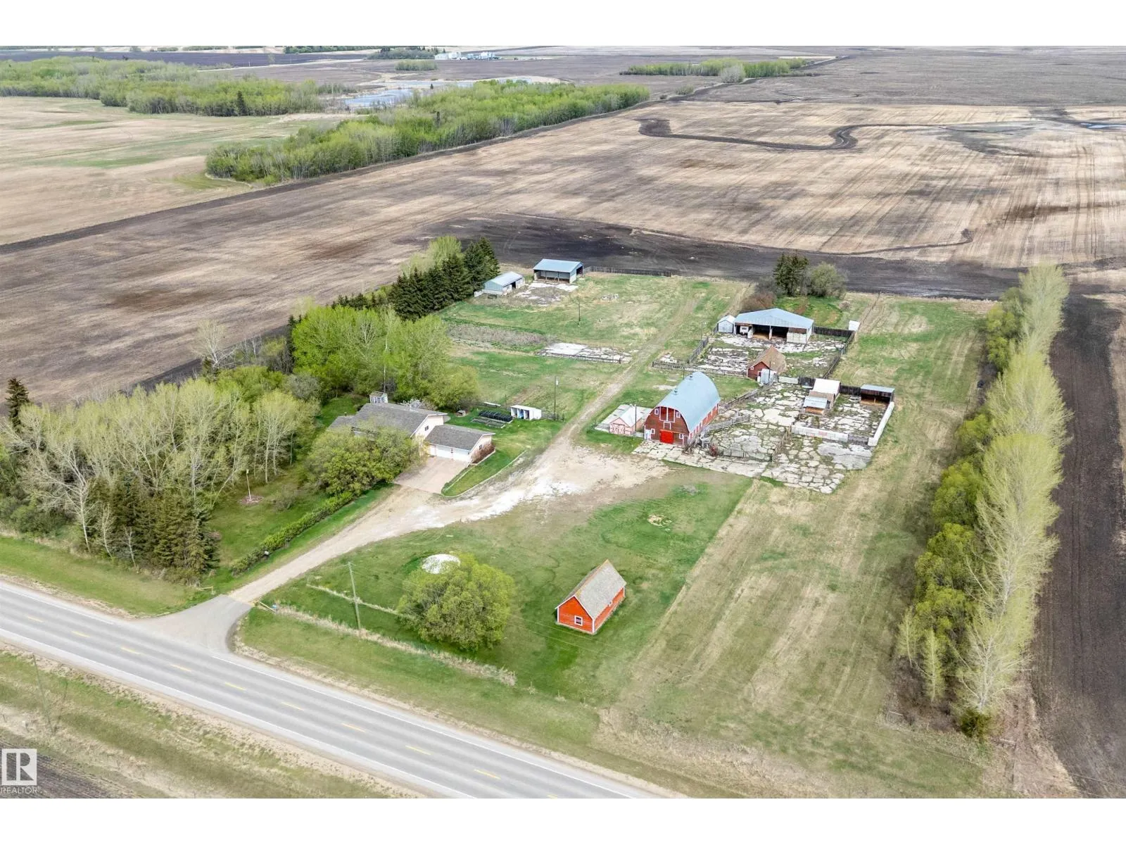 BRING THE ANIMALS !!! Close to Wetaskiwin with PAVEMENT ALL THE WAY!!! This 8.3 ACRE PROPERTY has a set up for your county living. Country style 2 story home over 2800 sq.ft with 4 bedrooms, 2.5 bathrooms and a full basement plus a 24'x31' attached heated garage. Main floor has a office directly from the garage, also basement access from the garage. You walk into your large kitchen with a view of the paddocks. Huge dining room off the kitchen and a massive family room with a wood burning stove. Main floor also has laundry and a washroom. Upstairs has 4 bedrooms, 4 piece bathroom, access to a second level deck. The primary bedroom has a 3 piece ensuite and a walk in closet. Many outbuildings including an AMAZING BARN with maternity pen and birthing stalls. Outside you have a squeeze shoot, loading dock, multiple paddocks, 3 more maternity stalls, granary, hay shed, large shelter, 3 auto waterers. Great opportunity for a hobby farm or to winter cattle. GST may be applicable. (id:27476)