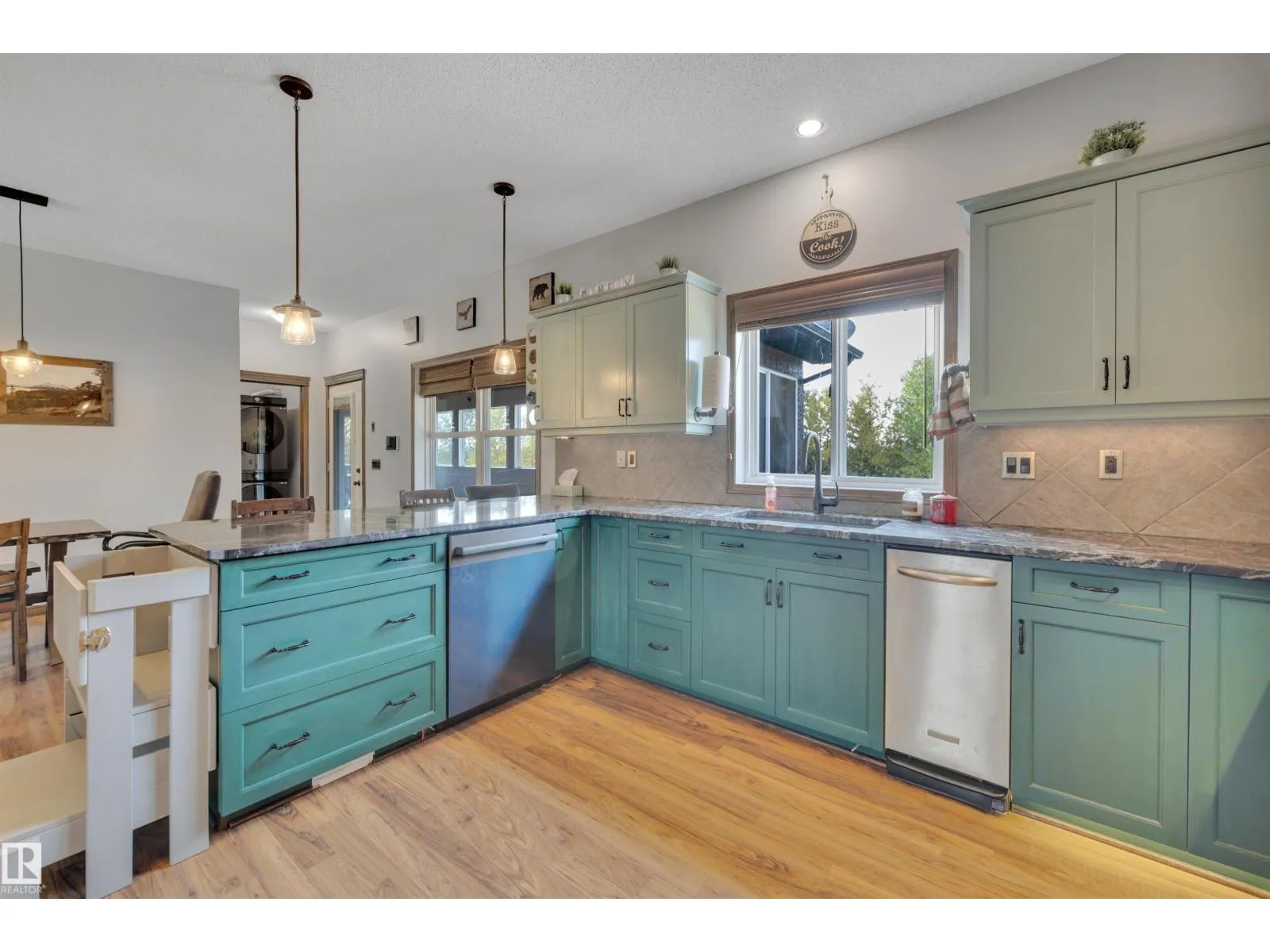 BEAUTIFULLY PRESENTED! 50' x 60' SHOP! TREED & PRIVATE! This 1773 sq ft 5 bed + 2 den, 3 bathroom raised bungalow on 4.13 acres out of subdivision is turnkey & only minutes to town! Feat: new shop w/ 14'x14' doors & solar panels, A/C, in floor basement heating, 9' ceilings, covered sunroom / deck, powered shed, custom grain bin bar & firepit space, & more! Your entryway leads into the large living room w/ chic woodgrain feature wall & gas fireplace; perfect spot for family visiting. Massive farmhouse kitchen w/ granite countertops, massive fridge / freezer combo, new oven, & spacious eat in dining. 3 bedrooms up, including the primary bed w/ walk in closet & 4 pce bath. Main floor laundry & 4 pce bath. The basement is fully finished, w/ rec room w/ pool table & wet bar, theatre room for movie night, 2 massive bedrooms, 3 pce bath w/ infared sauna. 2 dens, & tons of storage room! The yard is incredible! Fully treed perimeter, landscaped; pride of ownership is evident. A must see property! (id:27476)