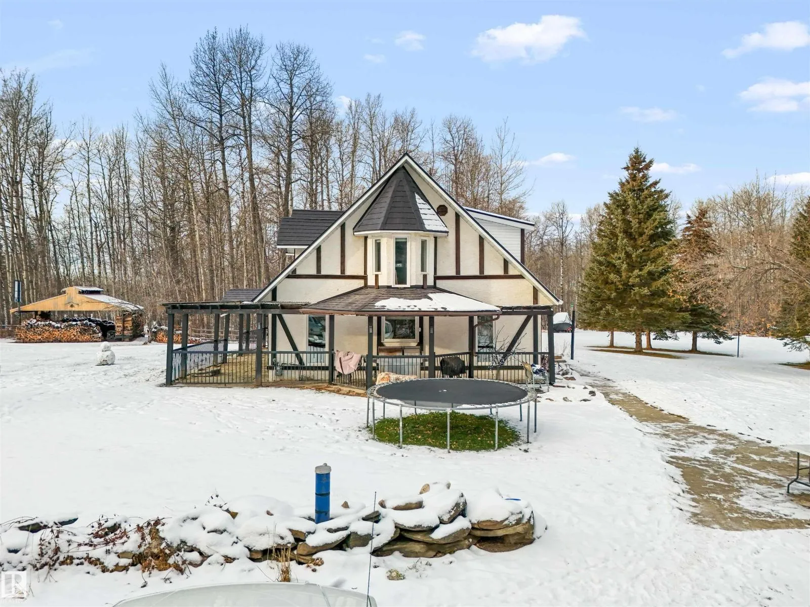 Located in Wetaskiwin County, in a quiet area with little traffic, on 4.94 acres, this property features a shop/garage with a 4 bedroom, 2 bathroom, 2,077 sq ft home. With a dugout in the SW corner of the property, a 20'x10' shed, and a 16'x20' chicken coop, drilled well new in 2015, new wood burning fireplace in 2023, new metal roof in 2017, hot water on demand-combi boiler in 2021. Lots of upgrades! The main floor consists of a mud room, storage room, mechanical room, 3-pc bath, bedroom, pantry, large kitchen-dining room area, and large living room with a wood stove. Upstairs is another 3 bedrooms, walk in closet, and a 3-pc ensuite. In floor heat on the main floor, and 1/2 of garage/shop. The front of the home has a large covered porch to enjoy summer nights - rain or shine! Tons to see, lots to love, and not enough words to describe the property! A MUST SEE! (id:27476)