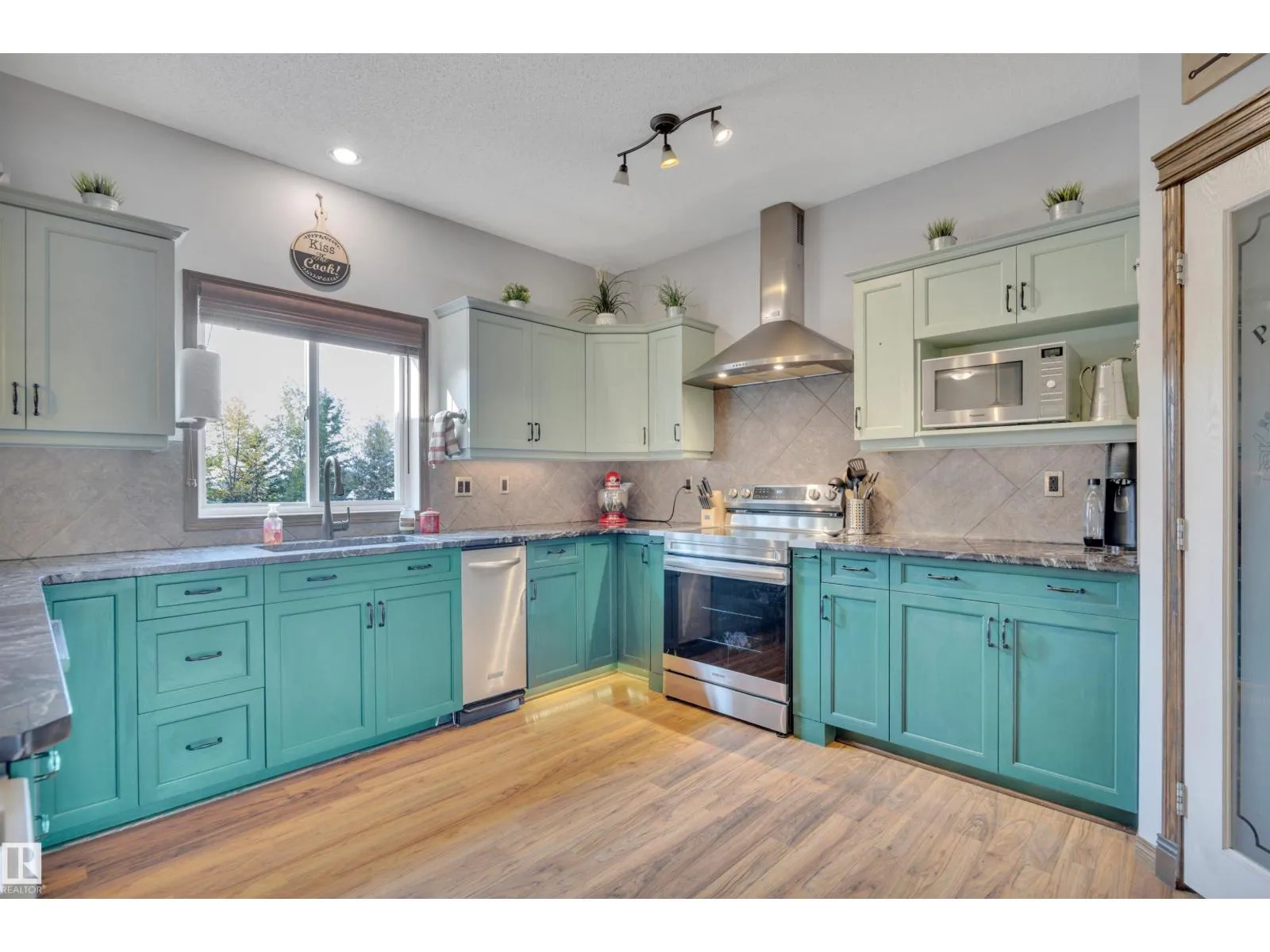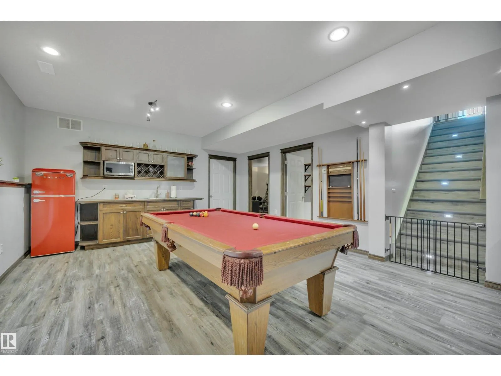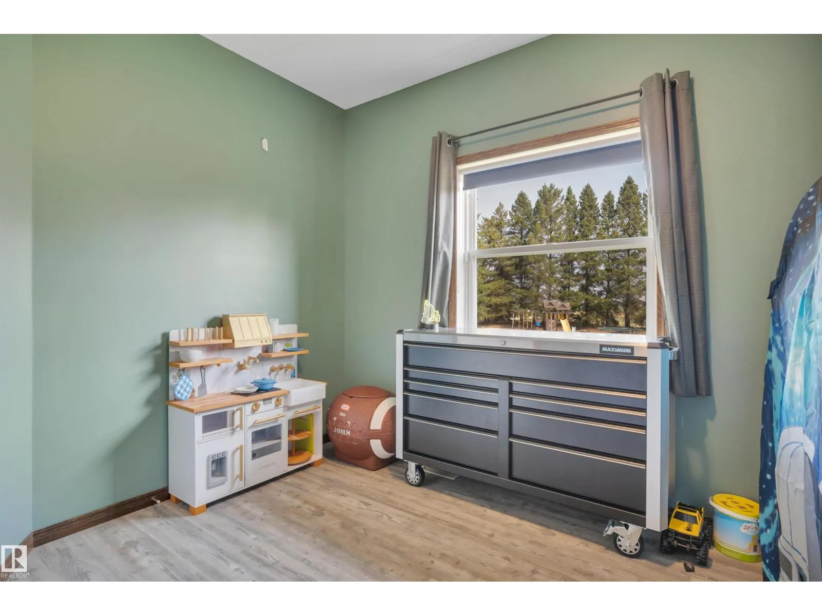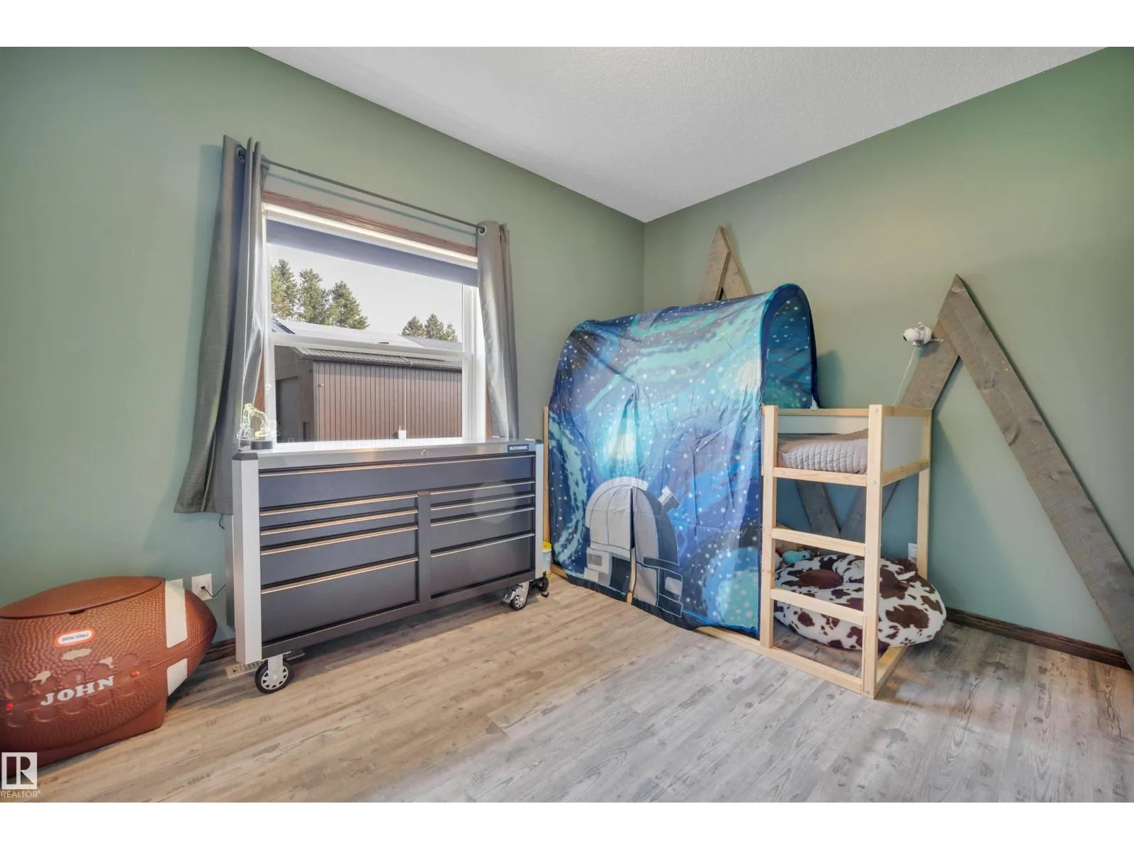 BEAUTIFULLY PRESENTED! 50' x 60' SHOP! TREED & PRIVATE! This 1773 sq ft 5 bed + 2 den, 3 bathroom raised bungalow on 4.13 acres out of subdivision is turnkey & only minutes to town! Feat: new shop w/ 14'x14' doors & solar panels, A/C, in floor basement heating, 9' ceilings, covered sunroom / deck, powered shed, custom grain bin bar & firepit space, & more! Your entryway leads into the large living room w/ chic woodgrain feature wall & gas fireplace; perfect spot for family visiting. Massive farmhouse kitchen w/ granite countertops, massive fridge / freezer combo, new oven, & spacious eat in dining. 3 bedrooms up, including the primary bed w/ walk in closet & 4 pce bath. Main floor laundry & 4 pce bath. The basement is fully finished, w/ rec room w/ pool table & wet bar, theatre room for movie night, 2 massive bedrooms, 3 pce bath w/ infared sauna. 2 dens, & tons of storage room! The yard is incredible! Fully treed perimeter, landscaped; pride of ownership is evident. A must see property! (id:27476)