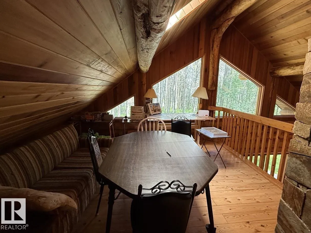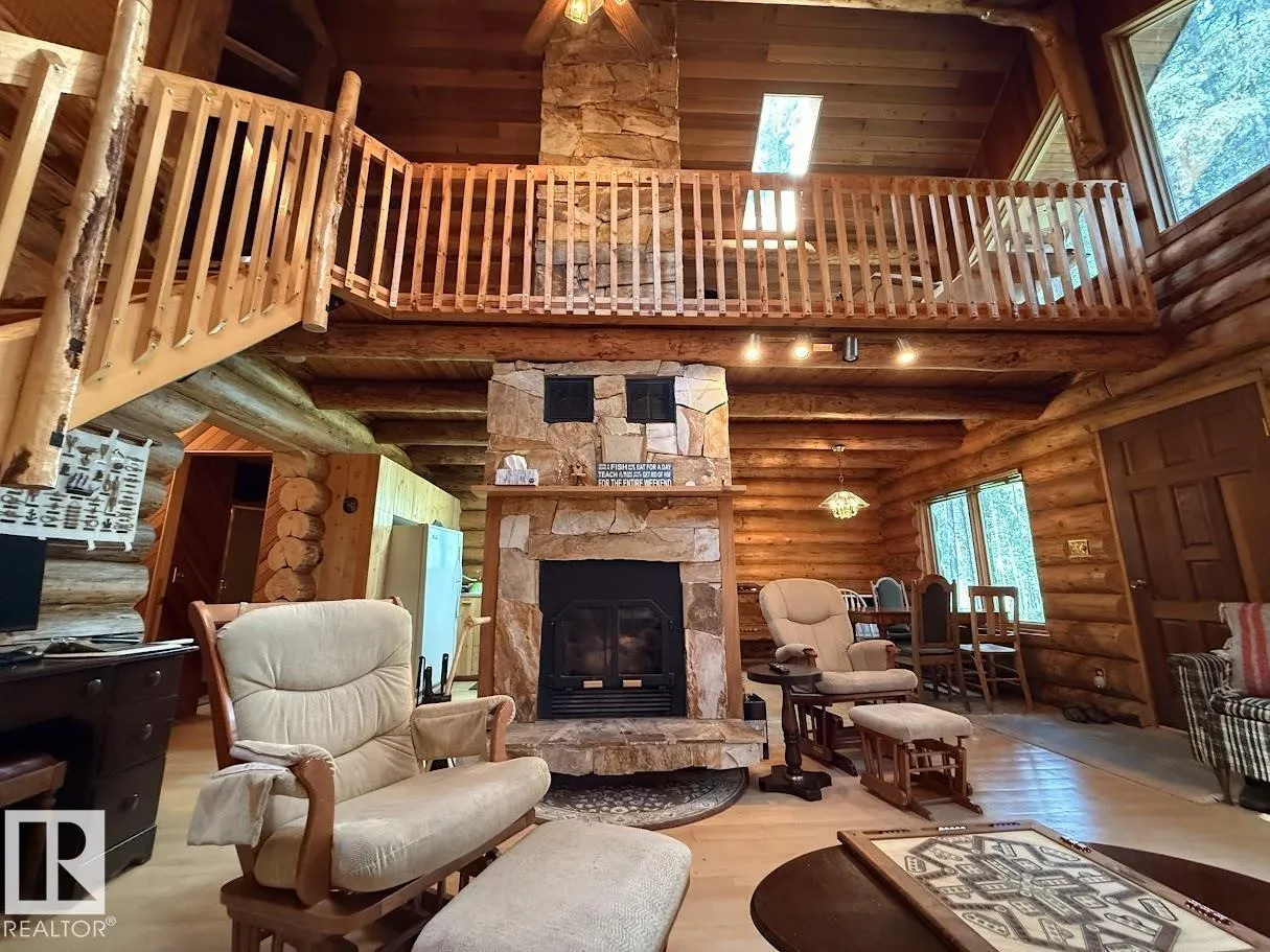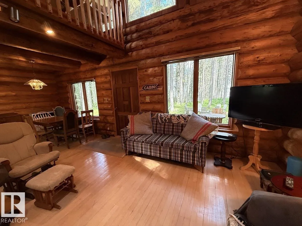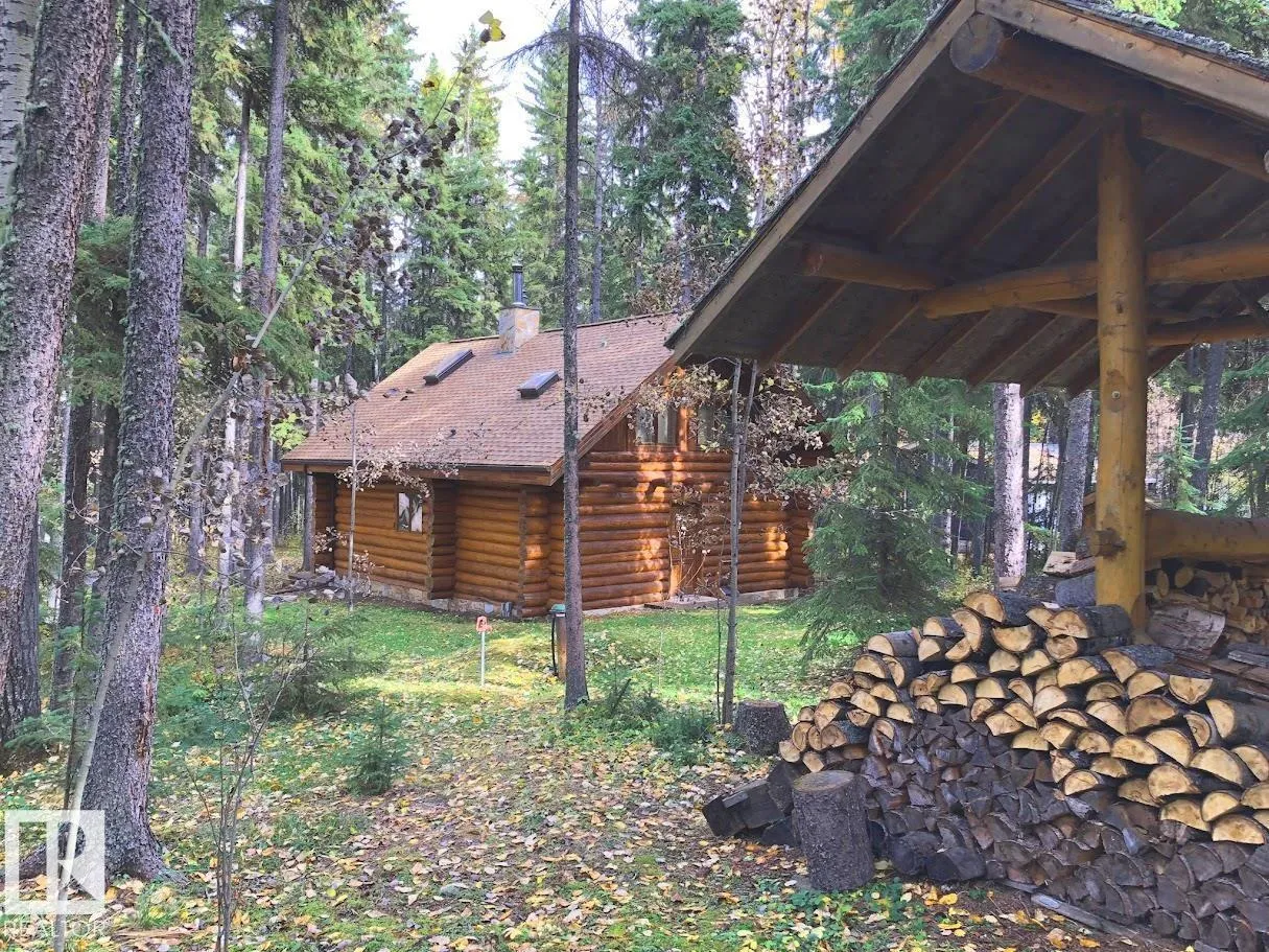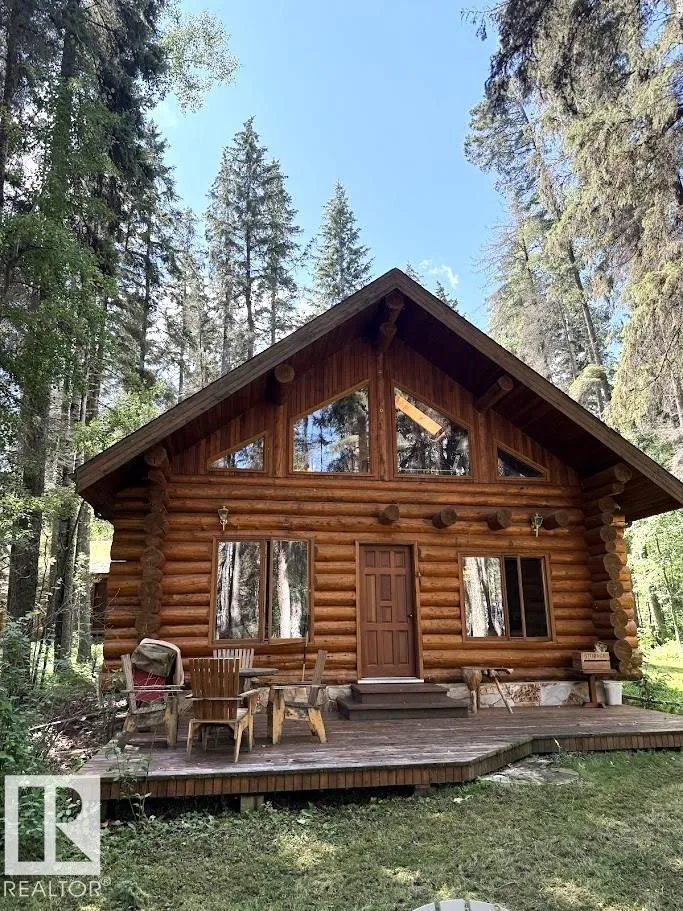Tucked among the towering spruce on a scenic half-acre lot, this lakefront log cabin offers the perfect blend of rustic charm and peaceful privacy. The inviting cabin features a stone-faced wood-burning fireplace that provides natural warmth, complemented by two wall-mounted gravity furnaces. The kitchen, highlighted by a classic âHappy Thoughtâ wood cook stove, is perfect for preparing meals the old-fashioned way or choose the microwave and countertop stove for modern ease. Inside, youâll appreciate beech flooring, pine cabinetry, and generous lakeside windows that flood the home with natural light. The primary bedroom and 3-piece bath, are on the main floor with the loft offering two additional bedrooms plus an open bonus area, ideal for extra sleeping space or a games area. Furniture, household goods, shed, boat lift and 112 ft. dock are included. Adjacent lot #21, MLS#E4475321, is also available for sale providing a rare opportunity to own over 1 acre of lakefront property in Buck Lake Estates. (id:27476)