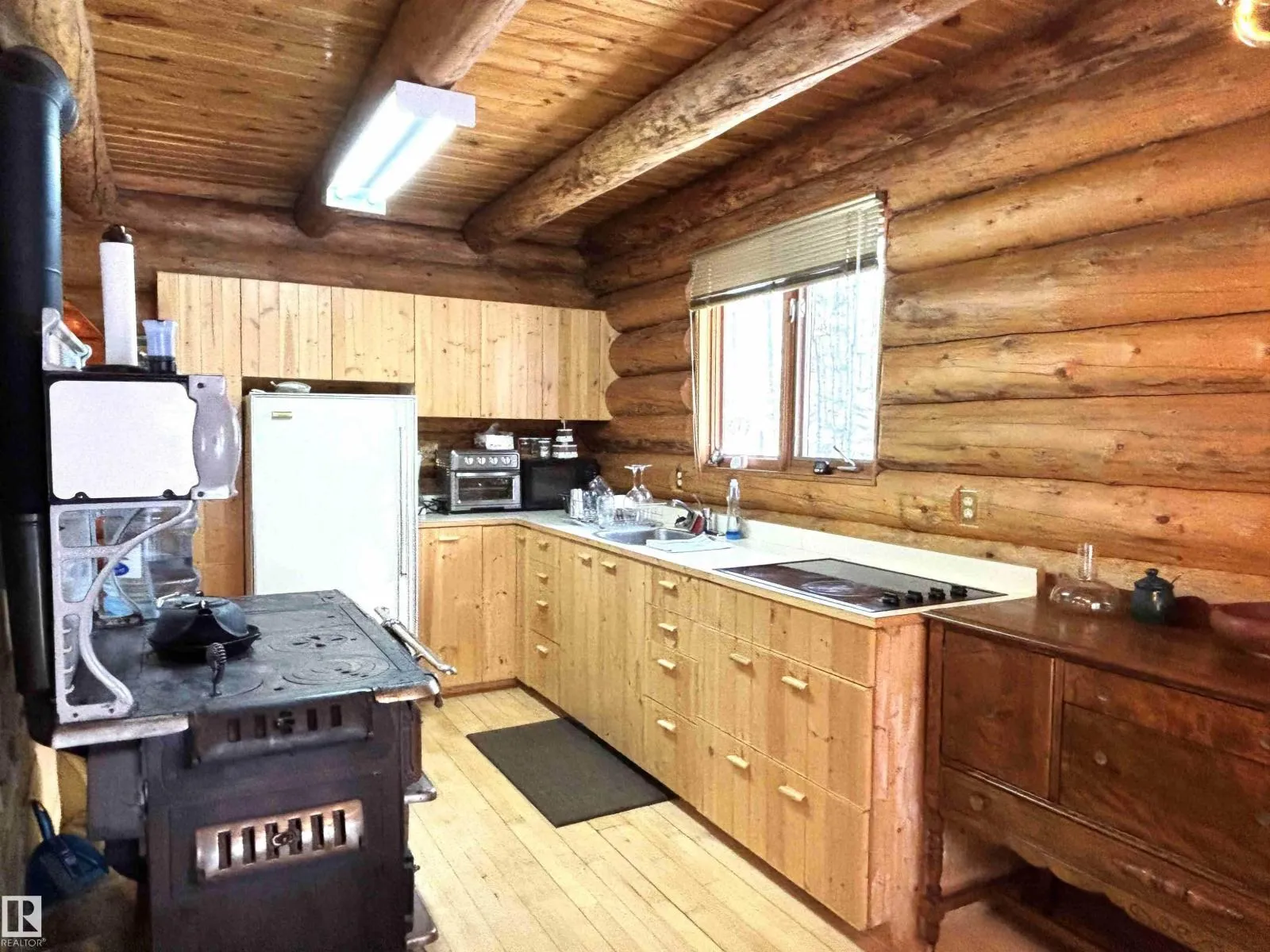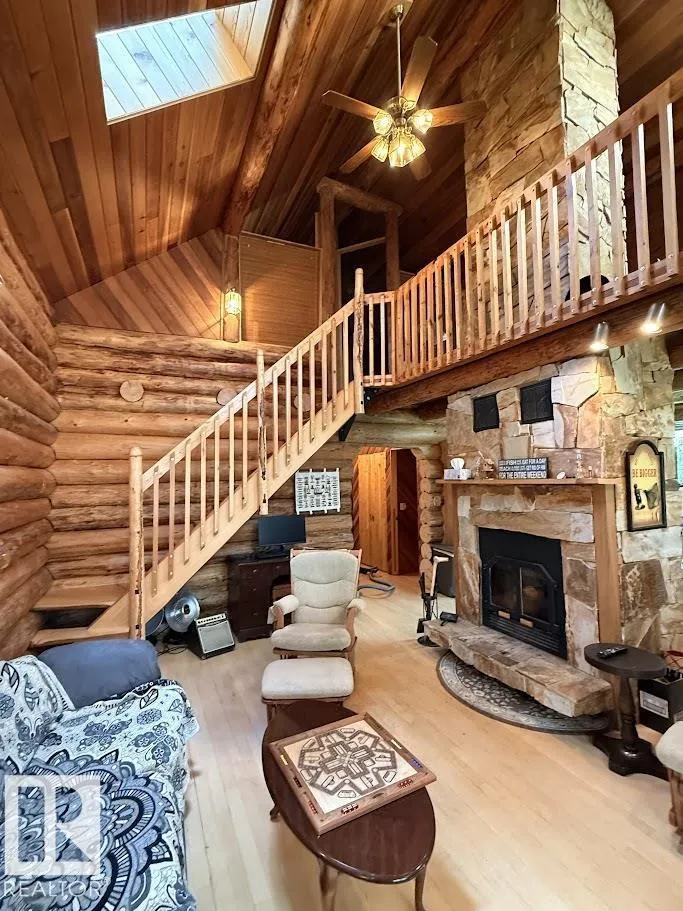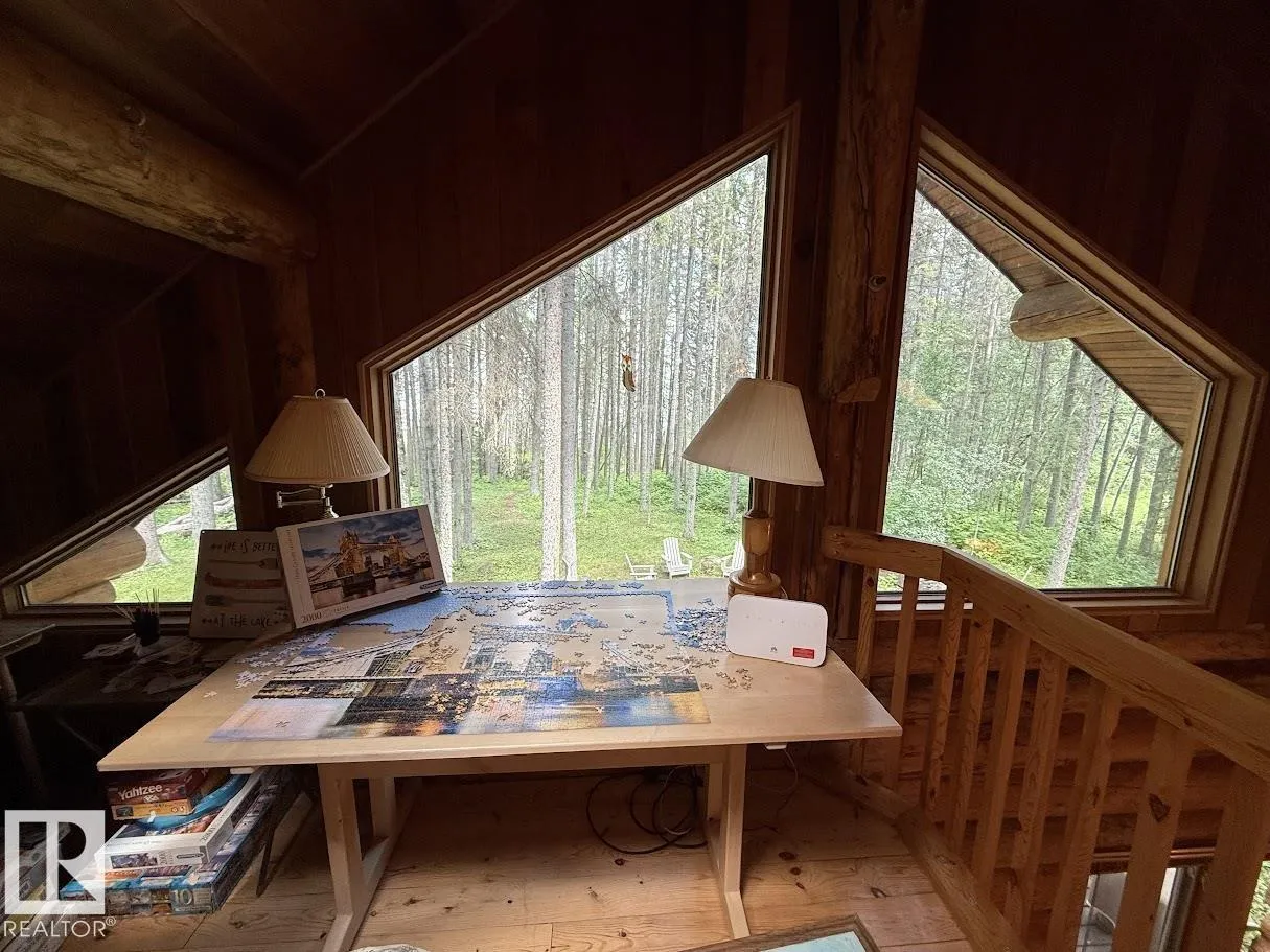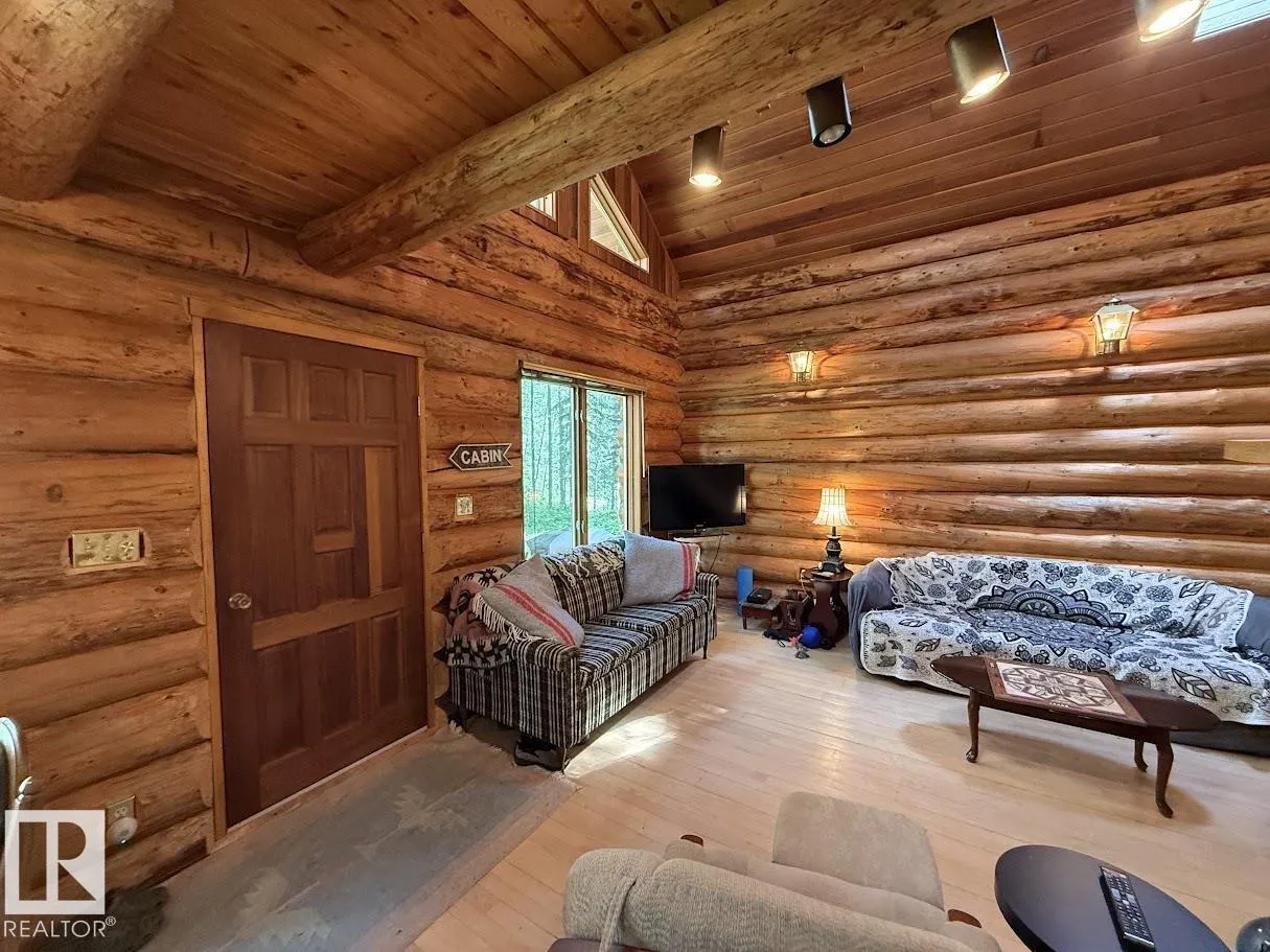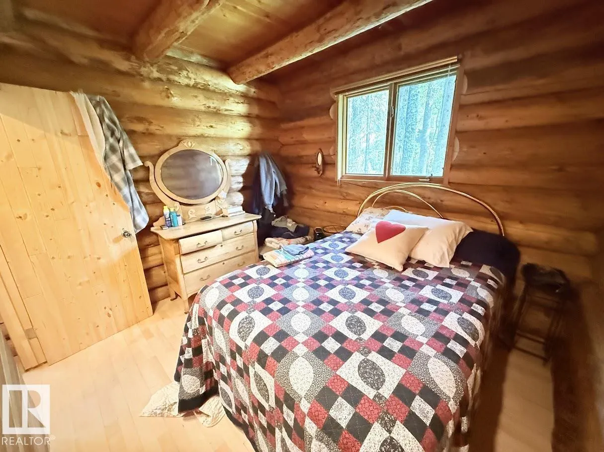 Tucked among the towering spruce on a scenic half-acre lot, this lakefront log cabin offers the perfect blend of rustic charm and peaceful privacy. The inviting cabin features a stone-faced wood-burning fireplace that provides natural warmth, complemented by two wall-mounted gravity furnaces. The kitchen, highlighted by a classic âHappy Thoughtâ wood cook stove, is perfect for preparing meals the old-fashioned way or choose the microwave and countertop stove for modern ease. Inside, youâll appreciate beech flooring, pine cabinetry, and generous lakeside windows that flood the home with natural light. The primary bedroom and 3-piece bath, are on the main floor with the loft offering two additional bedrooms plus an open bonus area, ideal for extra sleeping space or a games area. Furniture, household goods, shed, boat lift and 112 ft. dock are included. Adjacent lot #21, MLS#E4475321, is also available for sale providing a rare opportunity to own over 1 acre of lakefront property in Buck Lake Estates. (id:27476)