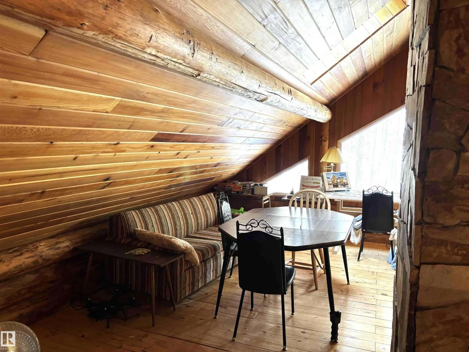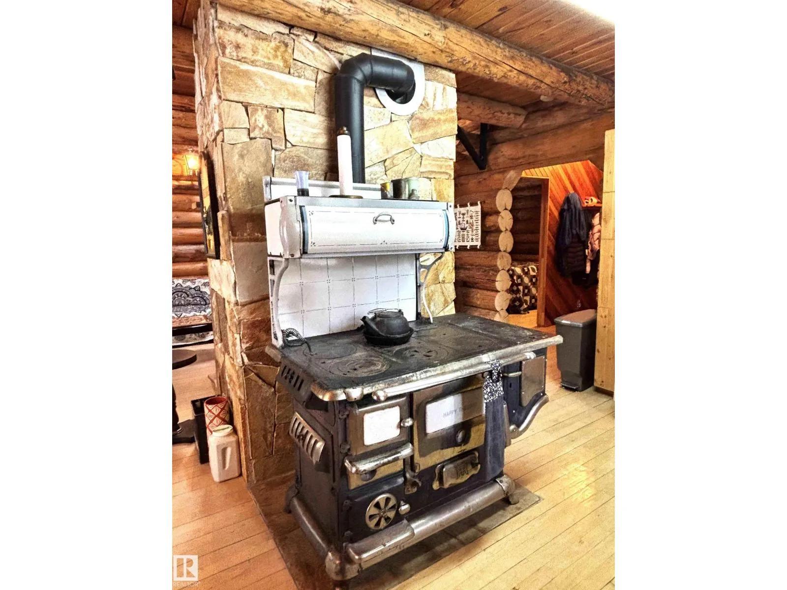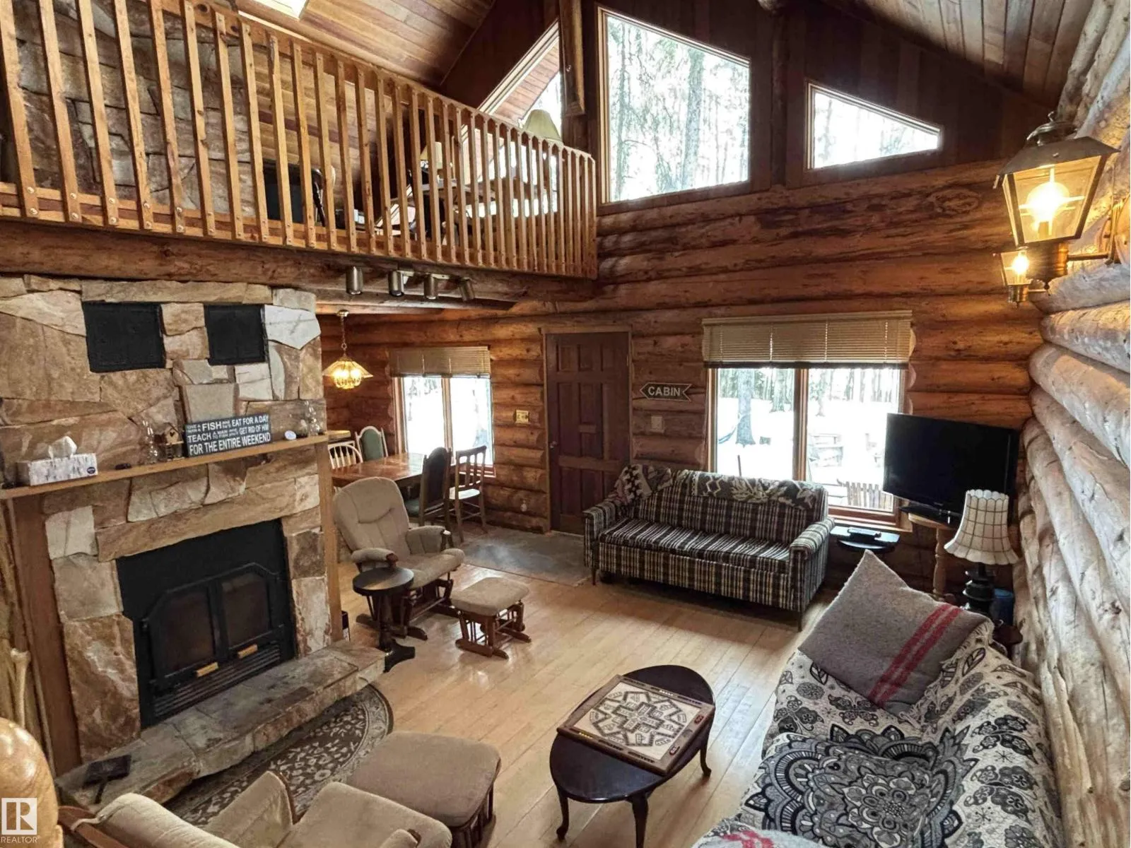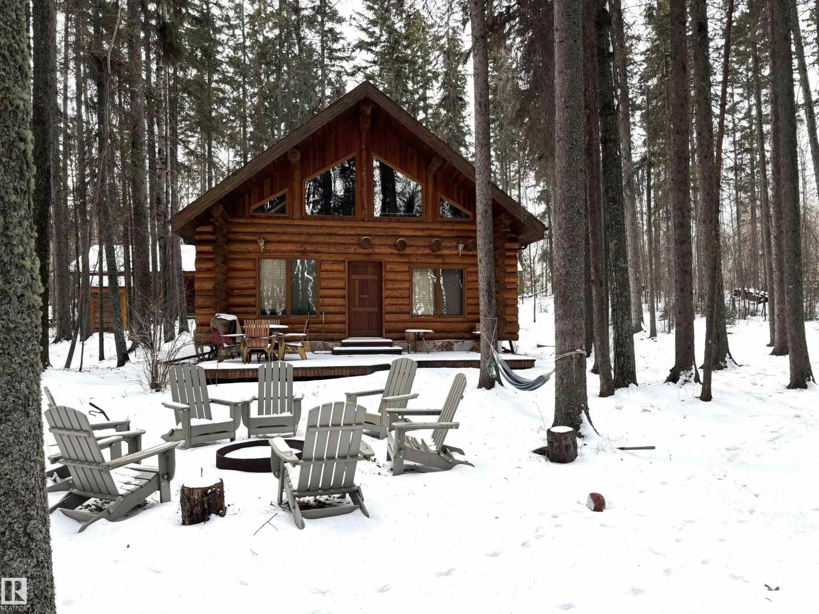 Tucked among the towering spruce on a scenic half-acre lot, this lakefront log cabin offers the perfect blend of rustic charm and peaceful privacy. The inviting cabin features a stone-faced wood-burning fireplace that provides natural warmth, complemented by two wall-mounted gravity furnaces. The kitchen, highlighted by a classic âHappy Thoughtâ wood cook stove, is perfect for preparing meals the old-fashioned way or choose the microwave and countertop stove for modern ease. Inside, youâll appreciate beech flooring, pine cabinetry, and generous lakeside windows that flood the home with natural light. The primary bedroom and 3-piece bath, are on the main floor with the loft offering two additional bedrooms plus an open bonus area, ideal for extra sleeping space or a games area. Furniture, household goods, shed, boat lift and 112 ft. dock are included. Adjacent lot #21, MLS#E4475321, is also available for sale providing a rare opportunity to own over 1 acre of lakefront property in Buck Lake Estates. (id:27476)