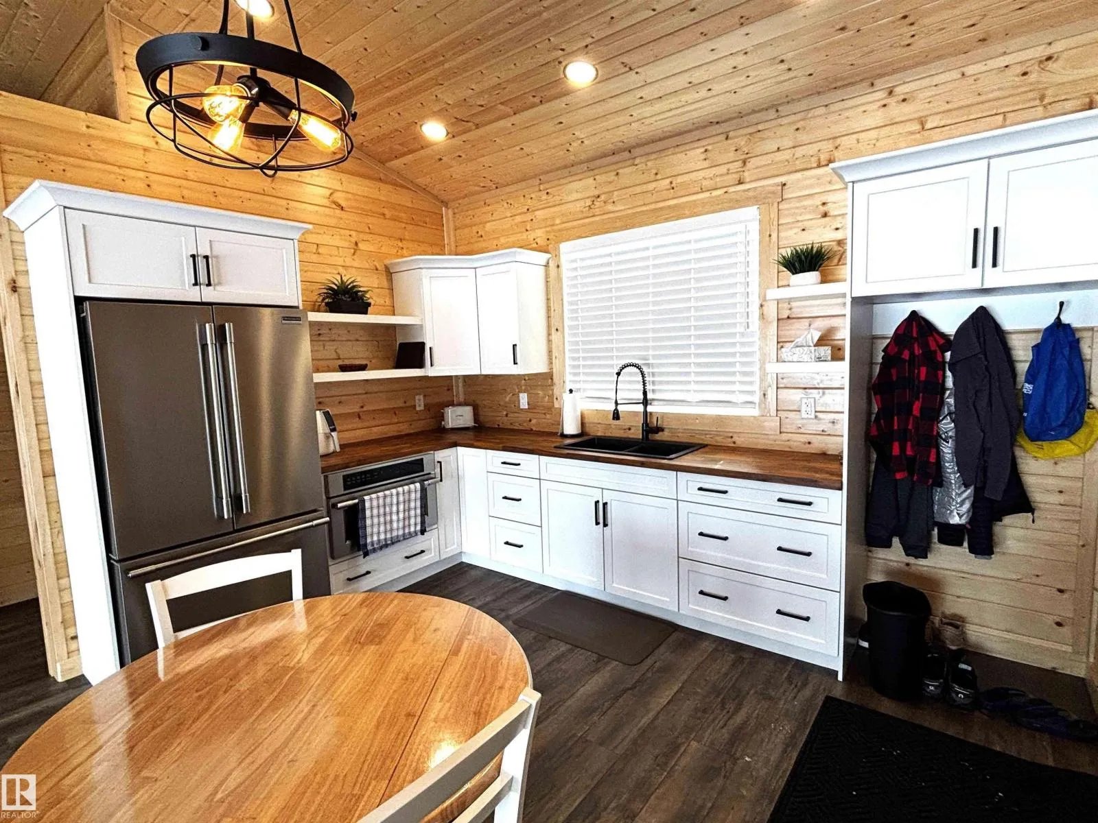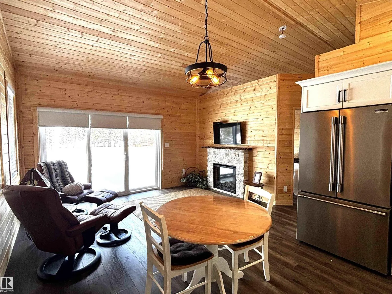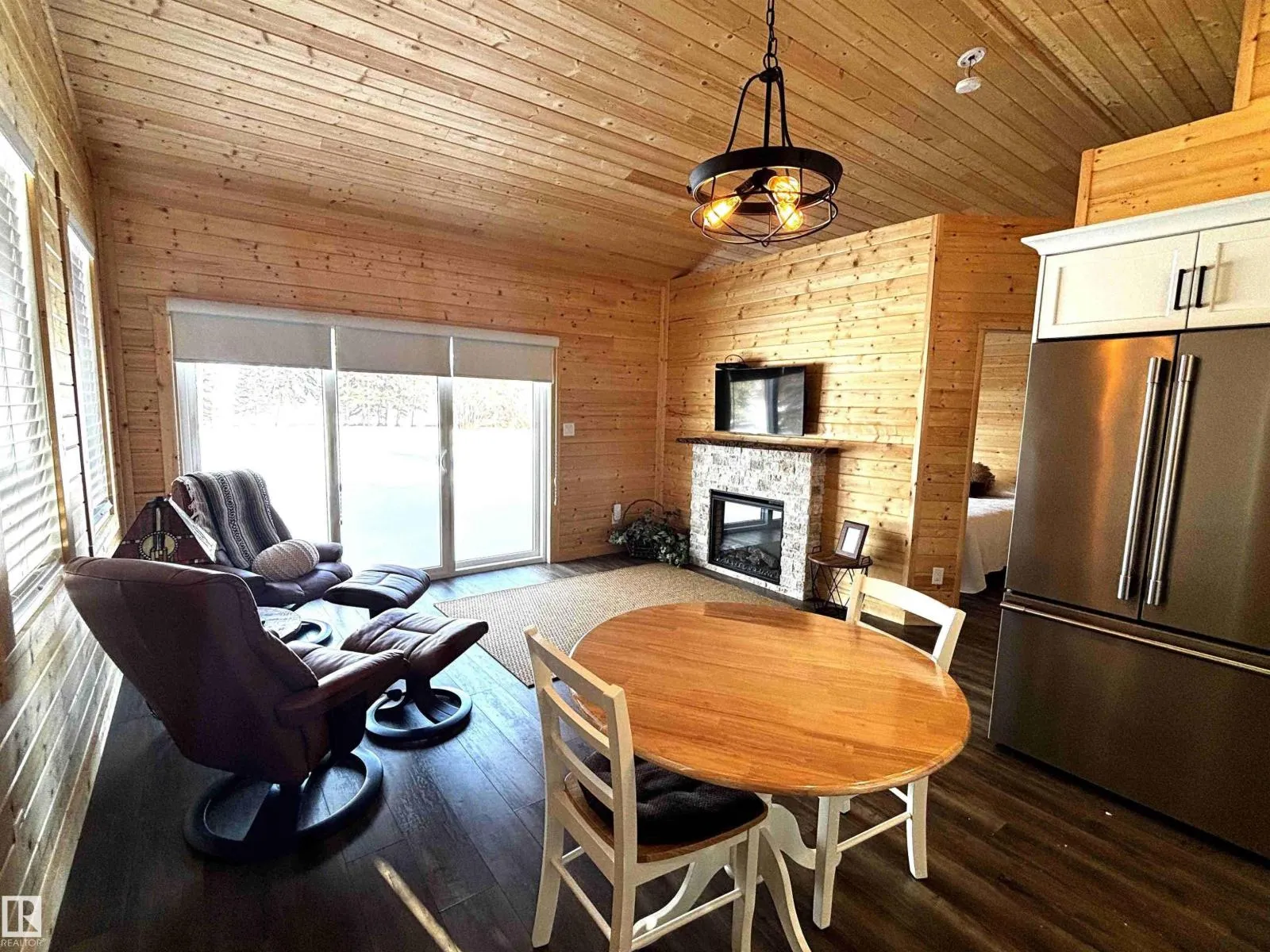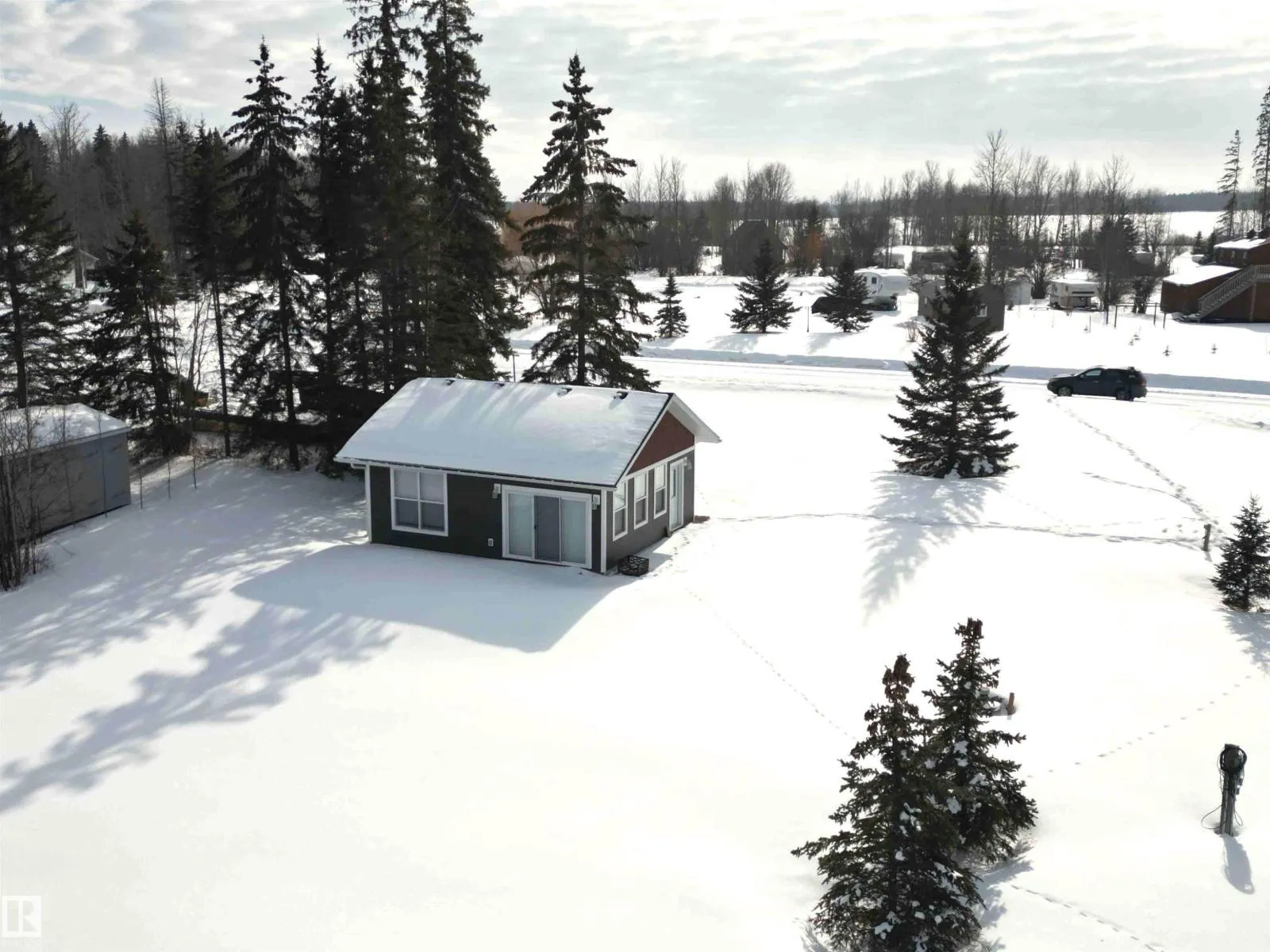 Lakefront Lot in Hauserâs Cove! This beautiful property features a charming 572 sq. ft. cabin in pristine condition, offering the perfect lakeside retreat. The thoughtfully designed one-bedroom cabin showcases warm pine finishes throughout and includes a bright kitchen and living area, a comfortable bedroom, and a convenient 3-piece bathroom. Two electric fireplaces add cozy ambiance, making it an inviting space to relax after a day on the water. Built on pressure-treated skids, the cabin is movable, offering added flexibility for future plans. The environmental reserve between the lot and the lake is mostly open, allowing for easy access to the shoreline. As an added bonus, the property includes a boat slip on the dockâideal for making the most of lake life. A wonderful opportunity to enjoy peaceful lakeside living in desirable Hauserâs Cove. (id:27476)