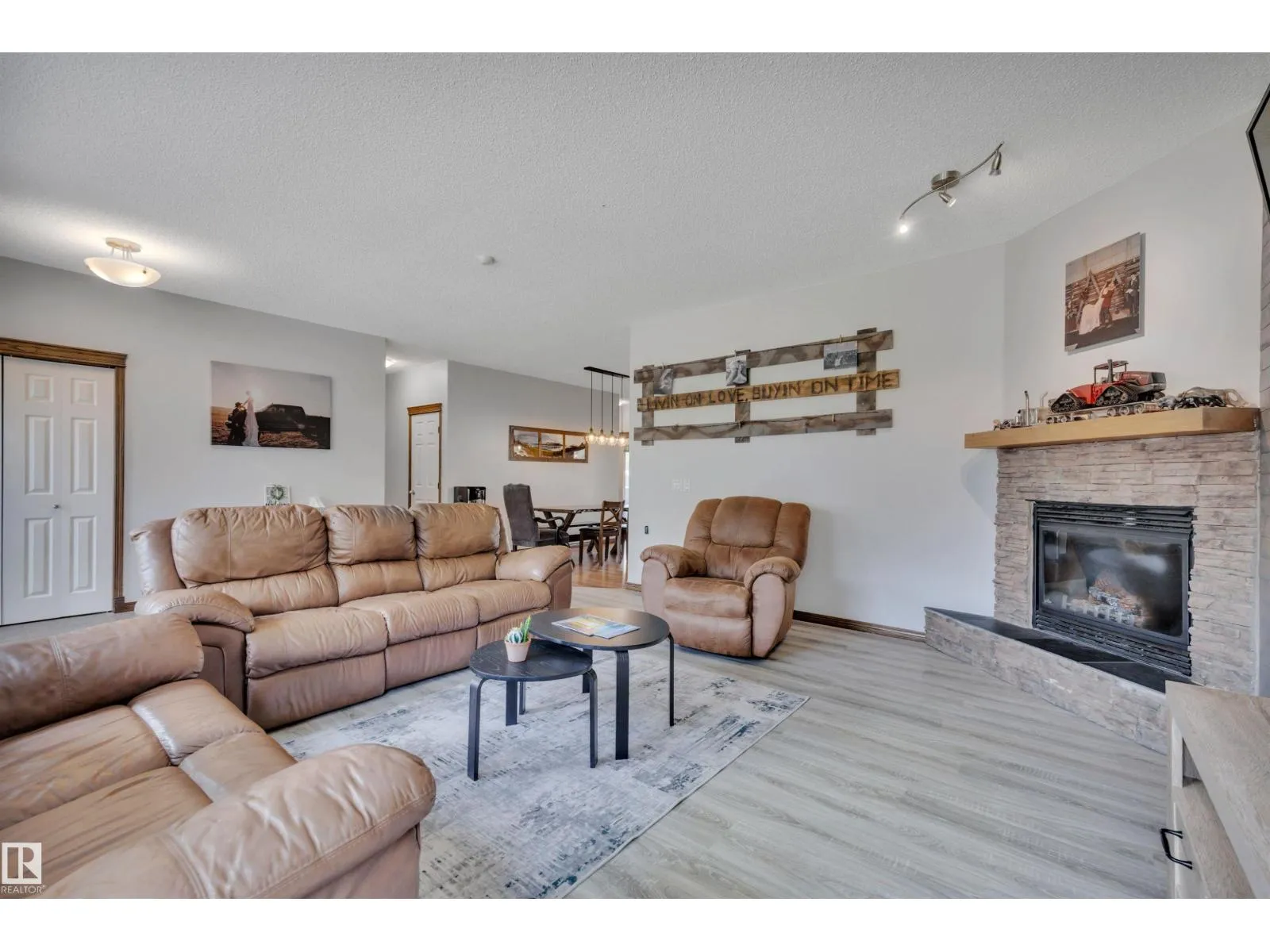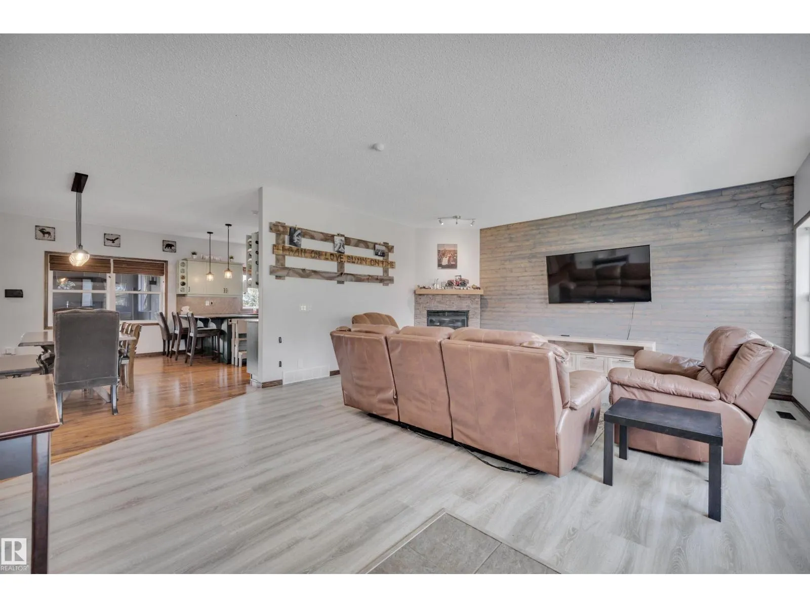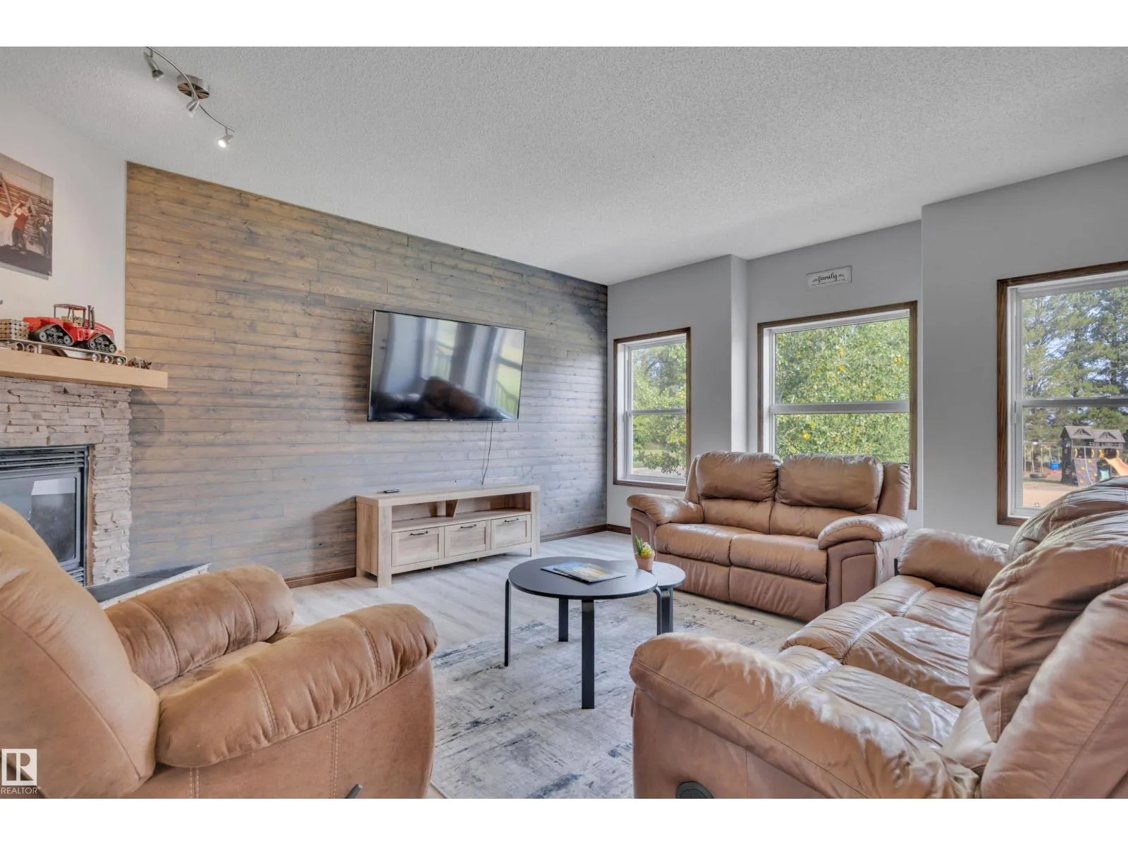 BEAUTIFULLY PRESENTED! 50' x 60' SHOP! TREED & PRIVATE! This 1773 sq ft 5 bed + 2 den, 3 bathroom raised bungalow on 4.13 acres out of subdivision is turnkey & only minutes to town! Feat: new shop w/ 14'x14' doors & solar panels, A/C, in floor basement heating, 9' ceilings, covered sunroom / deck, powered shed, custom grain bin bar & firepit space, & more! Your entryway leads into the large living room w/ chic woodgrain feature wall & gas fireplace; perfect spot for family visiting. Massive farmhouse kitchen w/ granite countertops, massive fridge / freezer combo, new oven, & spacious eat in dining. 3 bedrooms up, including the primary bed w/ walk in closet & 4 pce bath. Main floor laundry & 4 pce bath. The basement is fully finished, w/ rec room w/ pool table & wet bar, theatre room for movie night, 2 massive bedrooms, 3 pce bath w/ infared sauna. 2 dens, & tons of storage room! The yard is incredible! Fully treed perimeter, landscaped; pride of ownership is evident. A must see property! (id:27476)