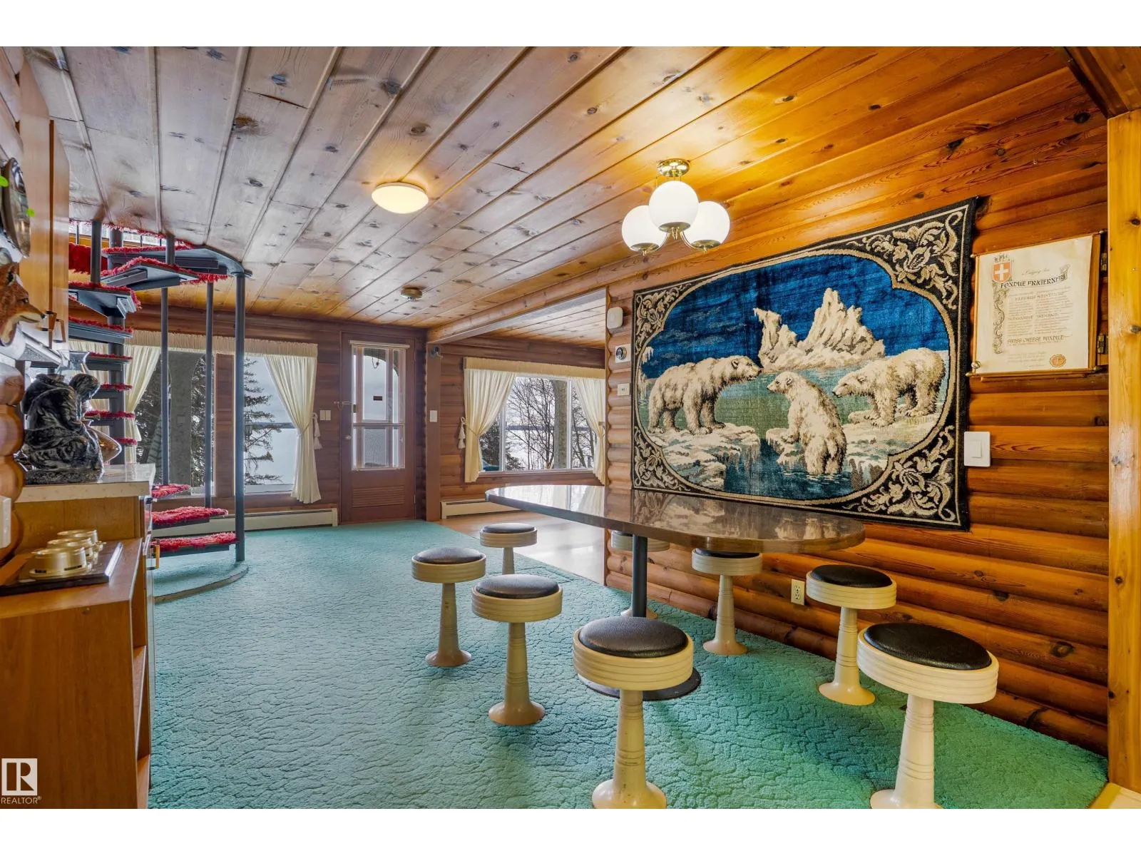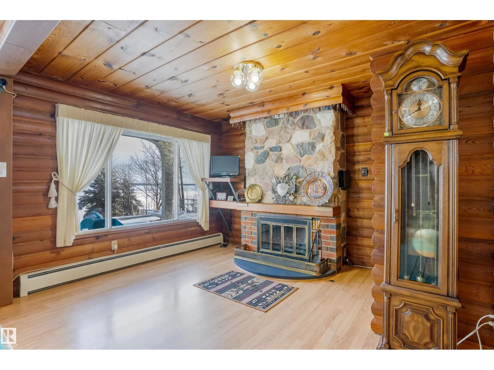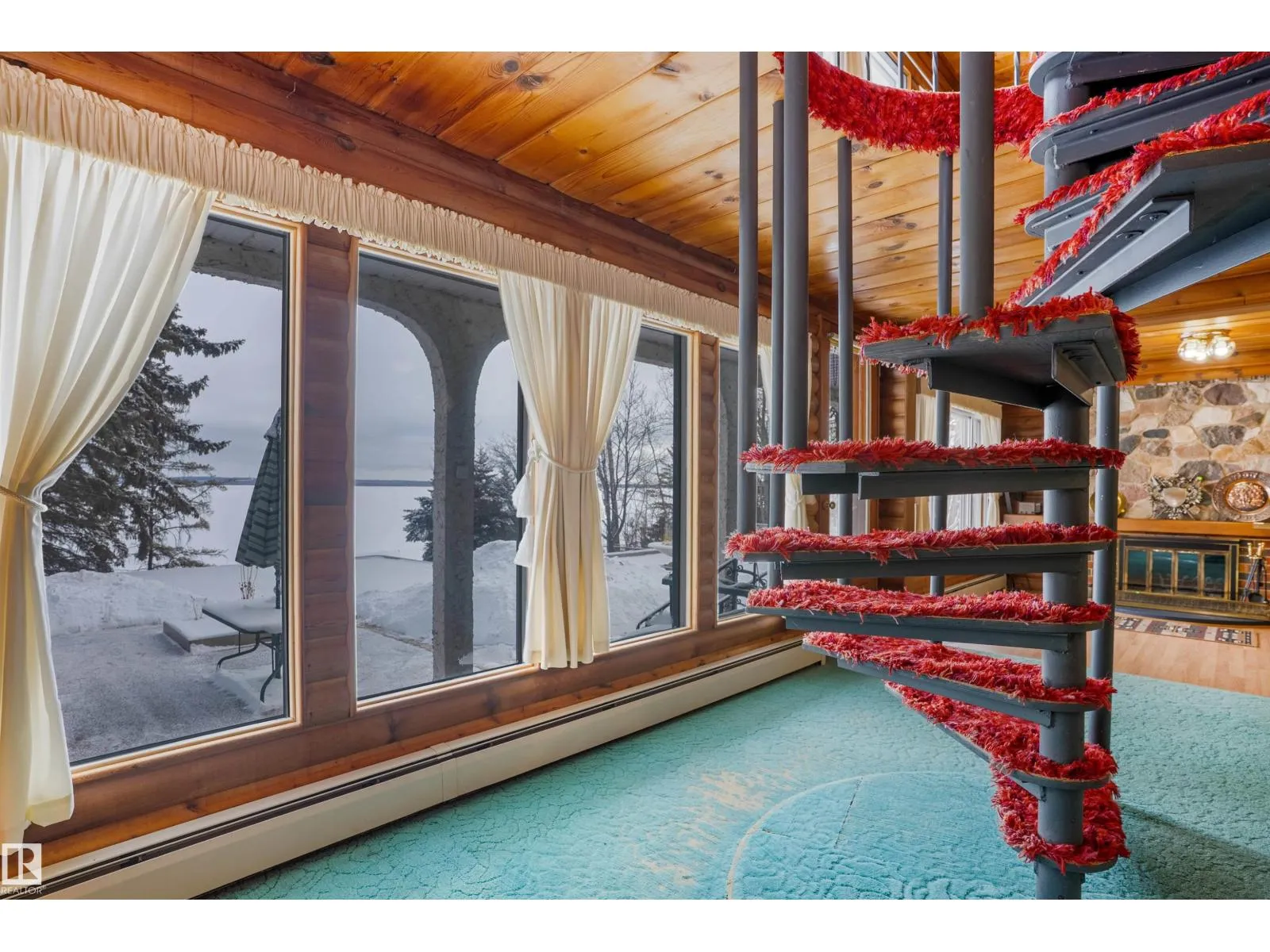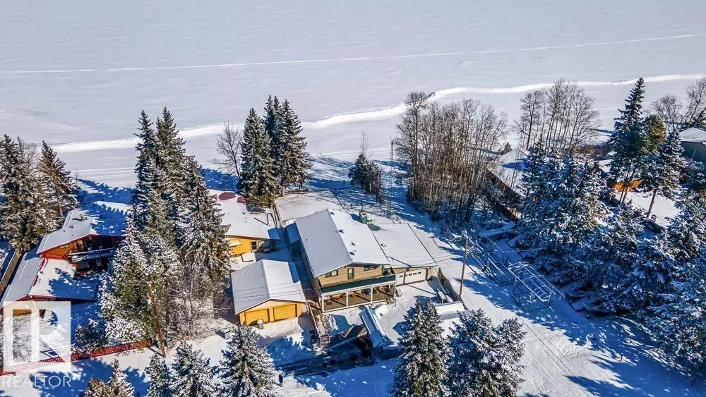 Welcome to Norris Beach, featuring one of the largest lakefront lots in the community and on Pigeon Lake. Enjoy excellent waterfront with a deep drop off and water conditions. This is perfect for those who value clean water and a beautiful shoreline. The lot measures 60 ft wide with a west lot line of 132.86 ft and an east lot line of 167 ft, plus nearly an additional 30 ft of length near the shoreline beyond the property line. Property is also bordered by a municipal reserve on one side offering added privacy. Nearly 2,000 sq ft home includes a double oversized attached garage (27.7x35.8 ft) offers 4 bedrooms, two large balconies, and expansive windows that capture stunning lake views. Additional features include a durable metal roof, powered overhead entrance gate, two automatic lawn mowers, a boiler heating system, Drilled well, circular metal staircase, two fireplaces (gas and wood), a sauna, breathtaking bonus room overlooking the water and a municipal Sewer System! 2 Mins to Village at Pigeon Lake! (id:27476)