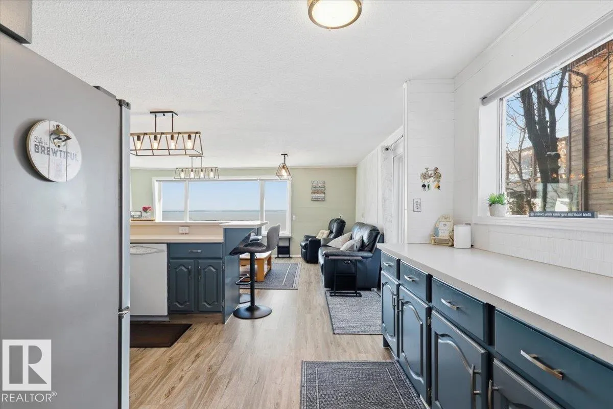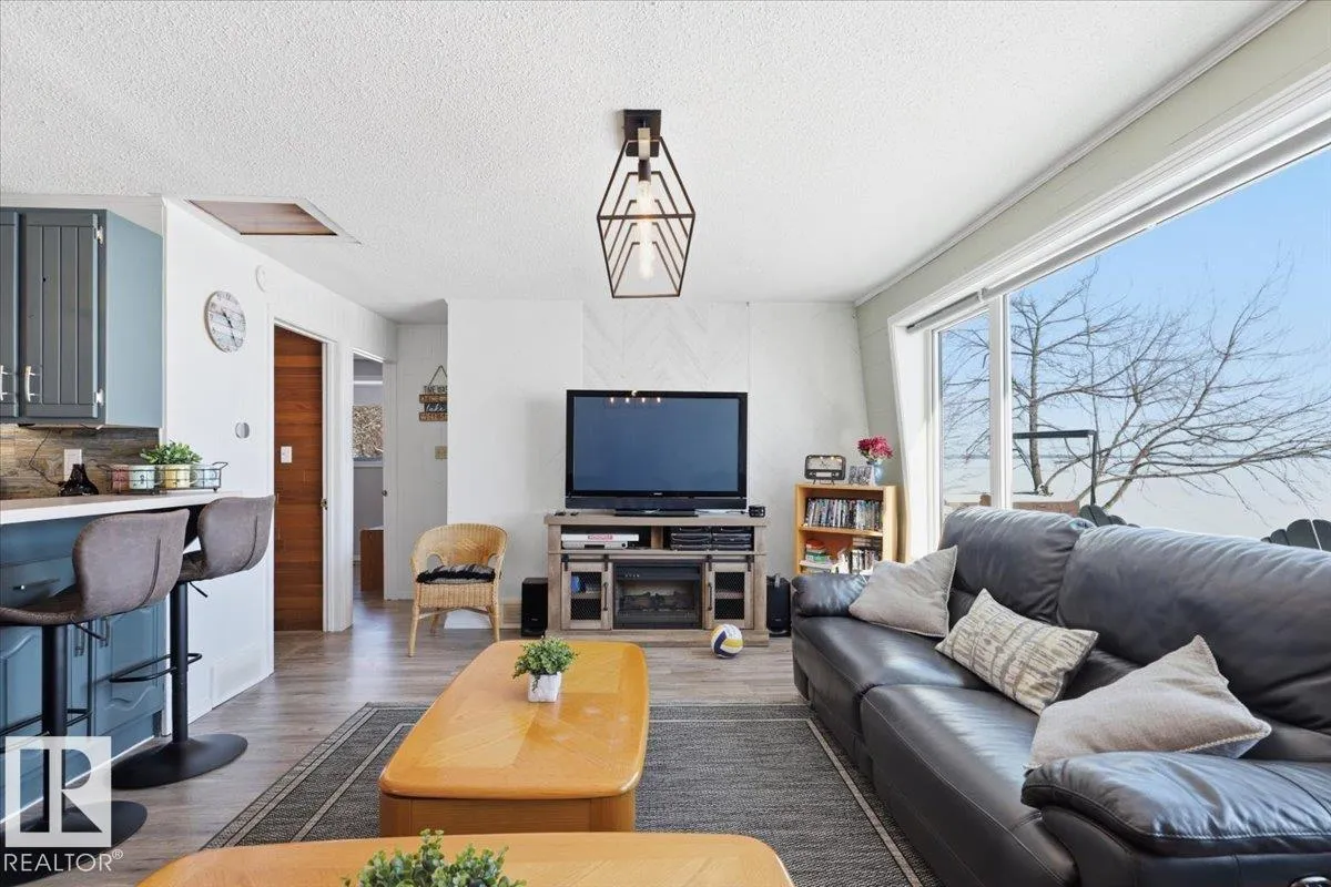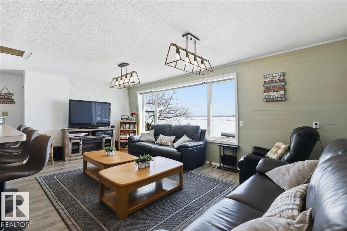 This Lakefront Bungalow in Grandview was completely renovated in 2023 with hardie board siding, stone, and shingles on the outside, with a complete make over on the inside! It also has a double detached garage with 701sq/ft of living space above! Through the fenced back yard, and complete wrap around deck to enter the home with an open concept Dining room, Kitchen, and Living room with large windows throughout providing lots of natural light and views of the lake. Two bedrooms and a 3 piece bathroom complete the floor plan of the modernized cabin home that also has Air Conditioning. The Garage is heated with a bathroom, and laundry with steps up to the guest living space. The loft is made up of two more bedrooms and a spacious family room with a patio door to the balcony deck. The property is beautifully landscaped with nothing left to do but unwind and enjoy life at the lake! The lot beside is also available for added space if needed. (id:27476)