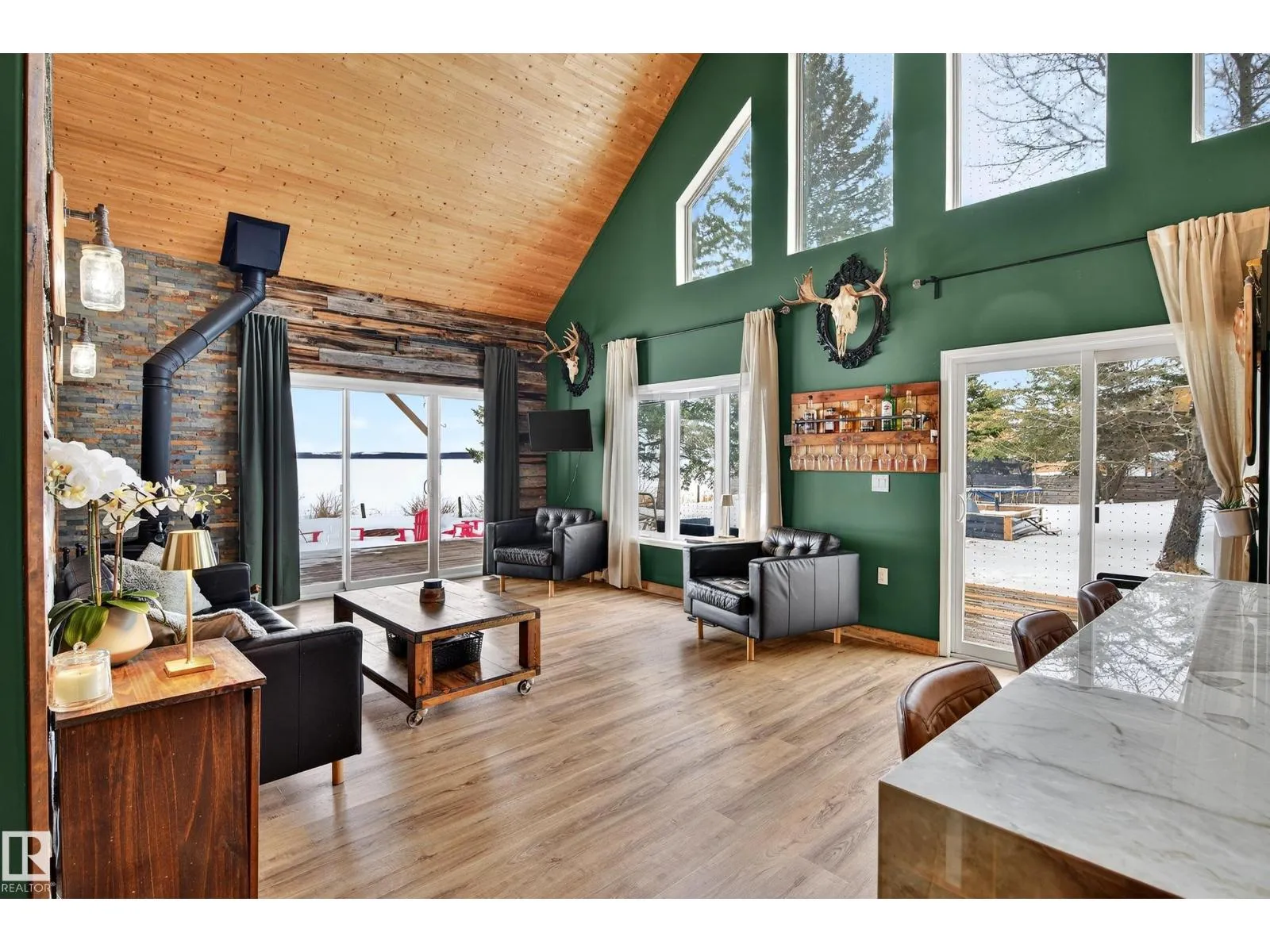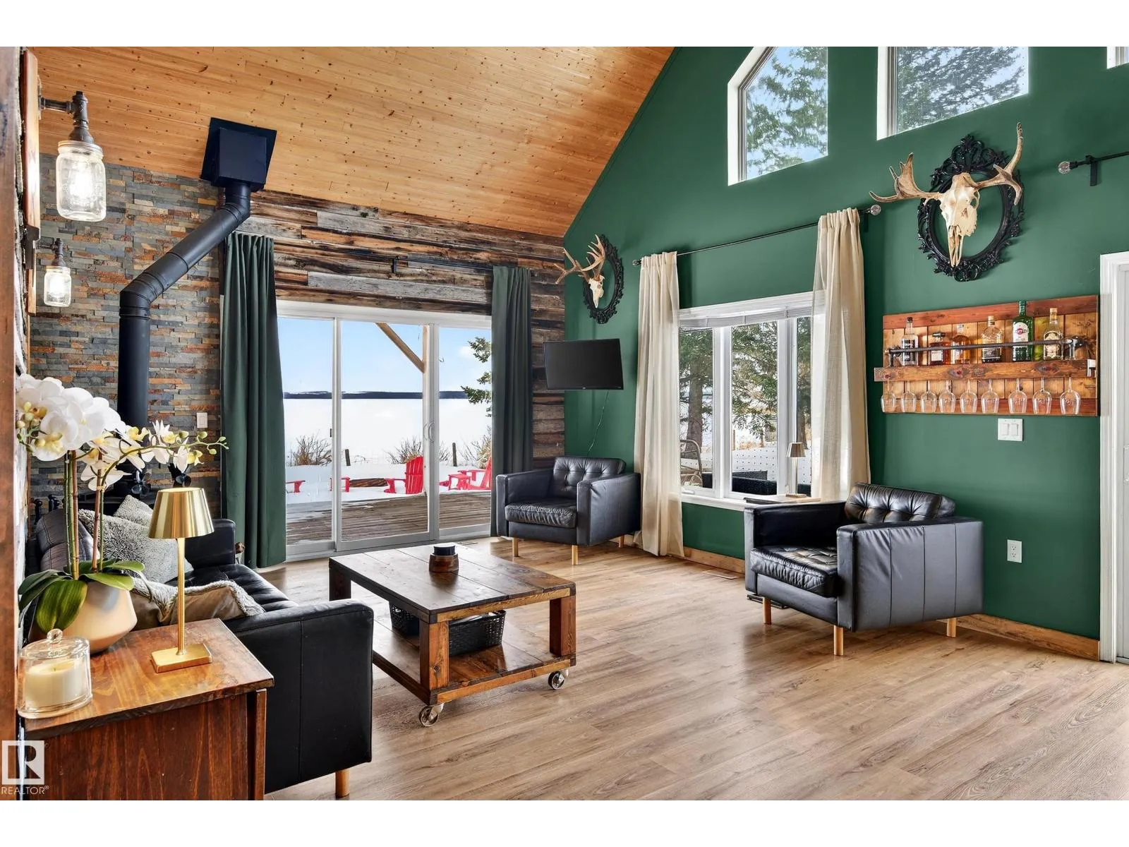 Escape the city & discover true LAKEFRONT living on beautiful Buck Lake. Tucked away on private 0.57-acre parcel w/impressive 182 ft of shoreline. This property offers the ultimate retreat. Skip straight to the water & enjoy your own dock, making every day at the lake effortless. 4-bedroom, 2-bath home is designed to fully embrace its stunning surroundings. Vaulted wood plank ceilings create a warm, inviting atmosphere, while the bright open concept layout captures sweeping lake views from the main living space. Step out onto the expansive 10â wraparound deck, perfect for morning coffee & evening sunsets. Interior has been thoughtfully updated, featuring a renovated kitchen w/striking waterfall quartz island, new appliances, stylish backsplash, updated lighting, flooring & fixtures. Comfort & efficiency are top of mind w/newer furnace/ducting. Insulated/heated crawl space. DBL oversized Garage is equipped w/5kW solar panels. Property delivers blend of modern upgrades, natural beauty & unbeatable location. (id:27476)