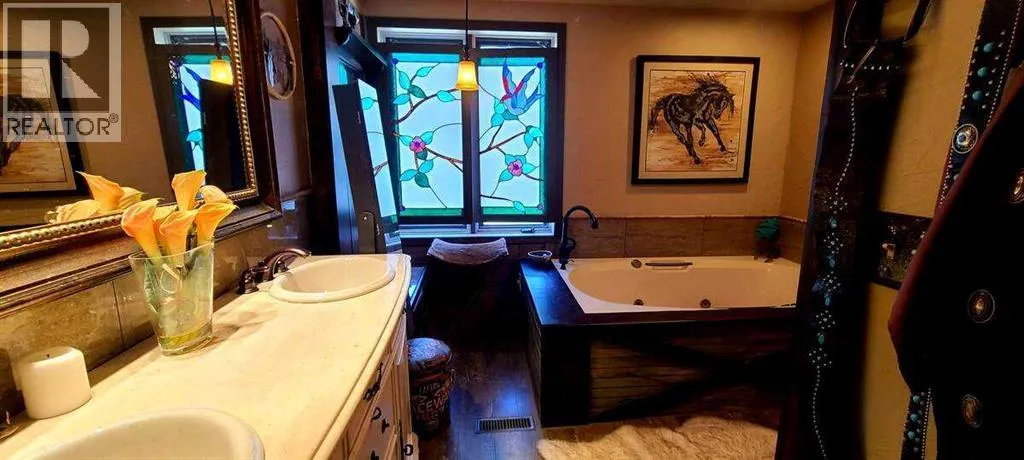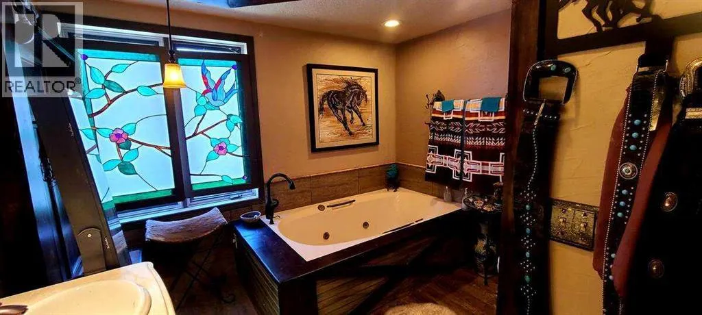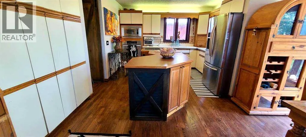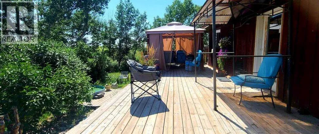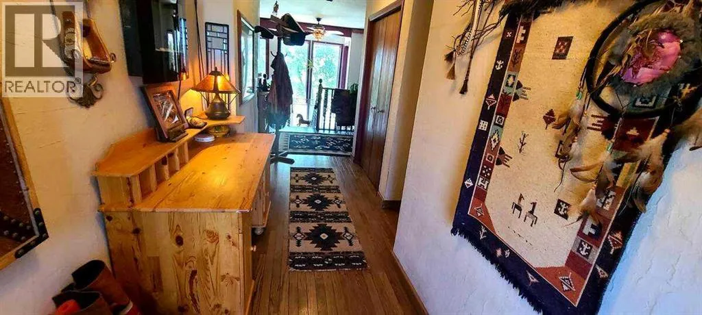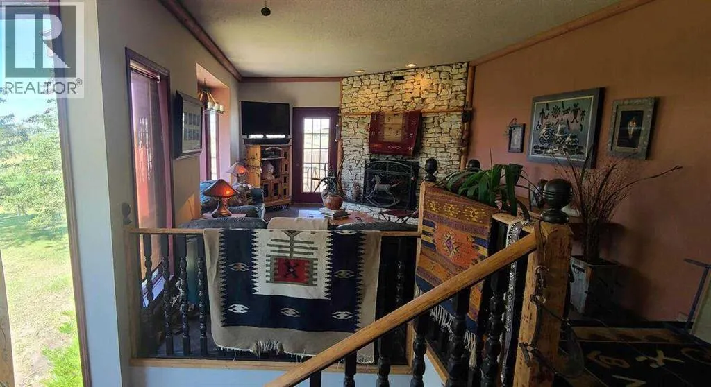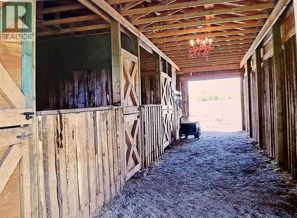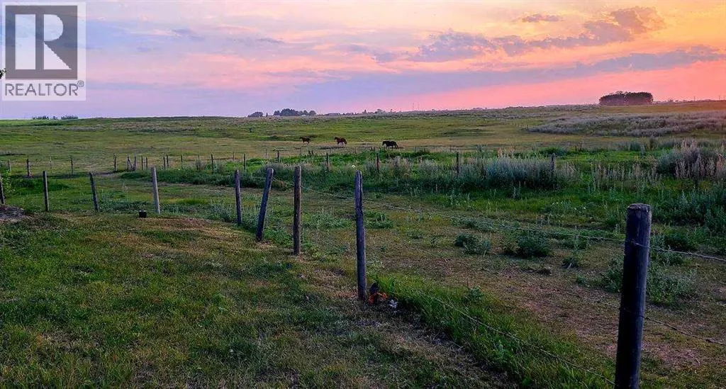 For more information, please click the "More Information" button. This awesome piece of Country property has the Potential To Subdivide or redesignate to commercial or maintain Agriculture status. Within the Wheatland County west Highway 1 area structure plan and only minutes from the De Havilland Field aircraft manufacturing facility project. Live the country life in this comfortable country home with 60 acres that has a creek flowing through or purchase as a holding property with options to redesignate or subdivide for future business opportunities upon County approval. Located close to all amenities and main highway just west of Strathmore and 20 minutes to Calgary. Only 1/2 km off of Highway 1.Currently runs as a horse and cattle ranch with 50 acres of grazing land. It has a creek running through the coulee with a dugout. There is a hay field plus native grass used for grazing. The ranch also has a 900 sq ft 5 stall barn with water hydrant and electricity also shelters, corrals and is fenced and cross fenced. The home is an upgraded raised bungalow with a walkout basement with in-floor heating and wood stove, plus 3 bedrooms, 4-piece bathroom and family room all on lower level. The house has nearly 3000 sq ft of fully developed and usable living space main level is open concept kitchen, dining room and living room with 2 bedrooms a 4-piece bathroom and a 6-piece ensuite and a walk-in closet in master. Huge decks on north, south and east sides. It has much more such as mountain views, incredible sunsets and a treed yard. Great water, newer septic tank, hot water tank, pressure tank and boiler tank. Beautiful home! (id:27476)