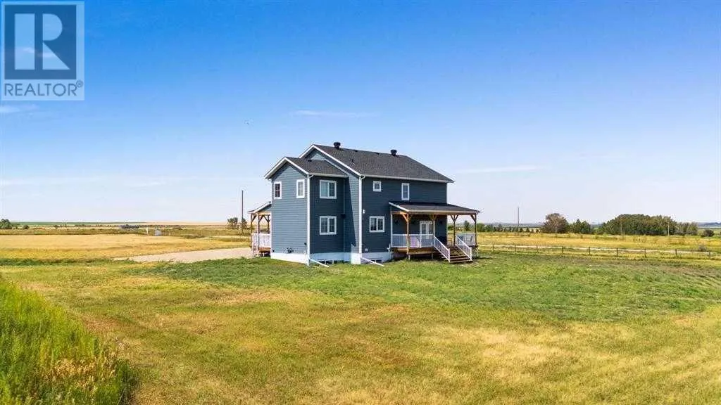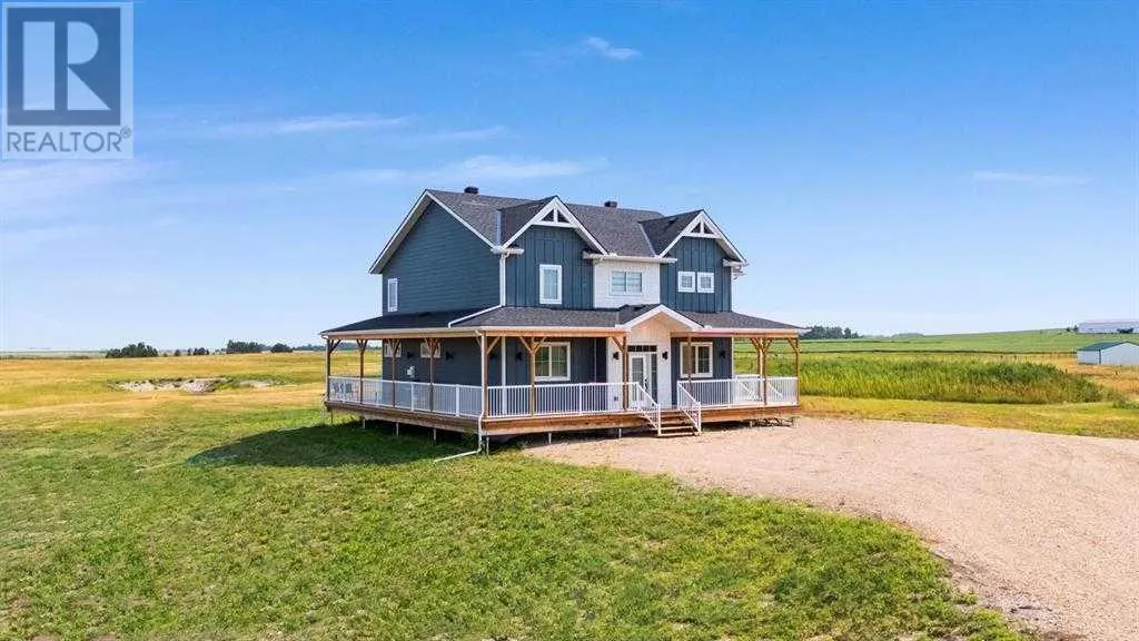 Welcome to Rural Wheatland County - This stunning home is situated on a 10 acre parcel and is conveniently located just 6 minutes from the Town of Strathmore. Easy access to all major amenities including schools, hospitals/ clinics, shops, grocery stores, entertainment & golf courses! The perfect retreat for that equestrian or hobby farmer! With ample space for additional barns, corrals, coops or maybe just a hobby shop to store all your toys. This turn key property has endless potential! As you approach the house you are welcomed by a large 3/4 wrap around porch & beautiful hardy board siding. Through the front door you are welcomed by a large double closest, a walkthrough mudroom featuring laundry & side entrance + tons of storage. Down the hall or through the mudroom you will find the Absolutely stunning custom kitchen - including beautiful wooden cabinetry (with organizers & lemans), a MASSIVE oversized quartz island, gas range/cooktop, oversized basin sink, pearl plumbing fixtures, floating shelfs, custom under cabinet & toe kick LED lighting (linked to night lights that lead to the upstairs bedrooms). The main level also features a generous sized living room with gas fireplace, a large dining room & office space, as well as a 2 piece bathroom. Upstairs you will find 4 generous sized guest bedrooms, a massive 6 piece guest bathroom (featuring 2 separate toilets!). A large primary bedroom completes the second floor, and includes a walk-in closet, 5 piece ensuite bathroom & absolutely STUNNING VIEWS! - This home has so many upgrades! custom HIGH-END LED pot lights throughout, rough in for hot water circulation pump, vaccuflo, motion closet lighting, beautiful window coverings and so much more! With 2800 sqft of developed living space, this home is completely turn key! + the basement features 1400 sqft of un-developed POTENTIAL! (id:27476)