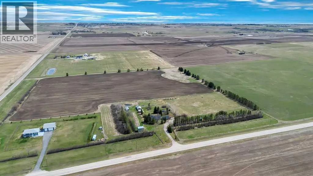 Opportunity on this beautifully treed and private 34.5-acre parcelâjust the lifestyle and investment you've been looking for minutes from Strathmore. Whether you're dreaming of quiet country living, starting your hobby farm, or exploring future subdivision potential, this one has it all. The heart of the property is a fully renovated bungalow offering over 2000 square feet of developed living space, with a warm modern farmhouse style throughout. Featuring 2 bedrooms on the main level plus a spacious 3rd bedroom downstairs, this home is perfect for small families. You'll love the bright open layout, two full bathrooms-2nd bathroom almost completed, and a 90% finished walk-up basement that adds functionality and natural light. Extensive recent updates mean all the work is done for youâwindows, siding, roof, flooring, kitchen, bathrooms, and moreâall with timeless finishes and attention to detail. Step outside and take in the mature trees that offer incredible privacy and a serene setting. Equestrian-ready and hobby farm friendly, the property includes a 10GPM well, new septic system, perimeter fencing, auto waterer, hay shed, numerous utility sheds. Approximately 20 acres are cultivatable with productive soil, offering potential for hay, crops, or income-generating leases. Zoned agricultural and loaded with value, this property offers long-term potential in an area known for its peaceful rural lifestyleâjust a short drive to town amenities. Hereâs your chance to own a versatile acreage where you can build your future while enjoying the best of country living. (id:27476)