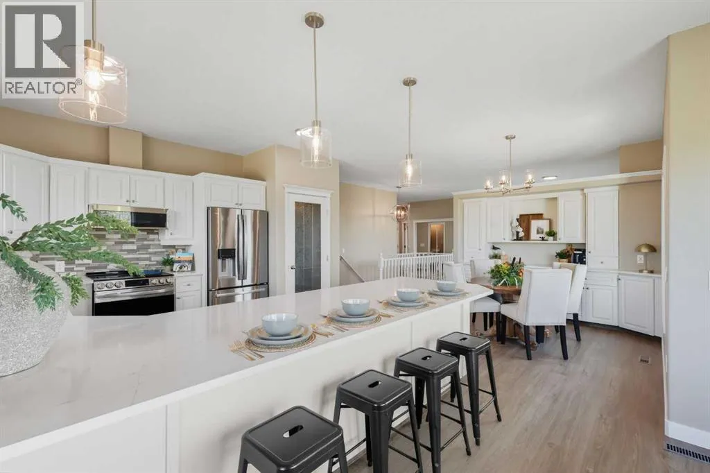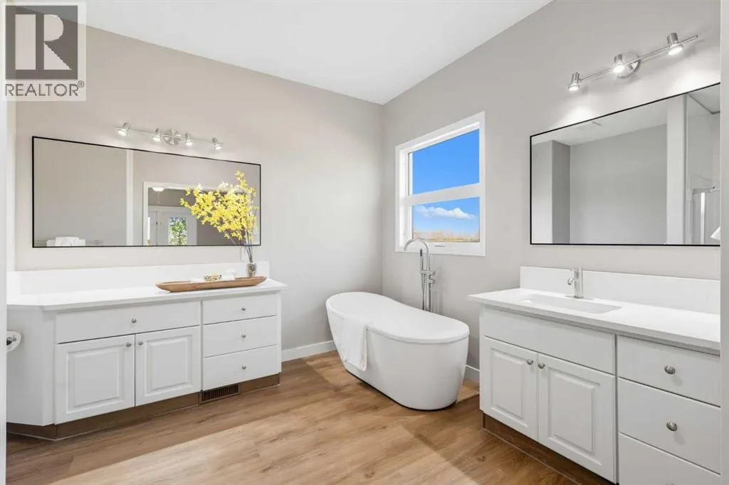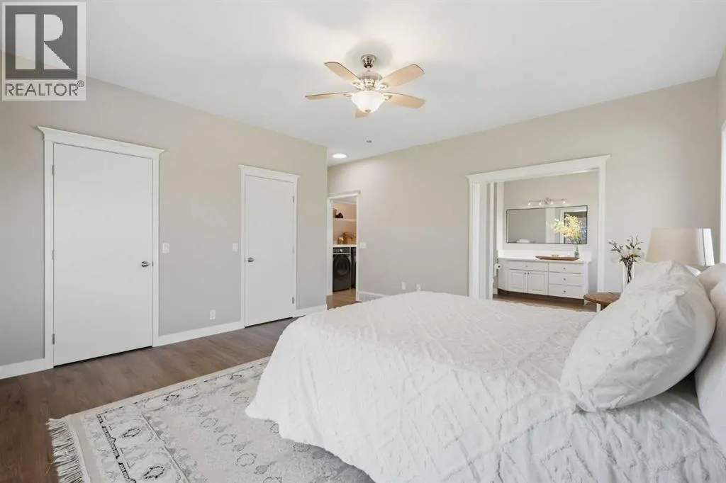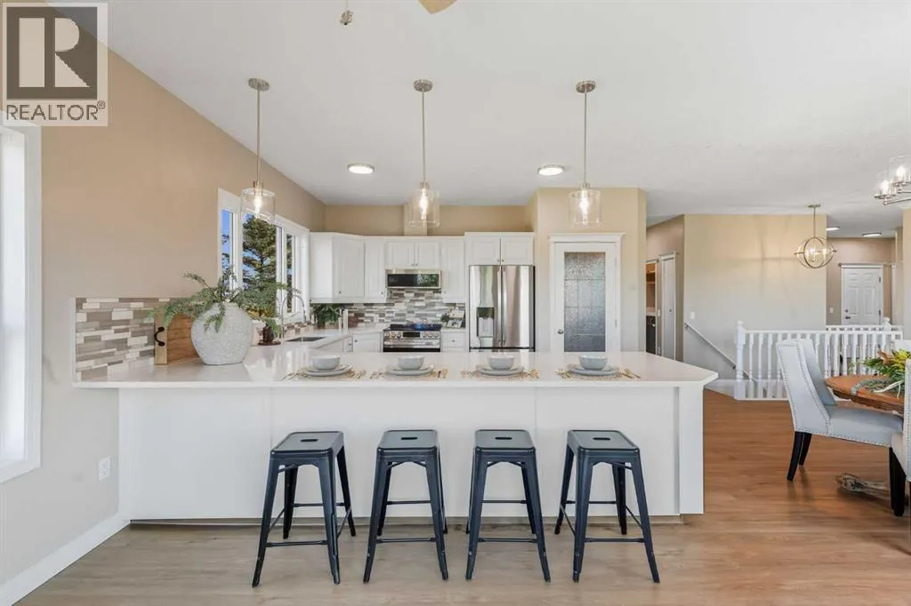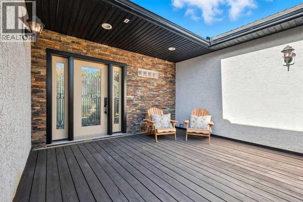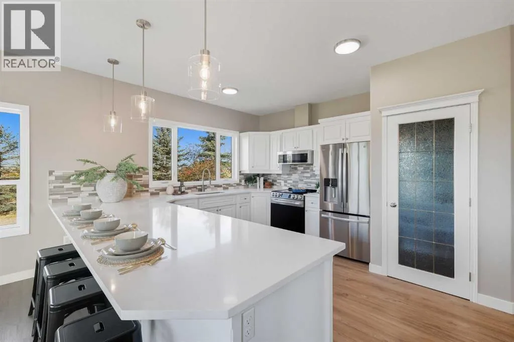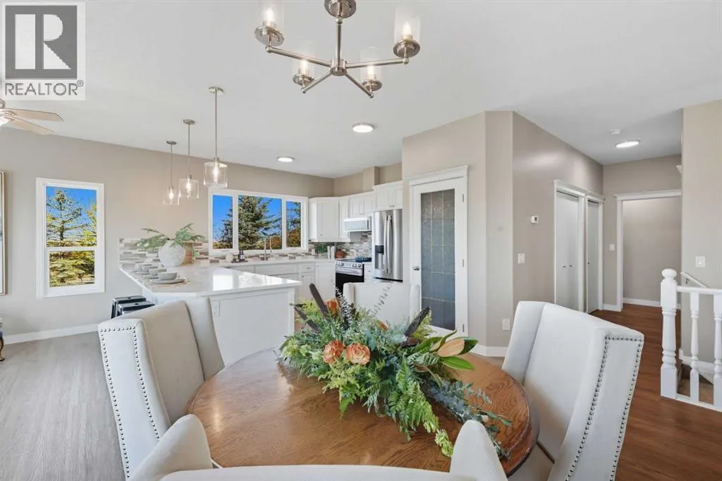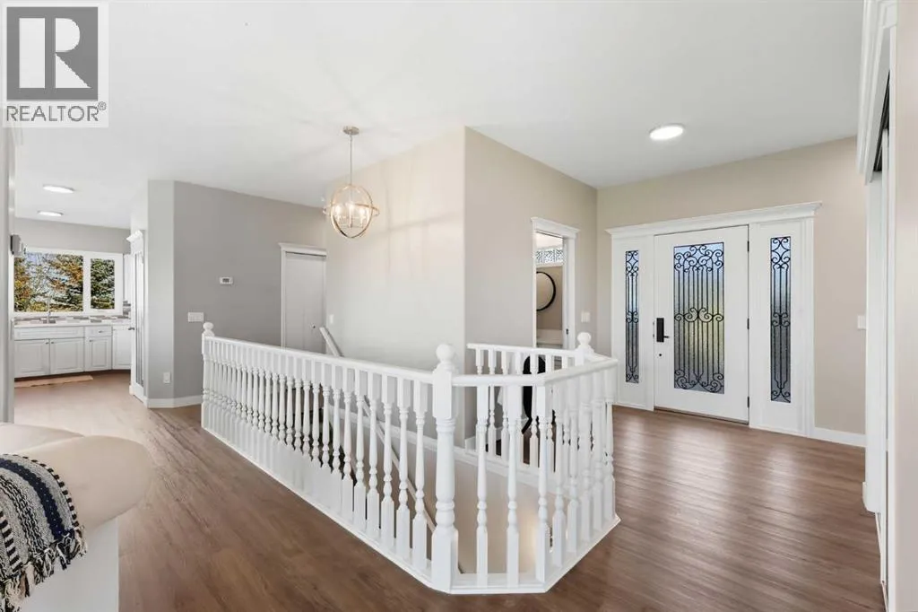 Welcome to this custom-built, 3500 sq ft developed area, walk-out bungalow perched on a scenic hilltop in Wheatland County, just 10 km north of Strathmore and only 25 minutes from Calgary International Airport. Set on 3 private, beautifully treed acres surrounded by agricultural fields and boasting unobstructed west-facing views of the Rocky Mountains, this property combines luxury living with peace and privacy. A tree-lined driveway lit with stately fixtures guides you to the home, which has been newly updated with modern paint, lighting, flooring, appliances, and decking, offering a fresh and stylish feel throughout. Designed for easy country living, the property is virtually maintenance free and finished with durable stucco and asphalt shingles. The 47â x 31â shop is fully insulated and heated, finished with a metal exterior and metal roof, making it ideal for storage, business, or hobby use in any season. Inside, the main floor showcases a large kitchen with peninsula seating, walk-in pantry, and a cozy breakfast nook with garden doors opening to the west-facing deck with glass railingsâperfect for evening sunsets. The dining area and main living room are filled with natural light from oversized windows, and anchored by a gas fireplace, creating a warm and welcoming atmosphere. The master suite includes two walk-in closets, a spa-inspired 4-piece ensuite with a standalone soaker tub and separate shower, and garden doors to the east, perfect for enjoying peaceful morning sun. A den, main floor laundry, and central air conditioning add comfort and practicality. The walk-out basement, complete with in-floor heating, features a large family room with a built-in entertainment area, three bedrooms, big windows, and access to an enclosed patioâa cozy, protected space to enjoy your surroundings year-round. Additional highlights: oversized attached garage with in-floor heat, built-in cabinetry, sink, and hot/cold water, as well as 3 frost-free hydrants located throughout the property. Surrounded by mature trees, wide-open fields, and breathtaking west-facing views. Just a short drive to amenities in Strathmore, and a quick commute to Calgary and YYC. This home offers the ideal combination of luxury, low-maintenance design, and unmatched rural charm. The land offers many possibilities too for future uses as the house and shop were developed on the east side of the property. Whether you're seeking a private family acreage or a turnkey retreat with space to work and play, this property delivers. A rare opportunity to own a thoughtfully designed, move-in-ready acreage in one of Wheatland Countyâs most desirable locations. Call your AWESOME Realtor today to book a viewing! (id:27476)