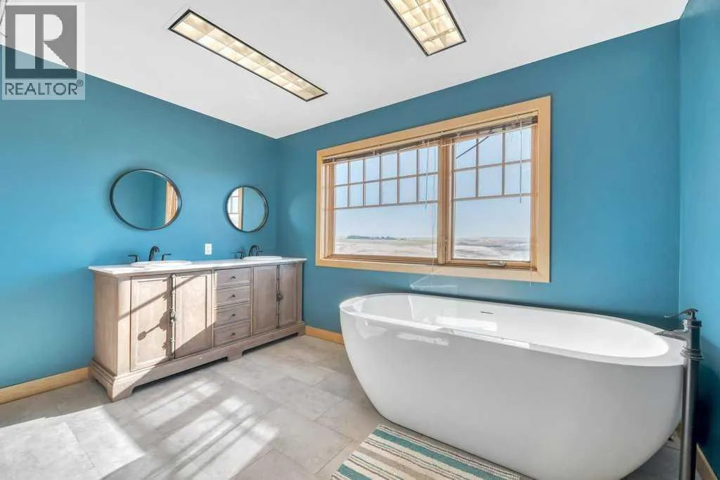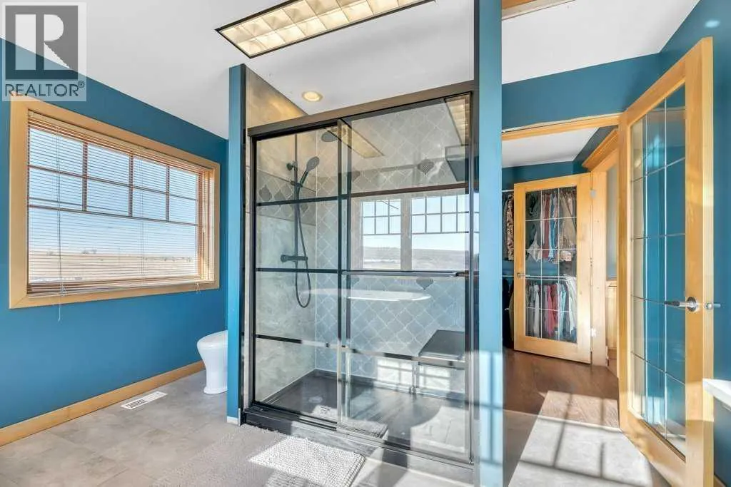 Dreaming of a Ranch in the prairies! Just beyond the city limits and under an hour from Calgary, this 148.5-acre ranch in Wheatland County offers a rare opportunity to secure a true prairie lifestyle with modern comfort and income potential. Perfectly positioned near Rockyford and only 15 minutes to Strathmore, this land is fenced and cross-fenced, currently supporting hay and pasture operations, and includes irrigation rights with the Western Irrigation District. Rolling hills, a coulee with a winding creek, and sweeping open-sky views create an inspiring backdrop for ranch life. Kids go to Wheatland Crossing, K-12 a Agricultural inspired school. A waterline has been installed for future hydrants or outbuildings, a 120â x 240â outdoor riding arena is ready for equestrian pursuits, and an annual gas lease pays $2,400âmaking this property as practical as it is picturesque. Perched overlooking the landscape, the home blends rural ranch warmth with modern upgrades. Originally built in 2006 and moved to the property in 2019, it was set on a brand-new 10â ICF walkout foundation with in-floor heating, and all mechanical systemsâincluding well, septic, and utilitiesâwere new at that time. Offering over 4,100 sq ft of living space with about 3,000 sq ft developed, this is a spacious, bright, and inviting home designed for both everyday life and gathering. 4 bedrooms and 2.5 bathrooms. A large covered deck frames the peaceful coulee views, while massive windows fill the interior with natural light and stunning prairie scenery. The kitchen is a showpiece for rural living and entertaining, newly built in 2019 with epoxy countertops, a gas range and pot-filler faucet, soft-close cabinets, upgraded hardware, and a brand-new dishwasher. A generous walk-in pantry easily accommodates bulk storage and a freezer. The mudroom is tailored for ranch life with barn-wood accents and room for boots, coats, and gear. The primary suite is a true retreat, featuring a walk-in closet, spa-inspi red ensuite with dual sinks, freestanding soaker tub, and large shower, plus a private east-facing balcony to greet each sunrise. The walkout lower level is partially finished with two bedrooms, a full bathroom, and has heated floors, offering plenty of space to expand. Water is plentiful with a 4 gpm well supported by a cistern, and the hot water tank is brand-new. Every detail reflects thoughtful planning for a working ranch, future growth, and comfortable living. Whether youâre looking to run cattle or horses, grow your hay base, or simply enjoy expansive prairie living with easy access to amenities, this property delivers an exceptional opportunity to build your legacy in Alberta ranch country. (id:27476)