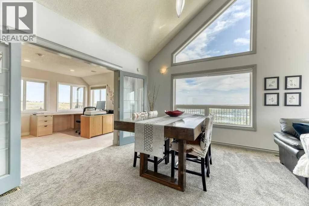 Donât miss the CHANCE OF A LIFETIME to own this stunning 16+ ACRE PROPERTY near Carseland that is truly the stuff that dreams are made of⦠Perched high above the BOW RIVER VALLEY youâll enjoy SWEEPING PANORAMIC VIEWS of the RIVER VALLEY, WYNDHAM-CARSELAND & JOHNSON ISLAND PROVINCIAL PARKS as well as The ROCKY MOUNTAINS from every level of this custom built home. Ideally located to allow for BOTH SUNRISE AND SUNSETS VIEWS that will take your breath away every day. MATURE TREES AND RAISED GARDEN BEDS surround the 1744 sq ft home and thereâs plenty of room left for parking or to possibly ADD A GARAGE OR SHOP. There is even a CHICKEN COOP if you want to embrace your inner farmer. Inside youâll be wowed by the SOARING VAULTED CEILINGS and WALL OF WINDOWS showcasing your spectacular views. A STONE FACED GAS FIREPLACE provideS both warmth and ambience. The living room is open to the spacious and well planned kitchen featuring GRANITE COUNTERS and STAINLESS STEEL APPLIANCES including a GAS STOVE. The spacious floor plan of this home accommodates LARGE SCALE ENTERTAINING yet has WARM AND INTIMATE AREAS FOR EVERYDAY FAMILY LIFE. 2 good sized bedrooms on this level are perfect as kids rooms or for guests. And you canât help but feel inspired as you work, study or create from home in the incredible CORNER OFFICE with a view, a 2nd gas fireplace and French doors. Imagine being able to step out onto the 10âx51â deck to enjoy your coffee break along with the splendour of your surroundings. On the top floor youâll find a PRIVATE AND LUXURIOUS OWNERâS RETREAT that encompasses the entire level. Itâs flooded with natural light and includes a 3 pc ensuite as well as a huge walk in closet/dressing room. The WALK OUT BASEMENT is bright, sunny and open with a great sized recreation area as well as a large office that could easily be turned into a bedroom by adding a closet. A huge full bath and ample storage complete this level. Step outside to find the COZY AND WELCOMING STAMPED CONCRETE COVERED PATIO that is protected from the elements on 3 sides extending your patio season and perfectly framing your RIVER VALLEY VIEW. This is the perfect place to relax and unwind with family and friends over a morning coffee or evening glass of wine. A COZY GAZEBO AREA WITH NATURAL GAS FIRE-PIT provides yet another oasis in the INCREDIBLE OUTDOOR LIVING this home provides. Down a small slope is the ultimate surprise - a COZY AND RUSTIC 1 BEDROOM CABIN with an adorable front porch, KNOTTY PINE SHIPLAP interior, a KITCHENETTE, small bathroom and COZY ELECTRIC FIREPLACE. Your kids, grandkids and guests alike will fall in love with this SECLUDED LITTLE HIDE OUT. As you spend your days in the SERENE AND TRANQUIL surroundings where you can fish, canoe, explore the trails on foot or by ATV not to mention come face to face with local wildlife it will be hard to believe you are still an easy commute to Calgary, Carseland and Strathmore. It really is a rare opportunity to have the BEST OF BOTH WORLDS. (id:27476)