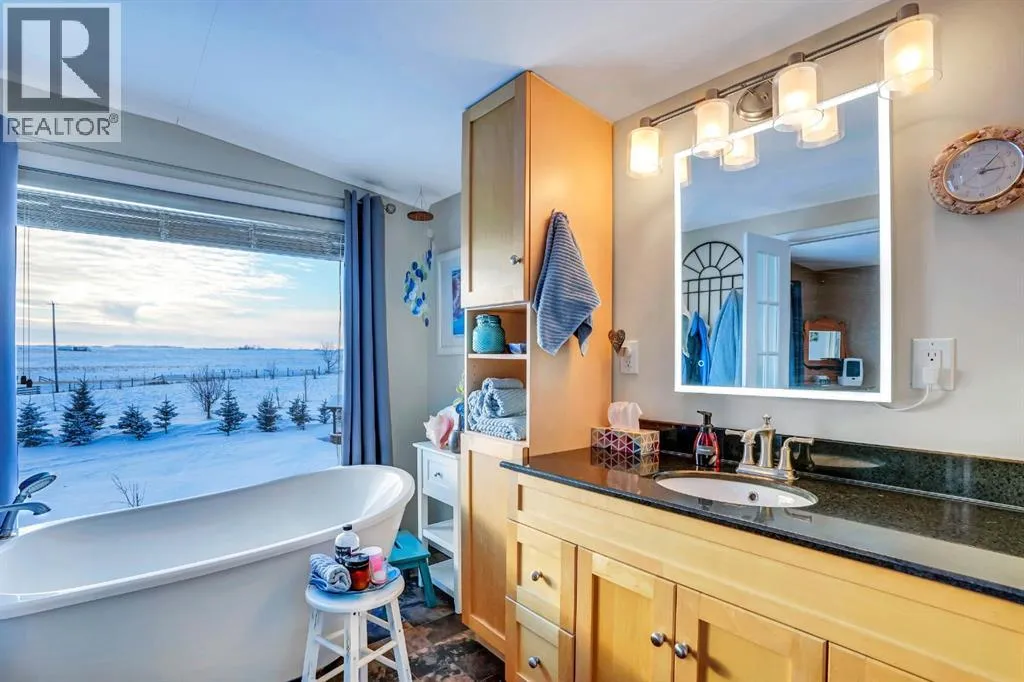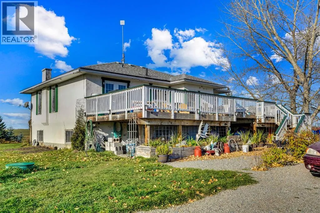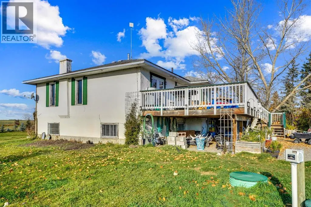 Welcome to your own slice of countryside serenityâjust minutes from the city. This 47-acre hobby farm offers endless possibilities with 45 acres of irrigated land, perfect for crops, grazing, or gardens. A charming bungalow with a walk-up basement anchors the property, blending rustic character with modern updates for comfortable everyday living.With 40 acres of lush pasture backing onto an irrigation canal and year-round underground irrigation around the home, the land is set up beautifully for farming, ranching, or simply enjoying green, open space. The remaining acres feature the home and well-planned outbuildings, including a barn with 4 box stalls and 6 additional open stalls, plus a 28x24 shop ideal for equipment, hobbies, or storage.Inside the home, youâll find a welcoming blend of comfort and potential. Recent updatesâ including modern appliances, refreshed cabinetry, and a bright, functional layoutâmake it perfectly livable from day one, while the original hardwood floors and spacious rooms offer a chance to bring your own style and ideas to life. Whether you envision restoring its classic charm or adding contemporary touches, this home provides a solid, updated foundation ready for your personal visionWhether you're dreaming of raising horses, starting a market garden, or creating a peaceful rural retreat, this property offers the perfect canvas. All of this, and you're only 25 minutes to Calgary and 12 minutes to Strathmore, with paved access right to your driveway.Come experience the space, the quiet, and the possibilities this unique acreage has to offer. (id:27476)