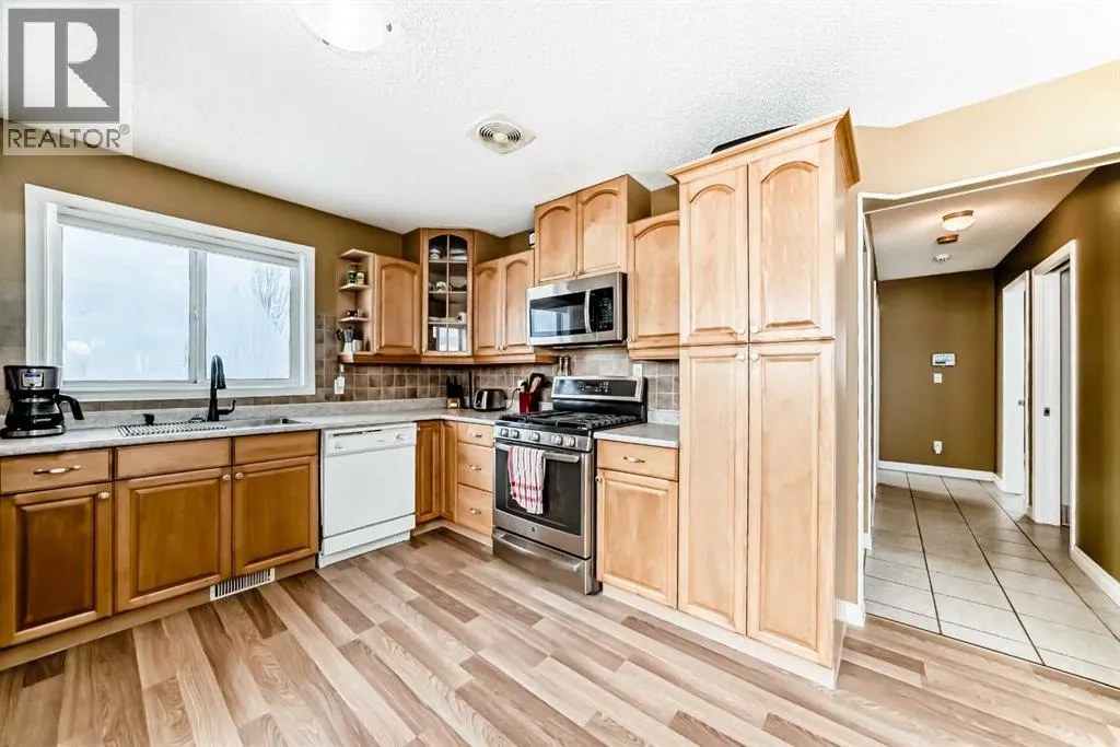 check out this 3 acre parcel with a 1224 sq.ft. bungalow and a heated 30 x 30 detached garage. This 4 bedroom 3 bath home is ready for a family has a large kitchen eating area with a sunken living room. There is a 16 x64 ft. storage shed. Amazing views with no close neighbors . With WID and adjacent land owner approval to supply water there is a dugout and irrigation system. Just 800 ft off of Highway 1 Just before Gleichen. (id:27476)