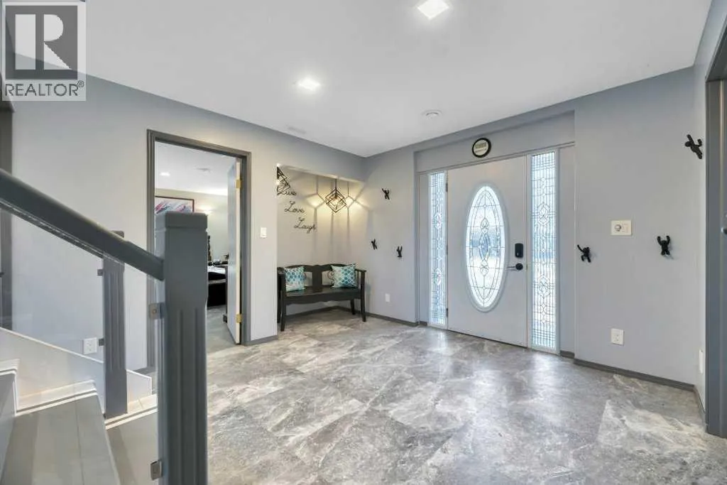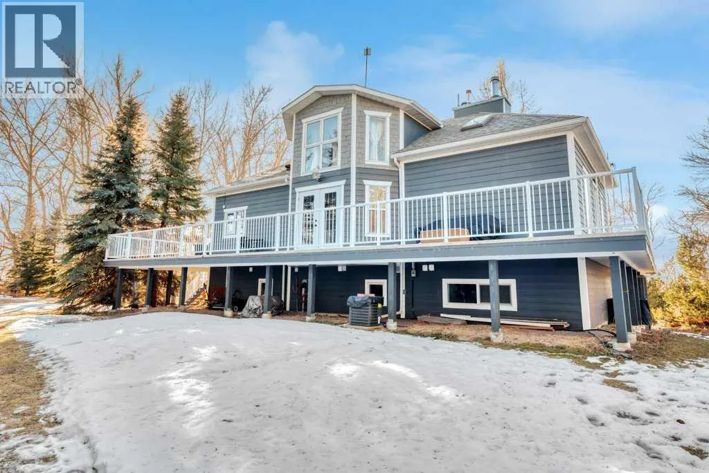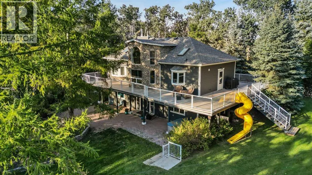 A rare property with one-of-a-kind home. This fully wooded acreage is where space, privacy, and everyday comfort come togetherâjust 20 minutes from Strathmore. Set on 1.8 acres, this property offers the perfect blend of country living with the convenience busy families need. This walk-out bungalow with a loft offers 2,997 sq ft of total developed living space and a layout designed to grow with your family. With five bedrooms, thereâs room for kids, guests, home offices, and hobbies. Vaulted ceilings, multiple skylights, and the open loft space flood the home with natural light and give it a bright, welcoming feel youâll notice the moment you walk in. A spiral staircase adds character and connects the spaces in a way that feels fun, functional, and far from cookie-cutter. Outside is where family memories are made. A deck that wraps the entire home creates endless options for outdoor livingâmorning coffee, family dinners, kids playing, or entertaining friends. A hot tub is included, offering a private place to unwind. The acreage is perfectly set up for both play and practicality. Equipped with air conditioning for year-round comfort, a detached double garage, a tack shed or playhouse, and a root cellar cold room for extra storage. The mature trees provide privacy while still leaving plenty of open space for kids to explore and enjoy the outdoors. If youâve been dreaming of more room to breathe, a safe place for your family to grow, and a home with real personalityâthis property delivers. (id:27476)