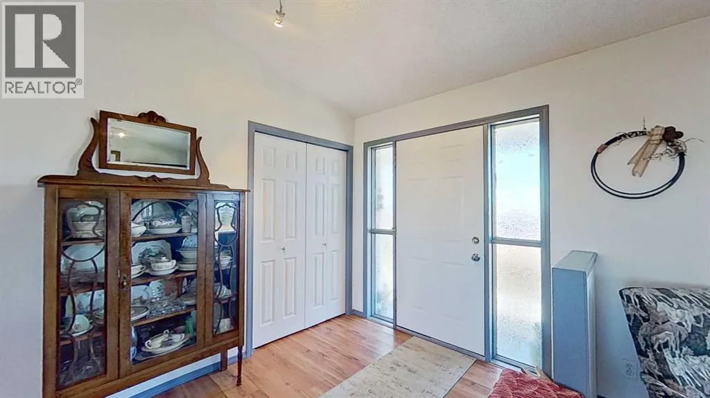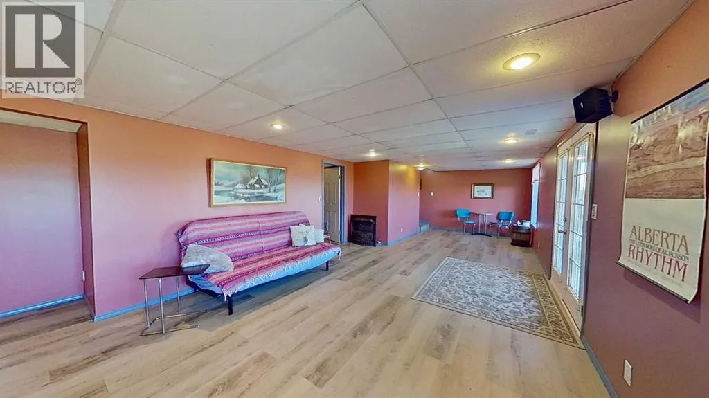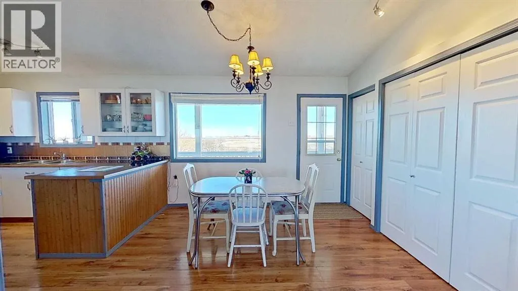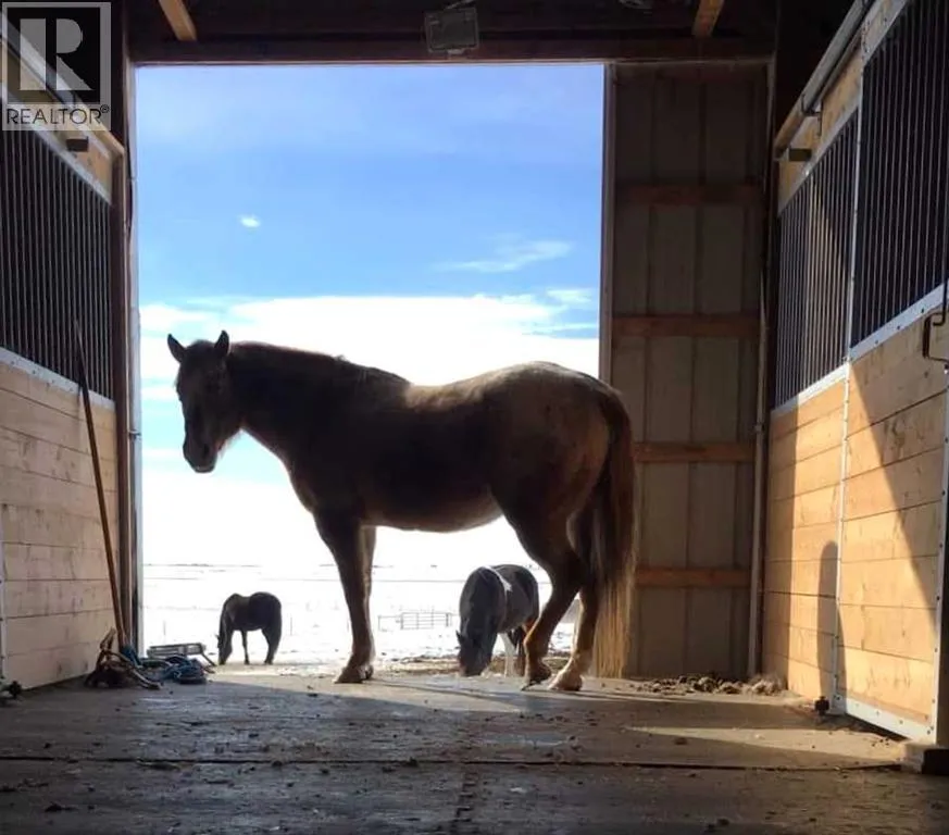 Prairie Panorama. Stunning sunrise and sunset views from a gentle rise on 50.92 acres bordered by an irrigation canal. The 1284 sq ft bright open concept bungalow offers 3 bedrooms and 2 bathrooms upstairs, including an ensuite with a two-person jetted tub. A gas-fireplace living room and a combined kitchen/dining area open to both front and back decks. The fully finished walk out basement adds a large family room, an additional bedroom, an office, a full bathroom, and a generous storage room. The landscaped yard features an irrigation system, mature fruit tress and berry bushes, terraced beds, and a water feature. Outbuildings include a 30 X 40 sq ft Quonset with water hydrant, 4 box stalls with mats, and a concrete-front shop area. The land is fenced and cross fenced with two automatic waterers, two corrals, a round pen, three horse shelters, and three storage sheds, one used as a tack shed beside the hitching post. Annual lease income of approximately $4075. An additional 5.67 WID acres are part of the fenced pasture. The pasture includes a fenced dugout suitable for stocking trout, and parts are on hand to repair the aerating windmill. A man- gate connects the front pasture to the installed culvert under the canal road, with a trenched hose leading to the yard for future irrigation expansion. Ride, hike, bike out along the canal. A natural gas Kohler generator automatically provides whole-property back up power. Subdivision potential exists. Location advantages: 10 minutes to Strathmore, 13 minutes to De Havilland field, 30 minutes to Calgary. (id:27476)