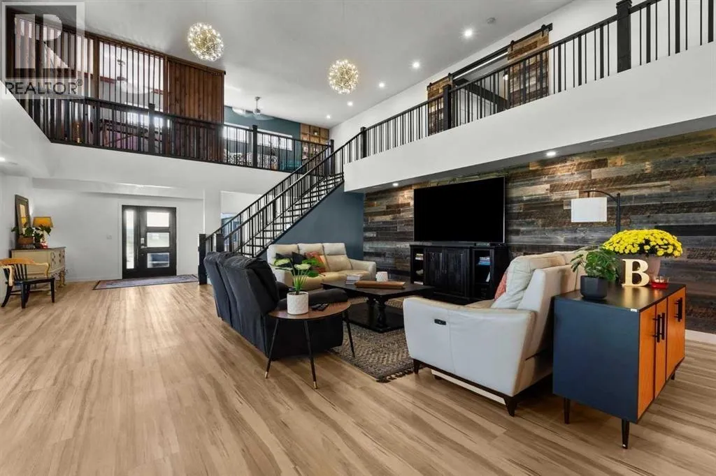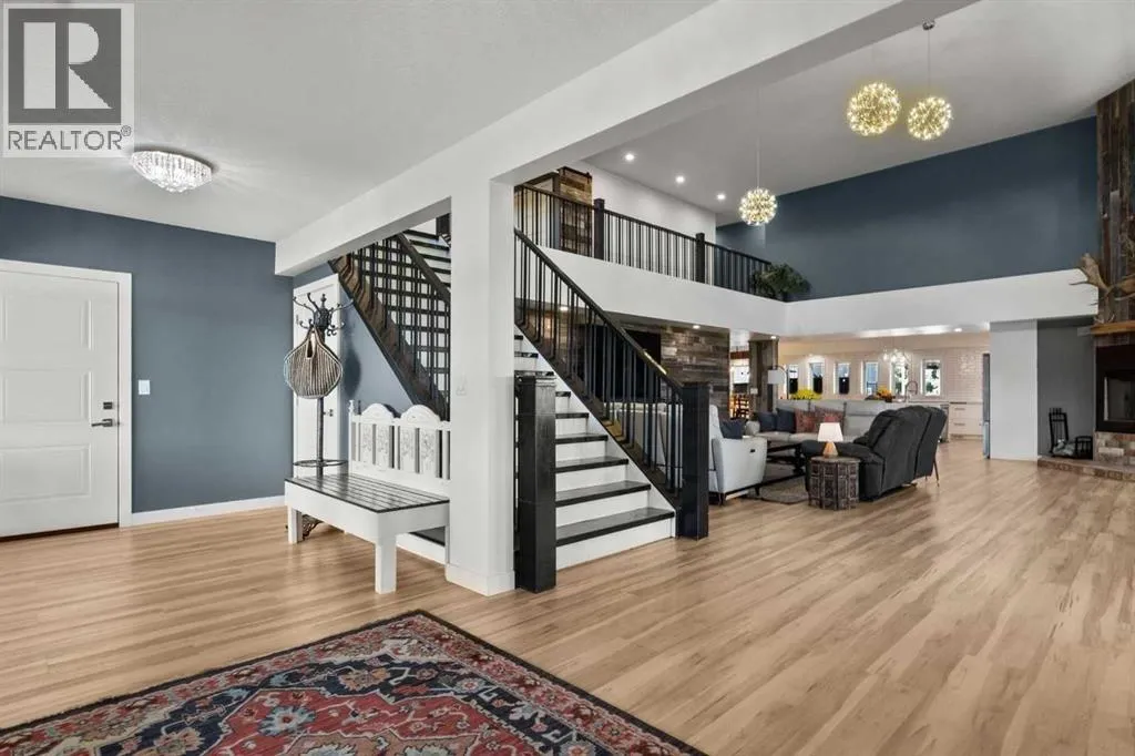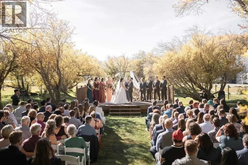YOUR DREAM ESTATE AWAITS!! Nestled on 13+- acres of picturesque Alberta landscape, this extraordinary property blends seamlessly offering luxury living & unparalleled commercial potential with Rural Business Zoning. Voted TOP 10 FOR OUTDOOR WEDDING VENUES IN AVENUE MAGAZINE IN 2025. The PRIMARY RESIDENCE offers over 4400 sq ft of luxury custom designed living and a SECOND RESIDENCE is a completely renovated 3 bed/2 bath mobile. Soaring ceilings showcase the expansive use of windows and the stunning open to above floor plan. A family centric Great Room boasts an open ended design to capture and maximize your preferred seating arrangements. Masterfully created is a showstopping kitchen and dining area with gleaming full height cabinetry overlaid with marbled quartz and a massive island that features a waterfall design beckoning the finest culinary experts and delivers several areas for preparation and display. For the connoisseur there is a separate coffee station equipped with a sink & dishwasher & full sized pop/water cooler. Bosch appliances include a gas stove, built in microwave and oven, water/ice refrigerator, hood fan and a 2nd dishwasher. A private media room, gym & two pc bath complete the main floor. Ascending to the upper floor your eyes scan and appreciate the vastness of the size of this home and stunning open to below views. Elegantly appointed the primary retreat features a spa ensuite bath with a fully tiled walk in shower, deep jetted tub, double sinks in the quartz topped vanity and a private water closet. The walk in closet includes it's own laundry mates. A massive outdoor upper deck offers panoramic views. Two oversized secondary bedrooms include private access to a five pc bath and separate laundry room. Completing the upper floor is a comfy bonus room and an office. The main house can double as a private retreat or an extension of the attached event venue. The second dwelling is ideal for guest accommodations, bed and breakfast, a manager' s quarters or rental income through a yearly lease or Airbnb opportunities. Combining luxury and privacy coupled with a premier location, this package delivers extraordinary business potential. Boasting a 76'10" x 25'8" WSP constructed wedding and event building with modern lighting, polished floors to dance the night away, and stylish decor, 3 washrooms, fully licensed bar area, COMMERCIAL KITCHEN, space that allows for events to accommodate 250 guests. Romantic and beautifully orchestrated outdoor areas provide natural spaces for intimate gatherings or larger events including corporate events, reunions, retreats and weddings. Whether you are an entrepreneur, investor, or are looking for your new forever home, this fabulous TURNKEY ESTATE & EVENT VENUE will meet your highest expectations & deliver a thriving business opportunity too. ADDITIONAL 74 ACRES FOR SALE ZONED RB ON PAVEMENT 5 MINUTES TO STRATHMORE. (id:27476)