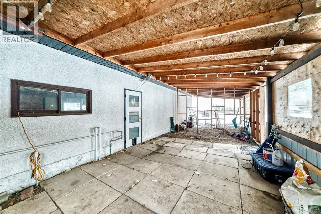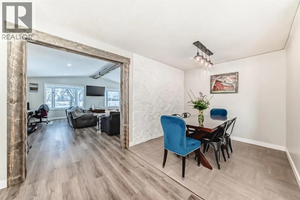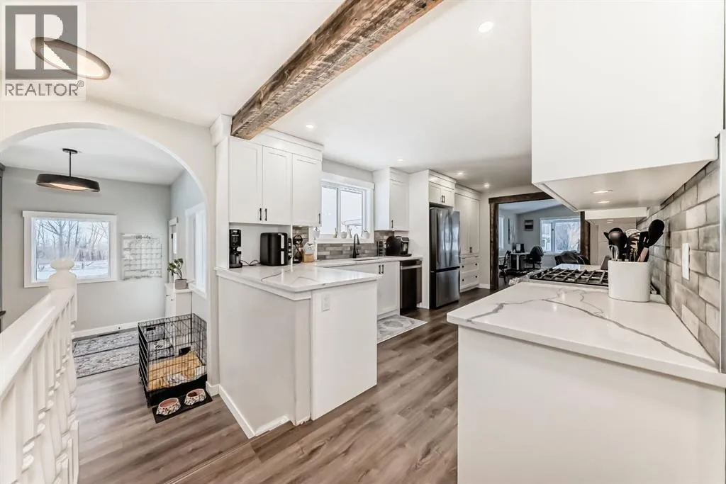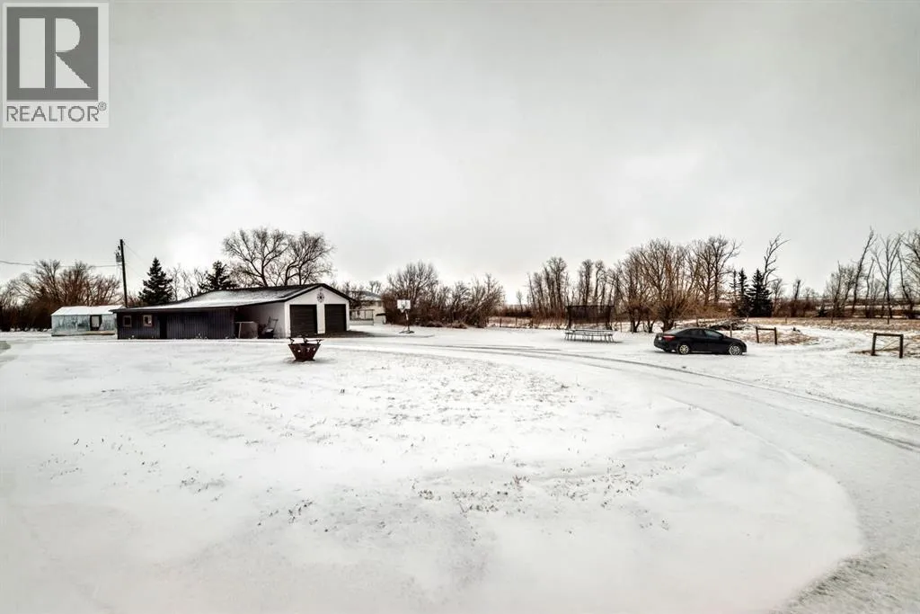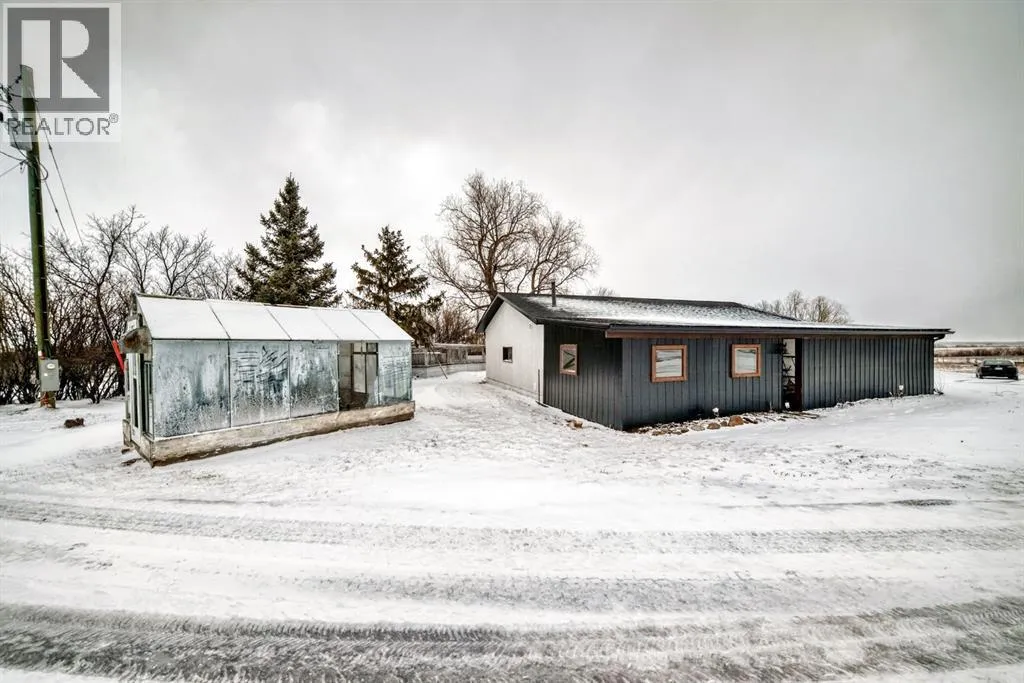 This is a HOUSE 7 MINUTES TO STRATHMORE, PRIVATE AND LOTS OF TREES!! This home has been completely renovated! Driving up you will notice the tasteful metal gates and paved driveway. The outside has new roof, hardy board, vinyl and metal siding as well as deck all within the last 3 to 4 years. The inside has all been redone in the last 3-4 years as well. Walking in you are welcomed by the most amazing entry way with built in coat and boot closets. There is a sink to scrub off before entering your beautiful country home. The kitchen is complete with tasteful cupboards and granite counters, gas stove, stainless appliances and a large dining area for the whole family. the living room has many windows with views and is spacious. There is main floor laundry, a fully updated 4 piece bath for the 2 junior bedrooms. The primary room was reconstructed and has a beautiful walk in shower with sink and toilet as well it will fit a king bed and has a door to your back yard currently a dog run. The lower is fully finished with another bedroom, large flex (family room), massive games room, another modern 4 piece bath, 2 storage rooms and more. This home also has hot water on demand, central air conditioning, a 30x40 shop waiting for your choice of over head door, the floor is newer concrete, insulation is done and most of the boarding. There is also a green house, a chicken coop and more. You will also enjoy your coffee on the east facing front deck. This home is not a mobile home it is a house. (id:27476)