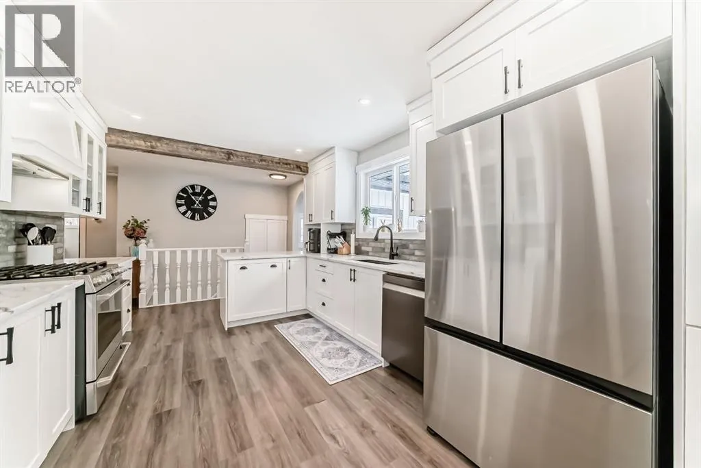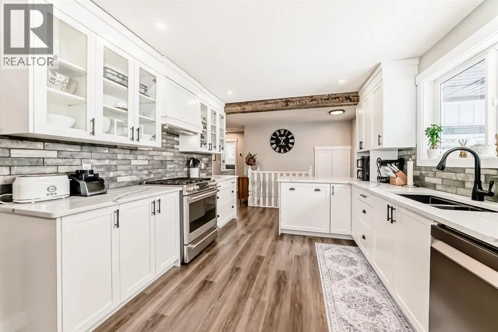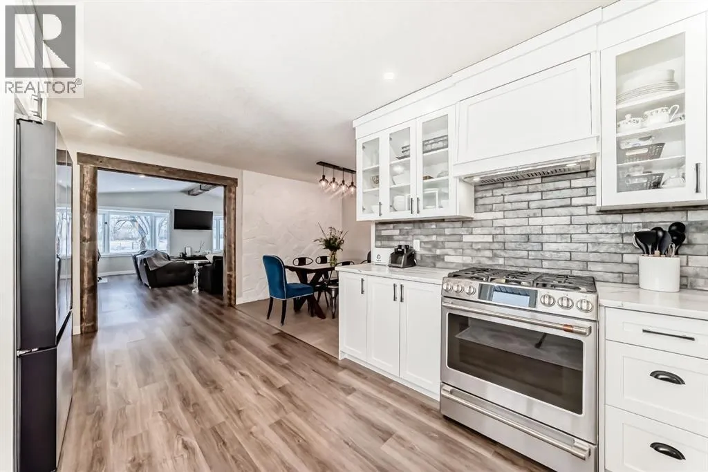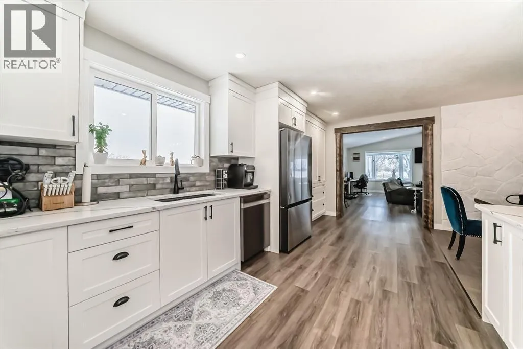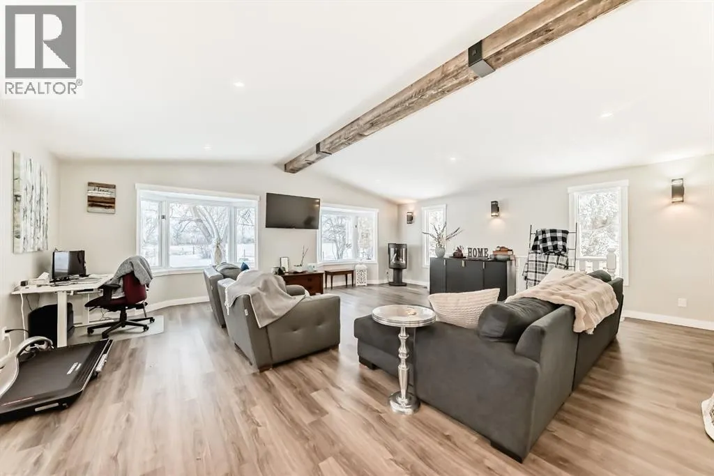 This is a HOUSE 7 MINUTES TO STRATHMORE, PRIVATE AND LOTS OF TREES!! This home has been completely renovated! Driving up you will notice the tasteful metal gates and paved driveway. The outside has new roof, hardy board, vinyl and metal siding as well as deck all within the last 3 to 4 years. The inside has all been redone in the last 3-4 years as well. Walking in you are welcomed by the most amazing entry way with built in coat and boot closets. There is a sink to scrub off before entering your beautiful country home. The kitchen is complete with tasteful cupboards and granite counters, gas stove, stainless appliances and a large dining area for the whole family. the living room has many windows with views and is spacious. There is main floor laundry, a fully updated 4 piece bath for the 2 junior bedrooms. The primary room was reconstructed and has a beautiful walk in shower with sink and toilet as well it will fit a king bed and has a door to your back yard currently a dog run. The lower is fully finished with another bedroom, large flex (family room), massive games room, another modern 4 piece bath, 2 storage rooms and more. This home also has hot water on demand, central air conditioning, a 30x40 shop waiting for your choice of over head door, the floor is newer concrete, insulation is done and most of the boarding. There is also a green house, a chicken coop and more. You will also enjoy your coffee on the east facing front deck. This home is not a mobile home it is a house. (id:27476)