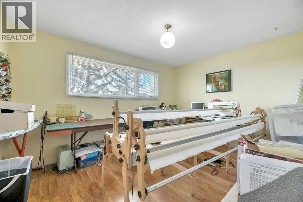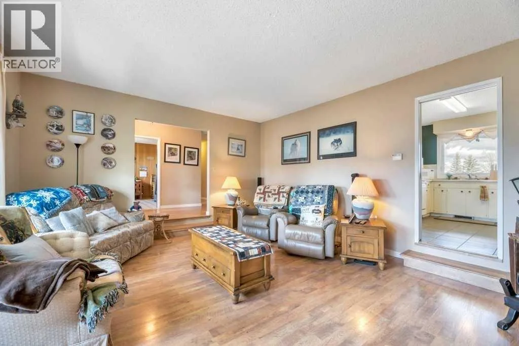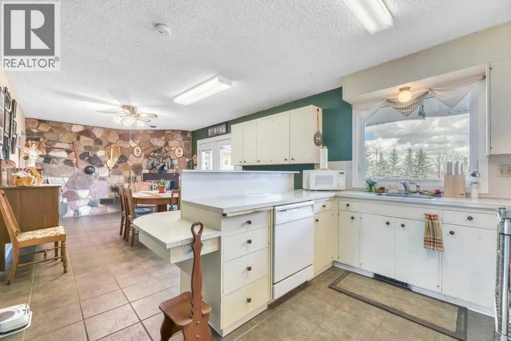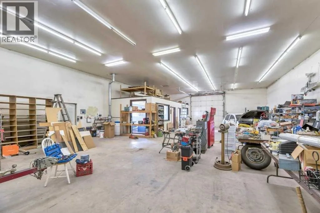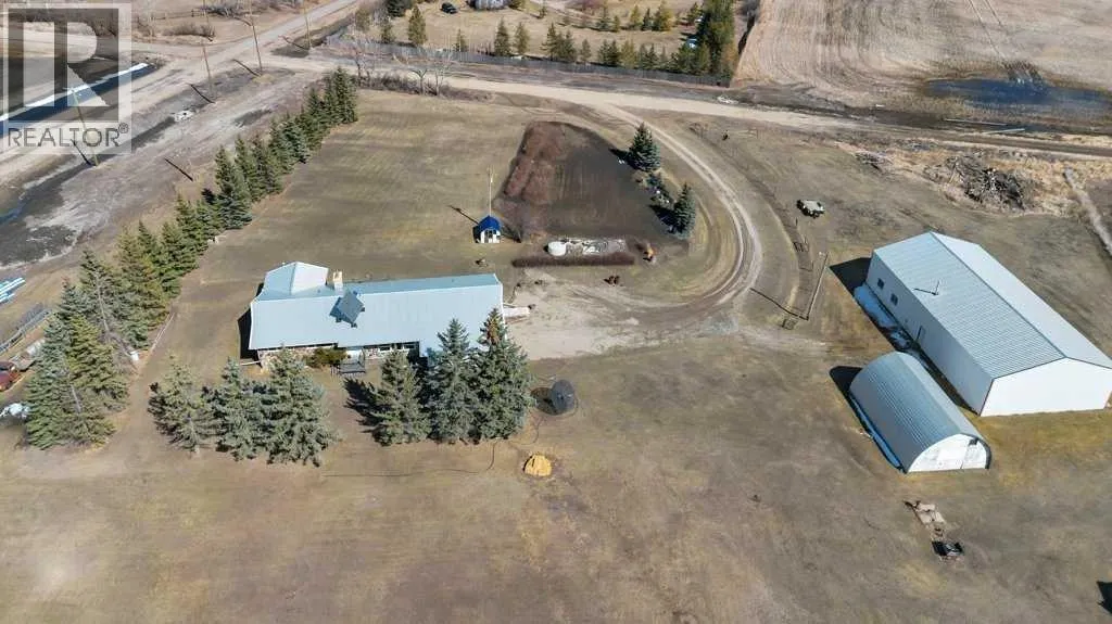 Welcome to your country retreatâwhere space, function, and opportunity come together on 4.83 beautifully treed acres. This sprawling 2,125 sq ft bungalow, originally built in 1970, offers the kind of layout and solid construction that acreage buyers truly appreciate. Step inside and youâll immediately notice the warmth and character of the sunken living room, perfectly positioned off the kitchen and dining areas, and framed by stunning floor-to-ceiling windows that flood the space with natural light. The main floor is thoughtfully designed for everyday living, featuring 4 generous bedrooms plus space for dedicated office, (or spare room, storage, gym), 2.5 bathrooms, and the convenience of main floor laundry. Updated vinyl windows and a durable metal roof add peace of mind for years to come. Downstairs, the possibilities are endlessâan expansive, unfinished basement (truly massiveâthink bowling alley size!) includes a separate walk-up entrance, making it ideal for future development, a home-based business, or even multi-generational living. Step outside through double doors off the dining area onto your east-facing deck, the perfect place to enjoy your morning coffee while overlooking your private yard filled with mature trees, established landscaping, and wide-open skies. For those needing serious workspace or storage, this property absolutely delivers: A 40â x 80â x 14â heated shop with in-slab heating and two office spacesâa true showstopper for entrepreneurs, trades, or hobbyists A 35â x 23â6â Quonset (built in 1983) with concrete floor, water hydrant, and service pit, ideal for cold storage or equipment The yard is set up for both productivity and enjoyment, featuring a large garden, established raspberry bushes, and a small greenhouse. The property is fenced on three sides (with completion planned for summer), offering added security and flexibility for animals or future plans. The West Property Line borders the CGC Wallboard Plant - they have added privacy e nhancements along the south & west property lines including newly planted 6â trees, and a sound berm. This is more than just an acreageâitâs a lifestyle property with the space, infrastructure, and potential to make your vision a reality. (id:27476)