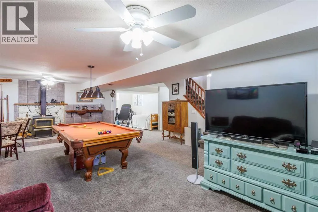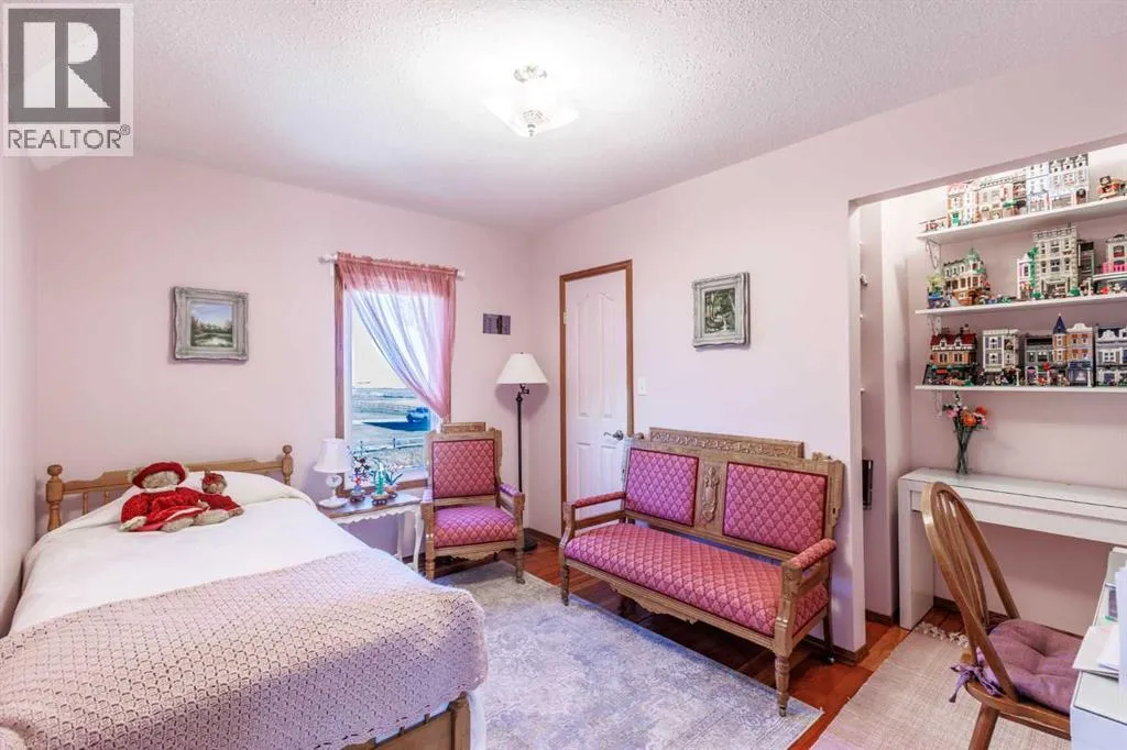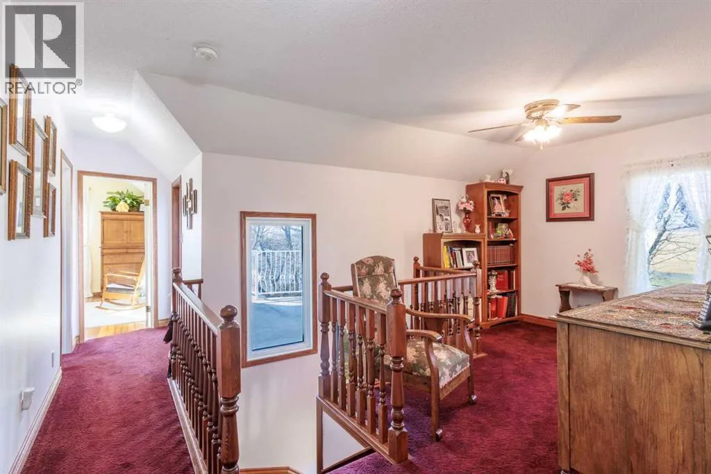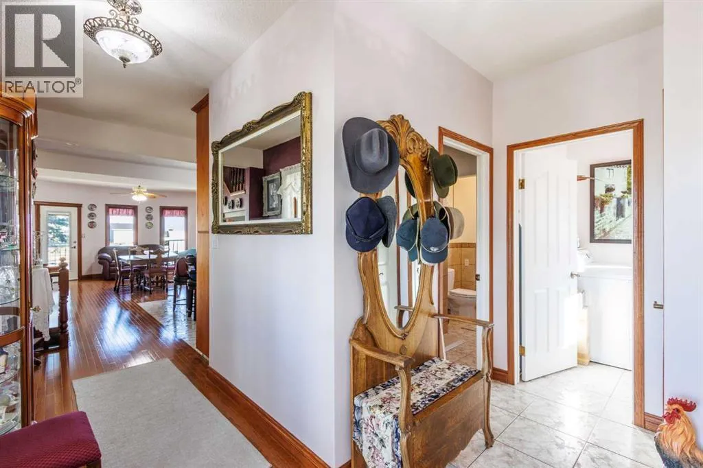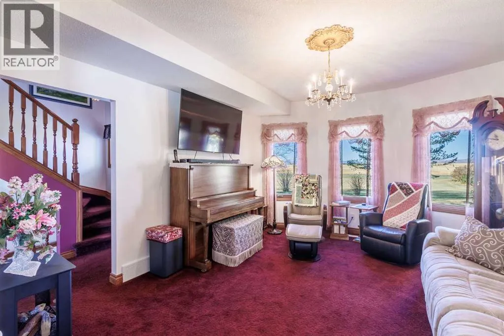 Originally built in 1917, this iconic home, affectionately known as âThe Big House,â was moved to its current location in 1995, where it was completely redone from the studs out. Electrical, plumbing, insulation, and, most importantly, a new foundation were all added at that time, giving the home the best of both worlds; modern reliability and historic charm. Over the years, the home has continued to evolve, with updated windows, doors, roof, and appliances providing comfort and peace of mind for years to come. Upstairs, what was once a five-bedroom layout has been reimagined for todayâs lifestyle, featuring two bedrooms, a cozy family room, a full four-piece bathroom, and a primary suite with a separate walk-in closet and dressing area. Step out onto the upstairs balcony and take in the breathtaking view as the sun sets over the Rocky Mountains. The main floor is warm and welcoming, offering hardwood floors that lead you through to the kitchen and dining room, a bright kitchen with island seating, a dedicated dining area, and a comfortable living room filled with natural light. Step through the dining room doors to your private backyard oasisâperfect for summer evenings and quiet mornings. Downstairs, youâll find the ideal space for entertaining with a large games room anchored by a wood-burning fireplace, plus one additional bedroom, a flex room that could easily be converted back into a bedroom, and plenty of storage. Outside, the property offers 4.99 acres of private, uninterrupted living with mountain views, cross-fencing for horses or livestock, and gated access for ultimate privacy. The indoor pool room, finished in cedar, provides the perfect place to stay active year-round or to entertain the kids and grandkids. A charming kidsâ cabin tucked away on the property has been a cherished retreat during family gatheringsâan inviting spot for adventure, imagination, and memories that will last a lifetime. For hobbyists or collectors, the property offers unmatched workspace with an oversized triple garage, a 2,724-square-foot shop, and a 3,303-square-foot heated shopâperfect for projects, storage, or a home-based business. This is more than a home. It is a legacy property that has turned heads for generations and is now ready for its next chapter. (id:27476)