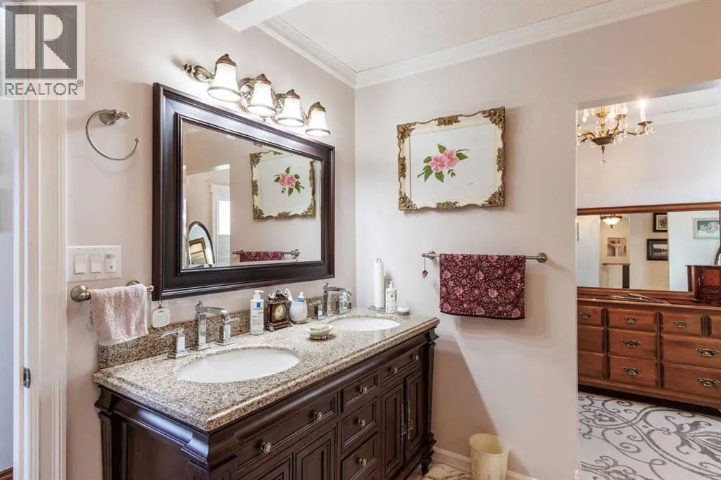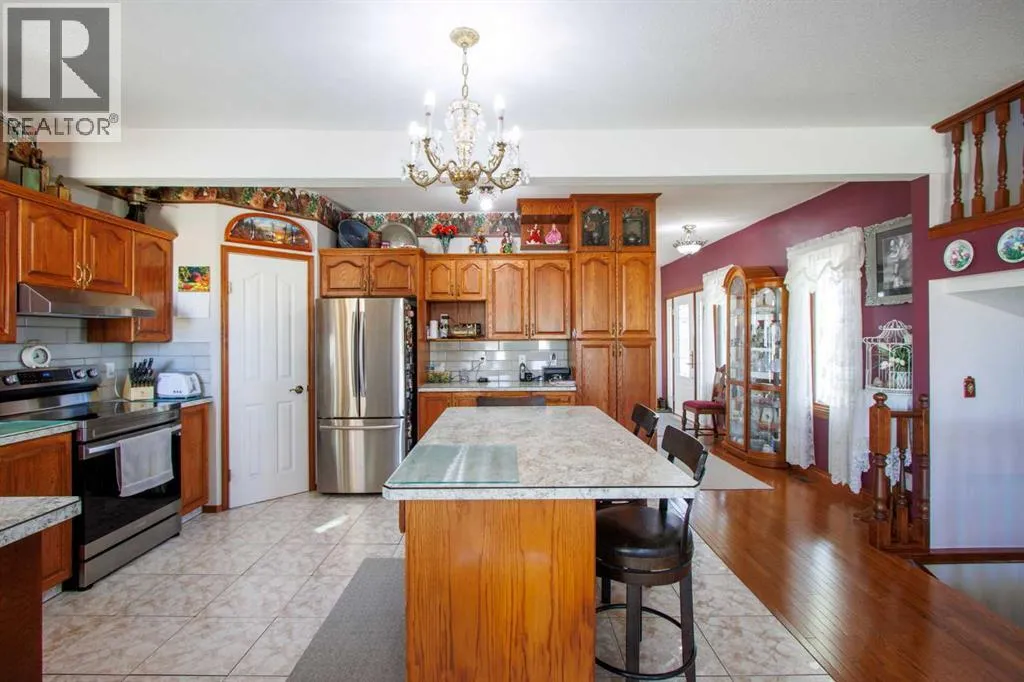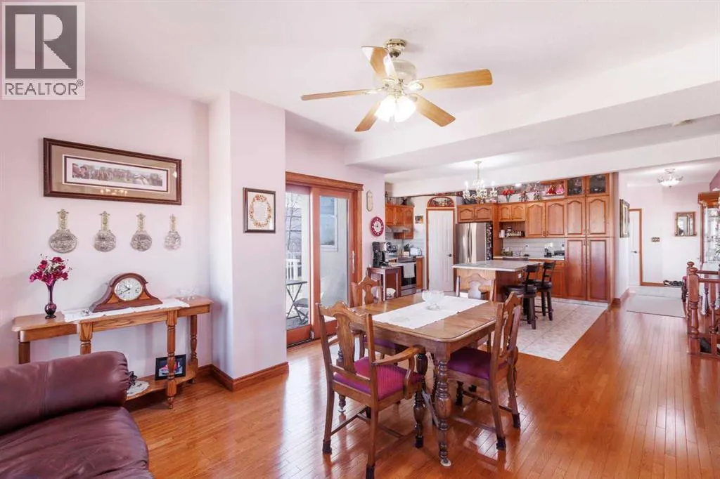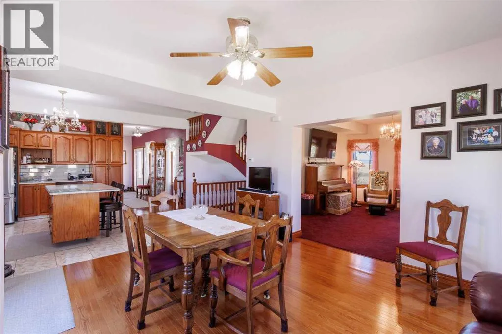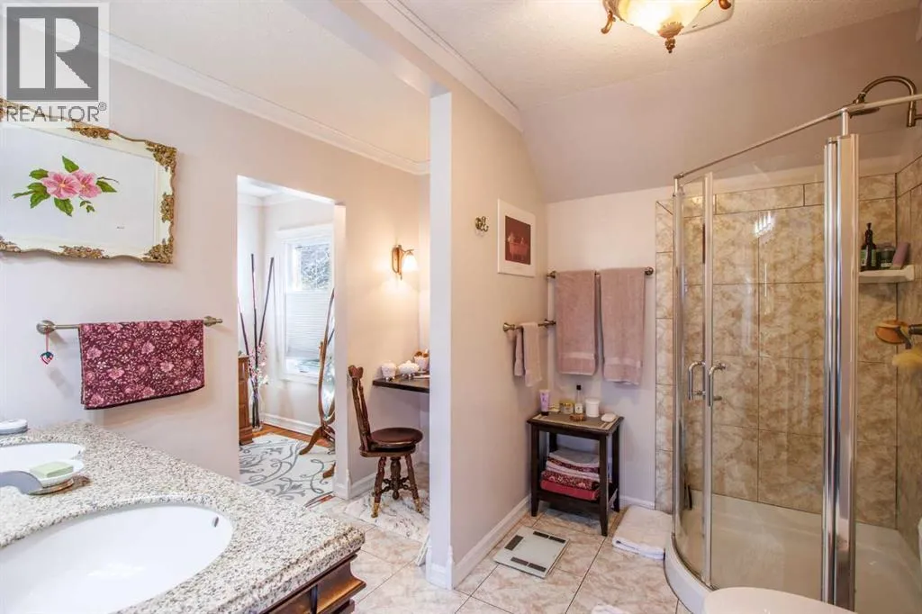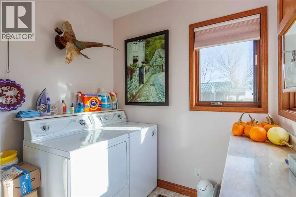 Originally built in 1917, this iconic home, affectionately known as âThe Big House,â was moved to its current location in 1995, where it was completely redone from the studs out. Electrical, plumbing, insulation, and, most importantly, a new foundation were all added at that time, giving the home the best of both worlds; modern reliability and historic charm. Over the years, the home has continued to evolve, with updated windows, doors, roof, and appliances providing comfort and peace of mind for years to come. Upstairs, what was once a five-bedroom layout has been reimagined for todayâs lifestyle, featuring two bedrooms, a cozy family room, a full four-piece bathroom, and a primary suite with a separate walk-in closet and dressing area. Step out onto the upstairs balcony and take in the breathtaking view as the sun sets over the Rocky Mountains. The main floor is warm and welcoming, offering hardwood floors that lead you through to the kitchen and dining room, a bright kitchen with island seating, a dedicated dining area, and a comfortable living room filled with natural light. Step through the dining room doors to your private backyard oasisâperfect for summer evenings and quiet mornings. Downstairs, youâll find the ideal space for entertaining with a large games room anchored by a wood-burning fireplace, plus one additional bedroom, a flex room that could easily be converted back into a bedroom, and plenty of storage. Outside, the property offers 4.99 acres of private, uninterrupted living with mountain views, cross-fencing for horses or livestock, and gated access for ultimate privacy. The indoor pool room, finished in cedar, provides the perfect place to stay active year-round or to entertain the kids and grandkids. A charming kidsâ cabin tucked away on the property has been a cherished retreat during family gatheringsâan inviting spot for adventure, imagination, and memories that will last a lifetime. For hobbyists or collectors, the property offers unmatched workspace with an oversized triple garage, a 2,724-square-foot shop, and a 3,303-square-foot heated shopâperfect for projects, storage, or a home-based business. This is more than a home. It is a legacy property that has turned heads for generations and is now ready for its next chapter. (id:27476)
