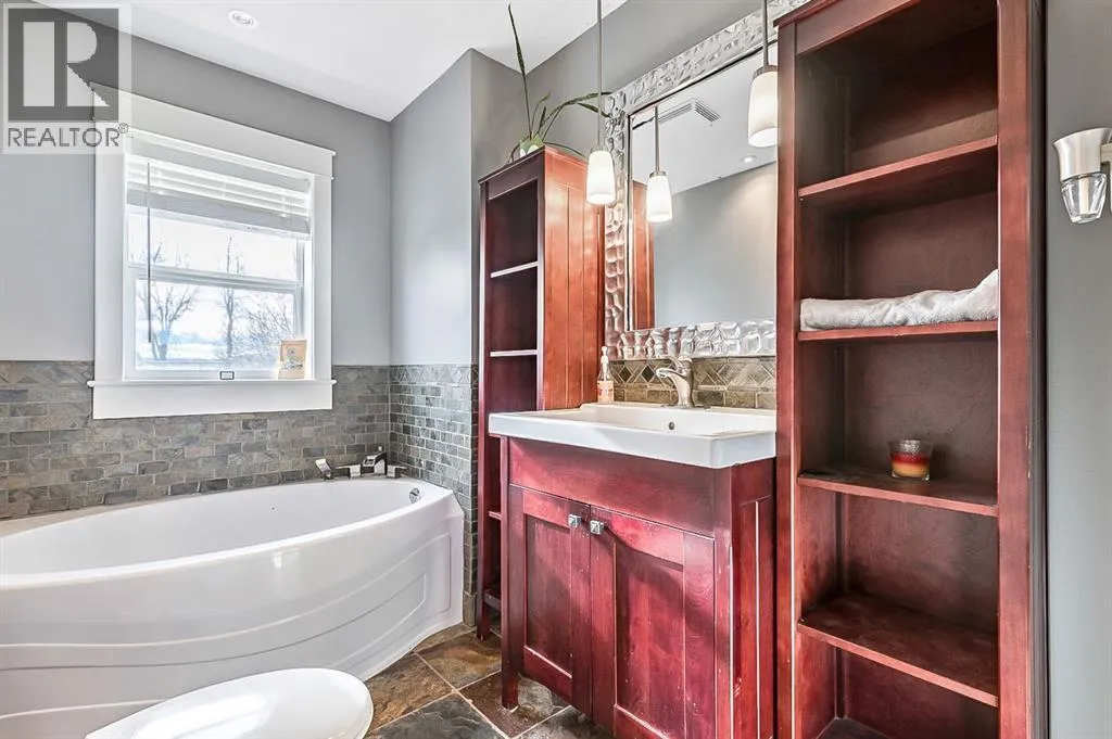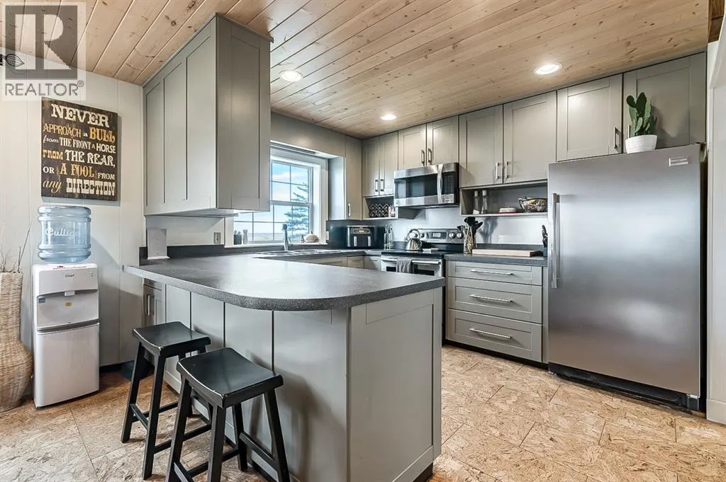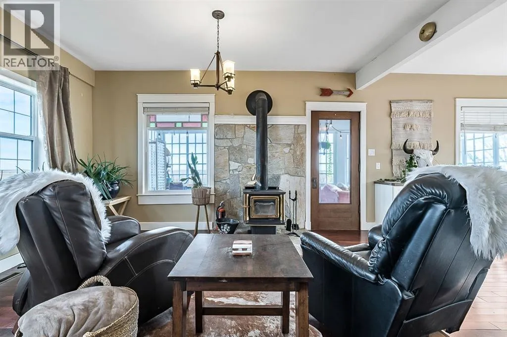 Your WAIT is over! Welcome to your dream acreage! This incredible property offers TWO beautiful homes and several outbuildings on just under 10 ACRES of peaceful, private, and STUNNING land, with the convenience of town less than 10 minutes away. Both homes have seen major upgrades, including rewiring, plumbing, new windows, newer subfloors, flooring, and ceilings, as well as a newer well and septic. All the big-ticket renovations have been thoughtfully completed while preserving many charming original features that add warmth and character. Each home boasts custom-built cabinetry, quality craftsmanship, and careful attention to detail throughout. The main home features 4 spacious bedrooms and 3 bathrooms, including a stunning primary suite with a luxurious ensuite and a walk-in closet that feels like a personal retreat. Ideal for family living, it offers bright living spaces, a functional kitchen, and plenty of room to entertain. The second home is a charming, modern residence beautifully renovated with gorgeous built-in cabinetry, updated finishes, newer floors and ceilings, and high-quality upgrades throughout. Perfect for extended family, guests, or rental income, it blends modern convenience with original character, creating a welcoming and versatile space. Outside, the property truly shines. A heated shop with a man cave and bar is ideal for hobbies or gatherings. The barn is fully usable with multiple stalls, ample room for animals, and waterers already installed, making it perfect for horses, livestock, or hobby farming. There are three additional outbuildings, including one that was the original gas station from Nanton, a unique and historic feature adding charm and character. Thereâs plenty of space to roam, play, or expand your projects. Surrounded by open views, mature trees, and the tranquility of rural life, this acreage delivers space, comfort, and opportunity all in one. Whether youâre seeking a multi-family setup or a peaceful escape with room to br eathe, this property checks all the boxes. You do not want to miss this! (id:27476)