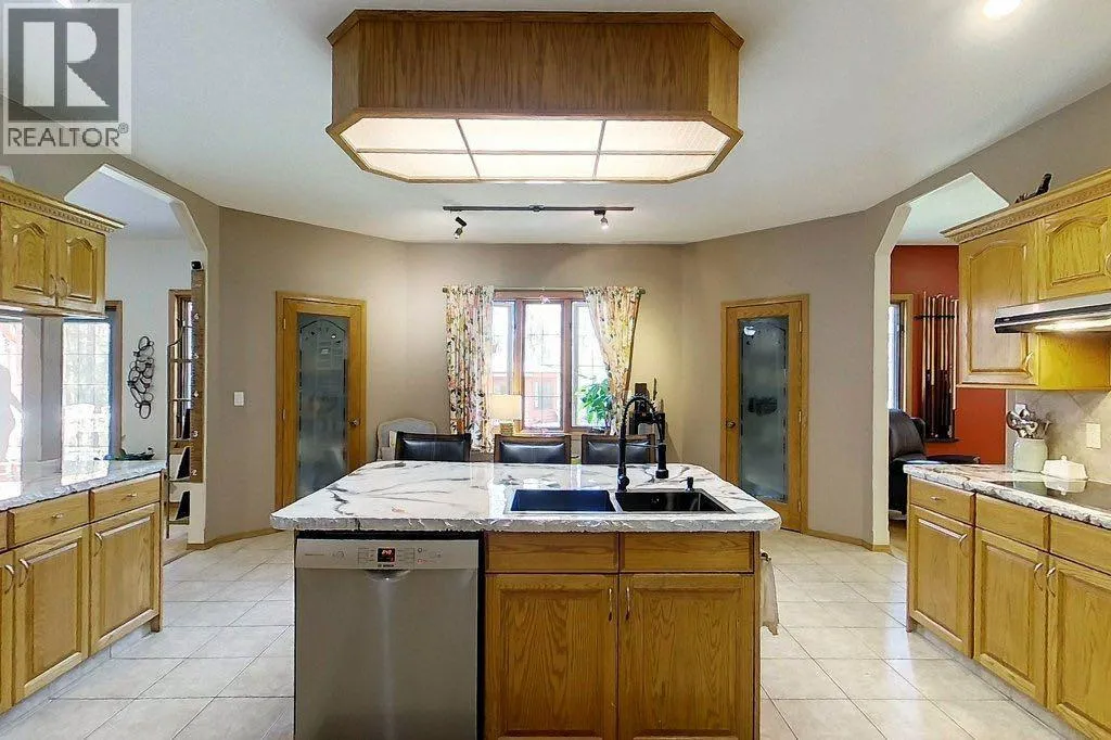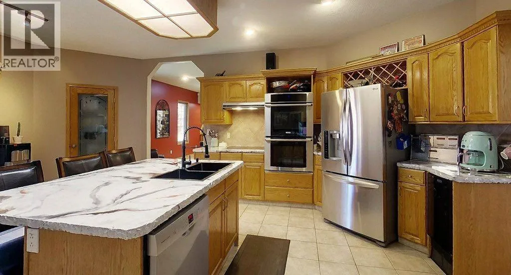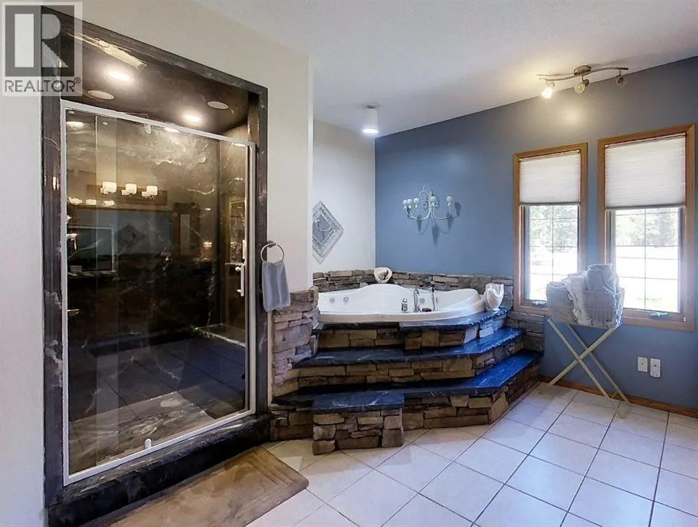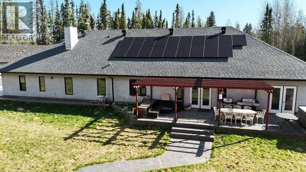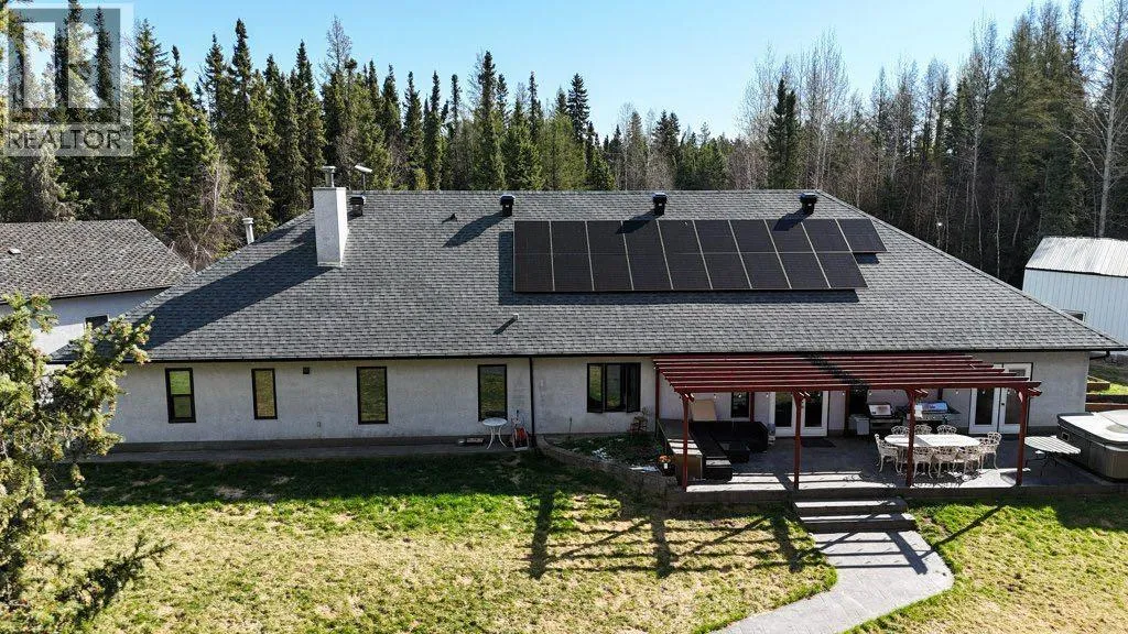 Welcome to this executive, custom built home sitting on almost 5 acres just outside of town. Entirely surrounded by trees providing plenty of privacy, this property could be your new sanctuary. Including all features you could possibly need: An oversized detached garage(30x40), a shop (25x32)with a wood fireplace, gazebo, concrete poured deck and concrete stamped pathway to your fire pit~ plus your very own putting green in the backyard. This 5 bedroom, 3 bathroom home is equipped with brand new solar panel system, in floor heating, and stainless steel appliances. Plenty of cabinetry in the kitchen with in sink island, new concrete counter tops with epoxy finish and 2 pantries! 4,000 sq ft. of living space ready for you to enjoy. We love the fireplace in the primary suite, and the massive ensuite where you can enjoy the walk-in shower with epoxy finish, plus 2 walk in closets, and corner jetted bathtub. Bask on summer nights on the back deck listening to the birds, enjoy the kitchen that provides tons of space to host your friends and family, or escape a winter evening relaxing by the fire in the living room. We welcome you to your new home, it's ready for you to make great memories in. (id:27476)