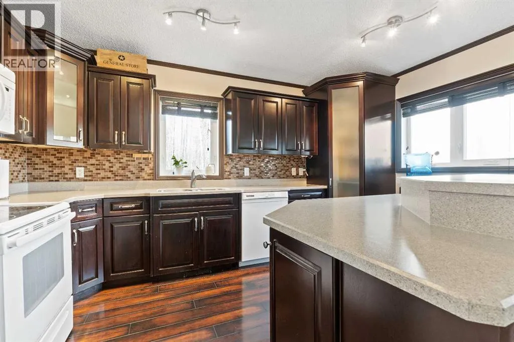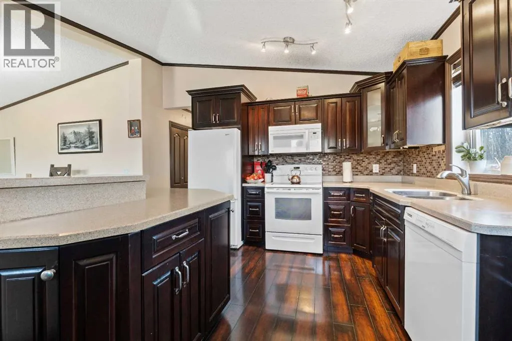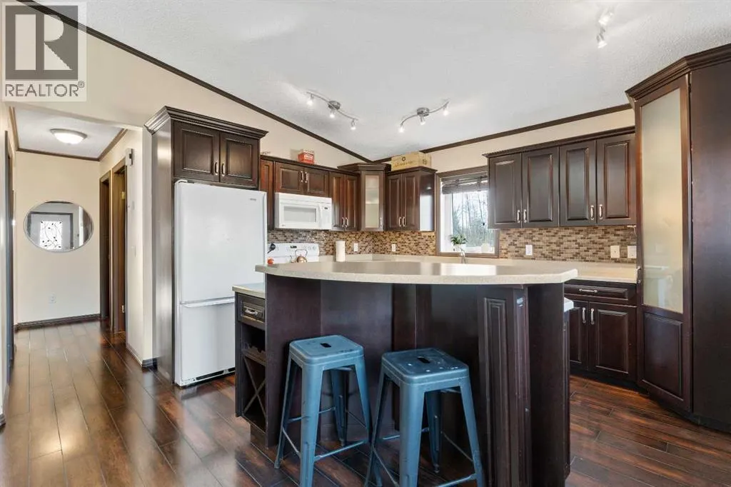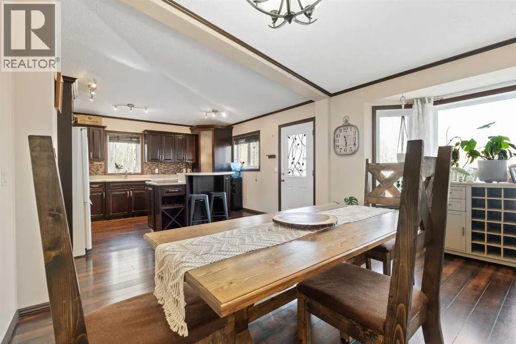 Welcome to this charming 4-bedroom home set on 5.5 private acres, offering space, comfort, and opportunity. This 1,037 sq. ft. home has a full walk-out basement, is full of character.The main floor features a bright updated front kitchen with an island and a cozy living room. Two full baths on the main floor. The primary bedroom opens to a large 28' x 14' deck to watch those sunsets and enjoy the privacy of country living. There is a main-floor laundry plus room to add a second on the lower level. Downstairs, the spacious family room provides plenty of room to relax or entertain, and with a walk-out basement and in-floor heat, thereâs excellent potential to create a basement suite or handy guest space.Enjoy forced-air heating on the main level for year-round comfort. Outside, youâll find everything you need, including an above-ground swimming pool, two sheds, a greenhouse, and a large tarp shed for storage or projects. Located east of Whitecourt, a short drive to your own acreage living. (id:27476)