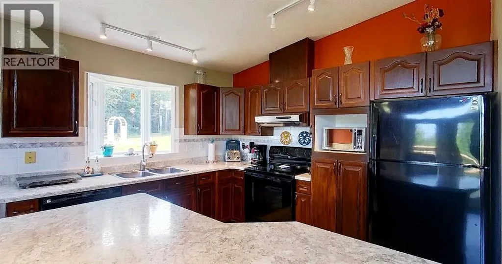 Welcome to your country dream! This spacious 5-bedroom, 3-bathroom home sits on 35.09 fully fenced and cross-fenced acres, ideal for horses, livestock, or country living. The property includes a powered barn, round pen, automatic waterers, and ample pastureâready for your animals from day one.Inside, youâll find a large kitchen and dining area, perfect for hosting family gatherings or entertaining guests. The open-concept design flows seamlessly into the living space, and a walk-out deck extends your entertaining area into the outdoorsâideal for BBQs, stargazing, or relaxing in the fresh country air.Enjoy peaceful rural living with all the modern comforts, just minutes from town conveniences. Whether you're starting a hobby farm, expanding your equestrian lifestyle, or simply looking for space and serenity, this property checks all the boxes!revenue from peyto is $260.40/yr (id:27476)