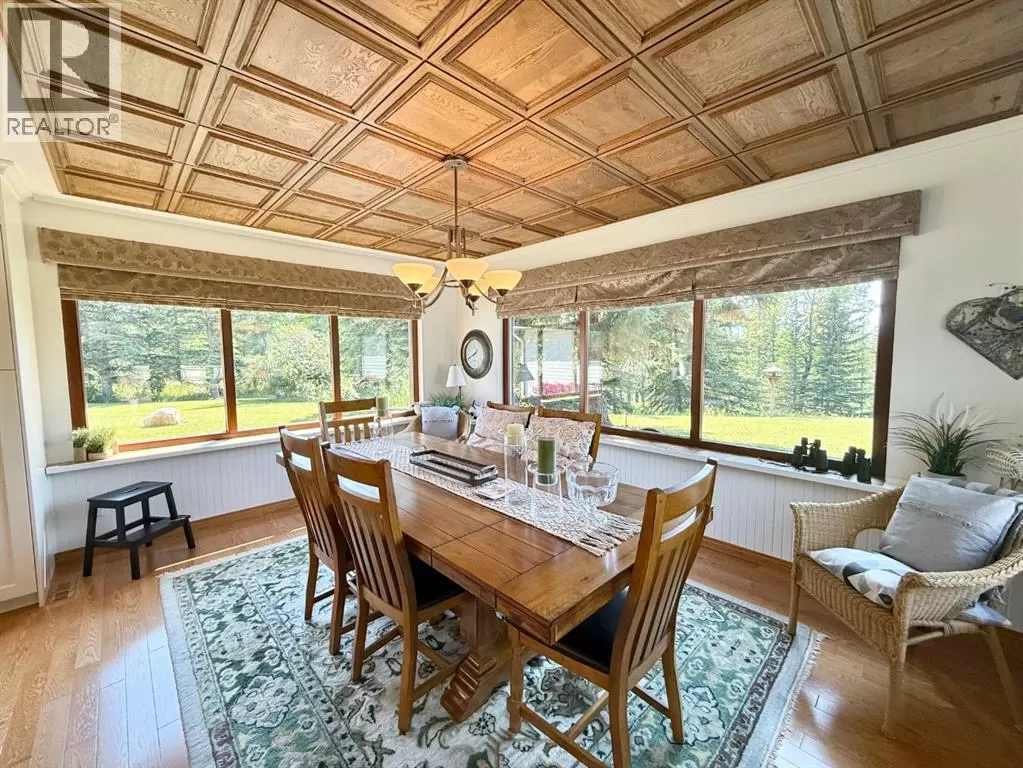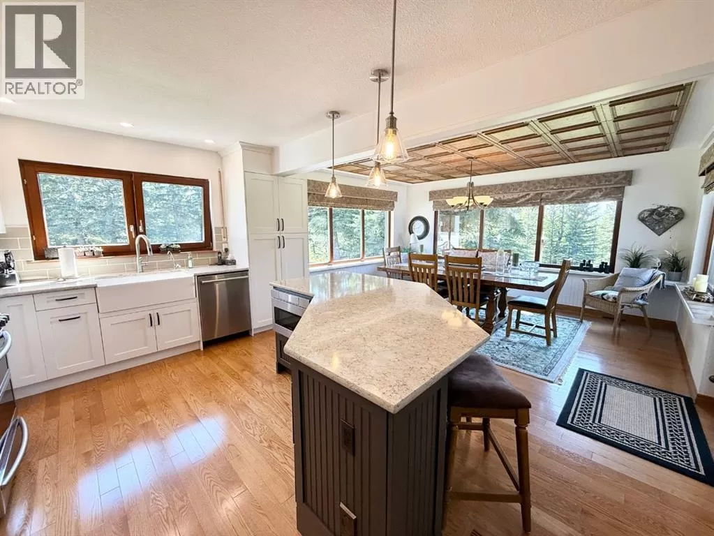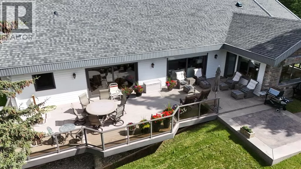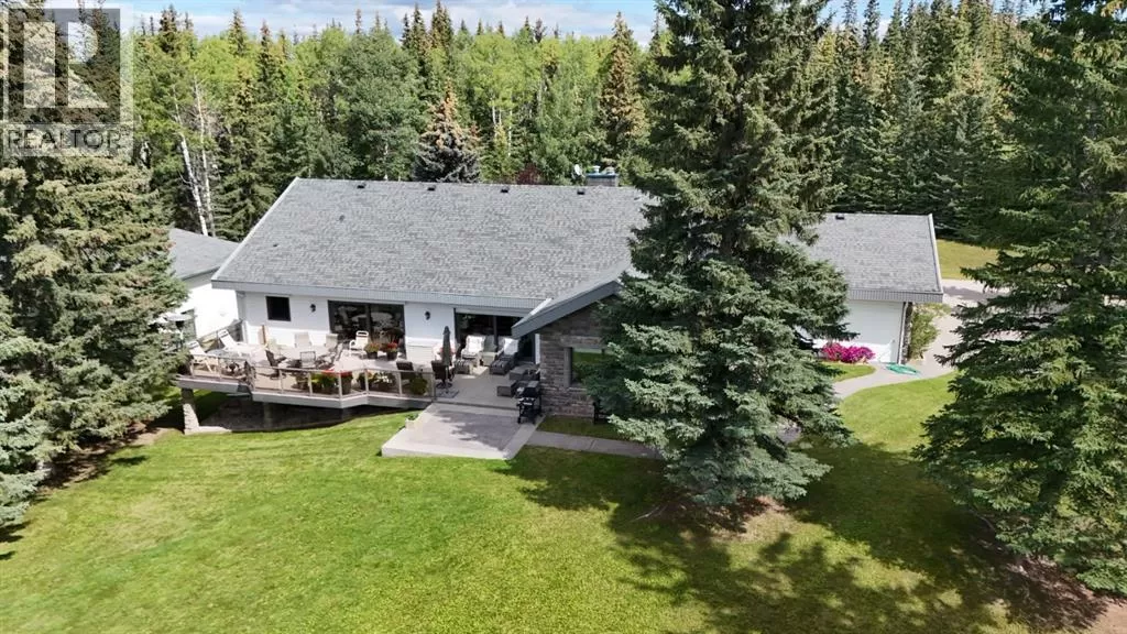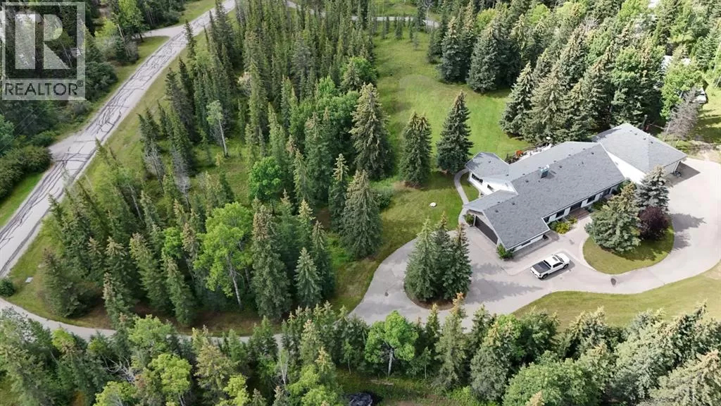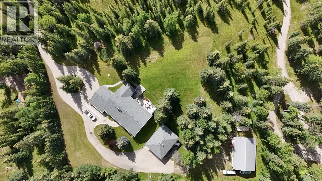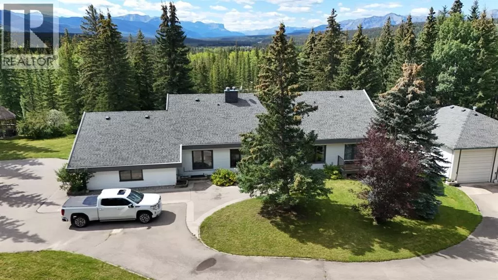 A rare opportunity to own a luxury property perched on 3.26 private treed acres in Seabolt Estates. This expansive bungalow offers the convenience of single level living combined with a fully developed walk out basement, an attached double garage, and 2 shops. Thoughtfully designed floor plan delivers generous entertaining zones on the main floor. From the moment you enter, the home radiates a sense of refined luxury. The main level showcases hardwood flooring seamlessly connecting a pair of inviting living rooms designed for formal entertaining or everyday family gatherings. The kitchen is a centerpiece of modern elegance, with quartz counters, an island with eating bar, high end appliances, and kitchen nook accented with coffered ceilings and wainscotting. A formal dining room can also be found, which design also allows this room to flex into another bedroom, with patio doors out. The primary bedroom features a luxury ensuite with corner soaking tub, walk in shower, and in floor heat. Another office/room that features a built in Murphy Bed and Cabinetry. A powder room, and a well appointed laundry room with a huge pantry, a farmhouse sink, and access to the heated attached garage round out the main floor. The lower level is completely developed, with a family room and bar for entertaining, while two walkouts expand the living area to the outdoors and enhance accessibility. The basement includes 4 additional bedrooms, and a kitchen suite to further broaden the possibilities for in law arrangements, rental income, or a private living space for extended family. 3 of the 4 bedrooms feature an ensuite in each room., and another 3 piece bathroom is located in the basement. European tilt and turn windows flood the interior with natural light, and also features roll shutters that enhance energy efficiency, and privacy, while mountain views bring the outdoors inside and elevate everyday living. Outdoor living on this property is as impressive as the interior. A dedicated firepit area provides a focal point for gatherings, and relaxing, and features a gazebo and wood shelter. In addition the are 2 shops, presenting a rare combination of vehicle storage and hobby functionality. Shop #1: 30 X 38'10 with 13.6 ceilings and two 12' high doors. Shop #2: 46 X 30 with 14' ceilings, two 12' high doors, and one 10' high door. Both shops are heated with driveway access. This property is ready to welcome its new owner. (id:27476)