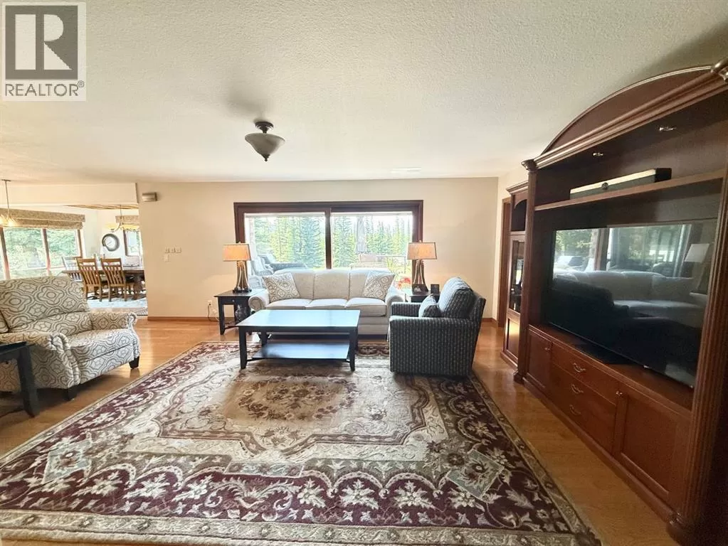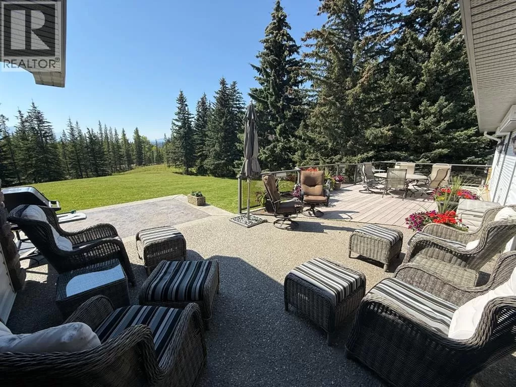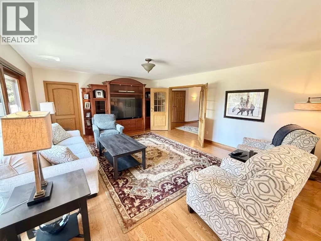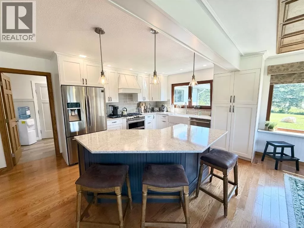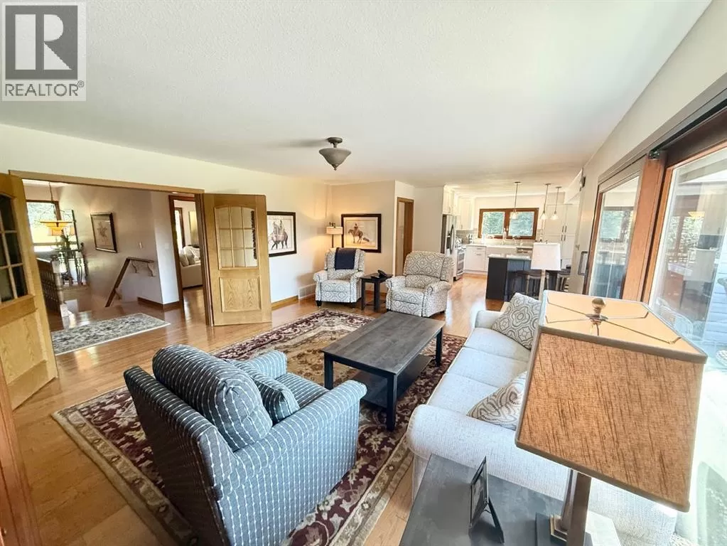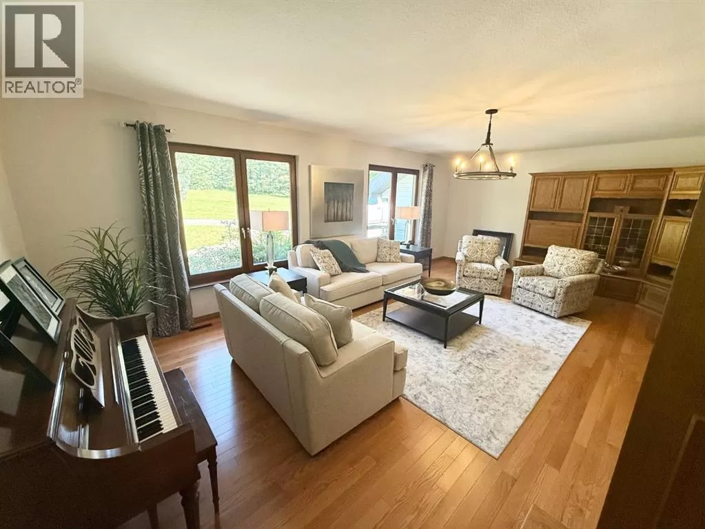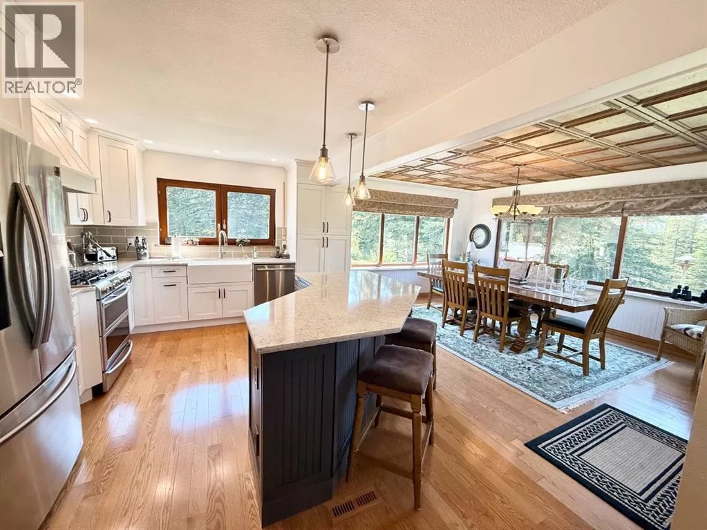 A rare opportunity to own a luxury property perched on 3.26 private treed acres in Seabolt Estates. This expansive bungalow offers the convenience of single level living combined with a fully developed walk out basement, an attached double garage, and 2 shops. Thoughtfully designed floor plan delivers generous entertaining zones on the main floor. From the moment you enter, the home radiates a sense of refined luxury. The main level showcases hardwood flooring seamlessly connecting a pair of inviting living rooms designed for formal entertaining or everyday family gatherings. The kitchen is a centerpiece of modern elegance, with quartz counters, an island with eating bar, high end appliances, and kitchen nook accented with coffered ceilings and wainscotting. A formal dining room can also be found, which design also allows this room to flex into another bedroom, with patio doors out. The primary bedroom features a luxury ensuite with corner soaking tub, walk in shower, and in floor heat. Another office/room that features a built in Murphy Bed and Cabinetry. A powder room, and a well appointed laundry room with a huge pantry, a farmhouse sink, and access to the heated attached garage round out the main floor. The lower level is completely developed, with a family room and bar for entertaining, while two walkouts expand the living area to the outdoors and enhance accessibility. The basement includes 4 additional bedrooms, and a kitchen suite to further broaden the possibilities for in law arrangements, rental income, or a private living space for extended family. 3 of the 4 bedrooms feature an ensuite in each room., and another 3 piece bathroom is located in the basement. European tilt and turn windows flood the interior with natural light, and also features roll shutters that enhance energy efficiency, and privacy, while mountain views bring the outdoors inside and elevate everyday living. Outdoor living on this property is as impressive as the interior. A dedicated firepit area provides a focal point for gatherings, and relaxing, and features a gazebo and wood shelter. In addition the are 2 shops, presenting a rare combination of vehicle storage and hobby functionality. Shop #1: 30 X 38'10 with 13.6 ceilings and two 12' high doors. Shop #2: 46 X 30 with 14' ceilings, two 12' high doors, and one 10' high door. Both shops are heated with driveway access. This property is ready to welcome its new owner. (id:27476)