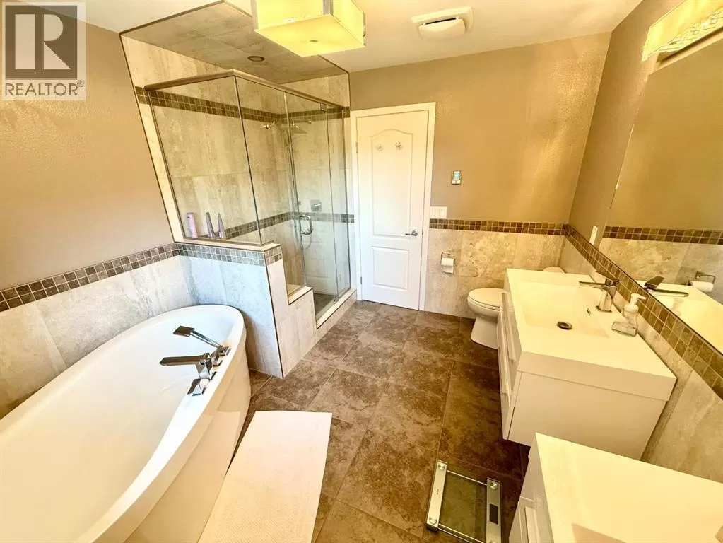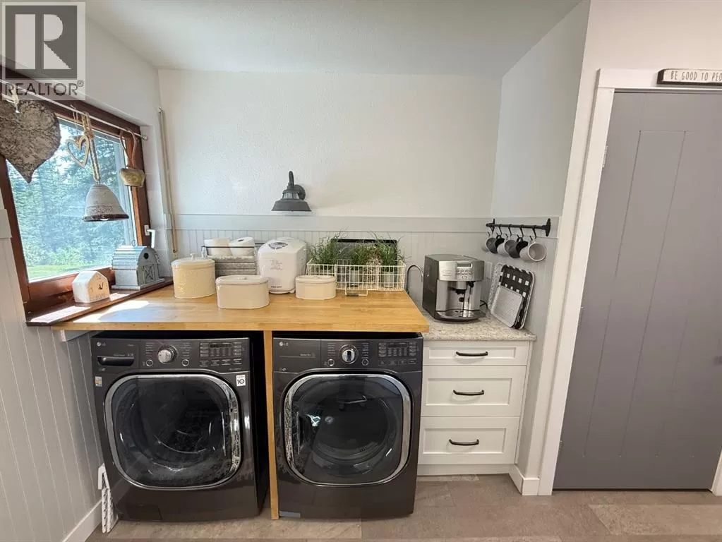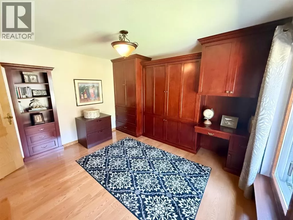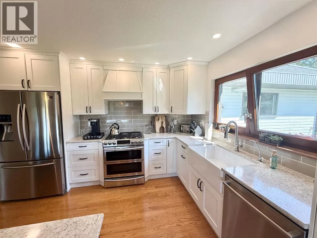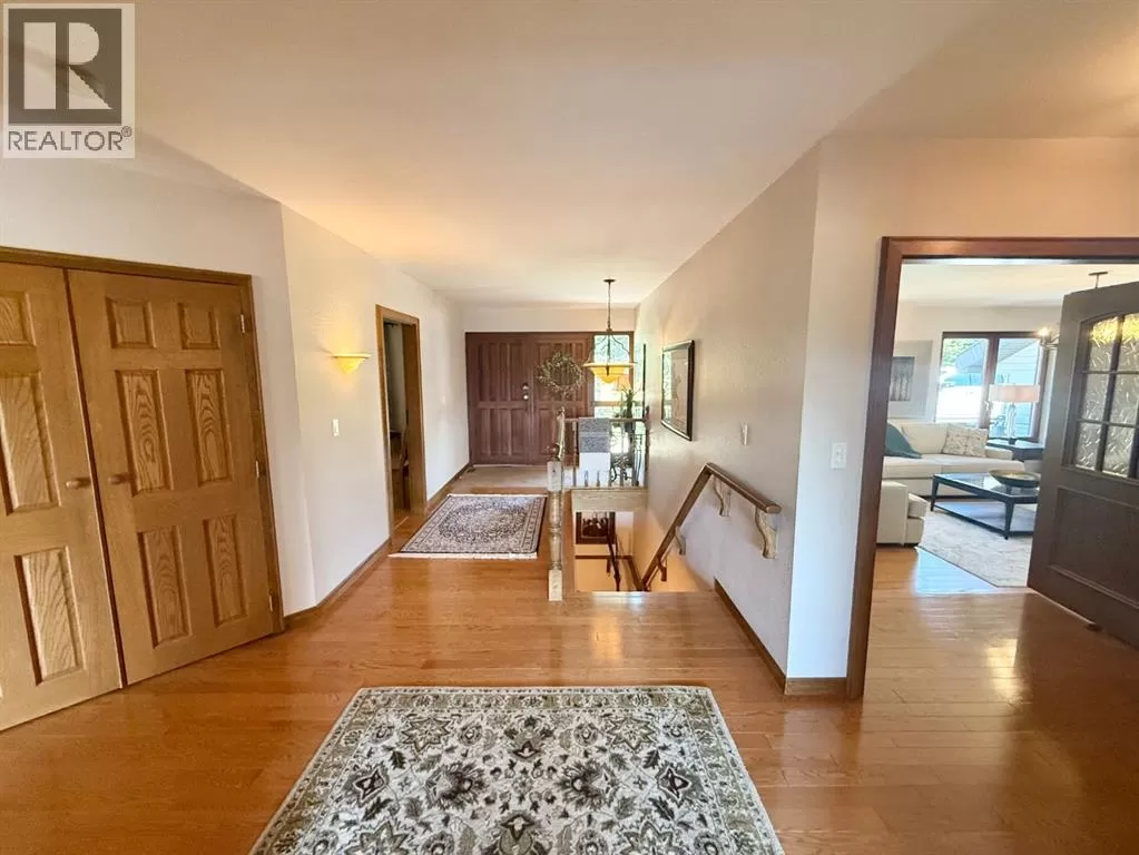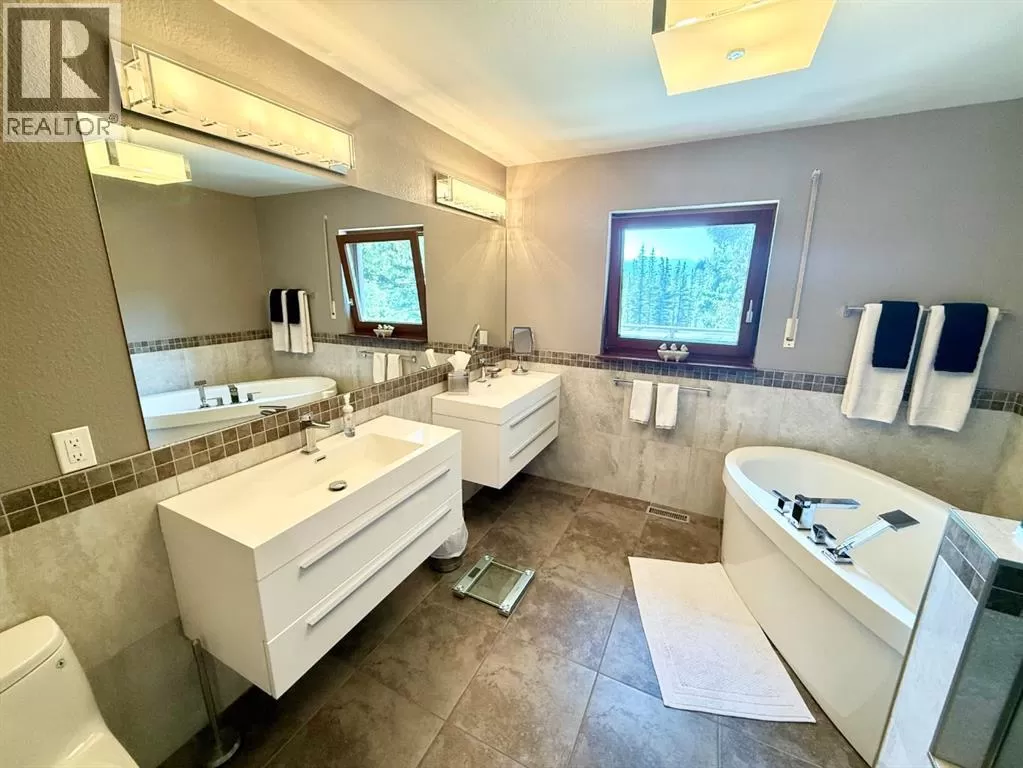 A rare opportunity to own a luxury property perched on 3.26 private treed acres in Seabolt Estates. This expansive bungalow offers the convenience of single level living combined with a fully developed walk out basement, an attached double garage, and 2 shops. Thoughtfully designed floor plan delivers generous entertaining zones on the main floor. From the moment you enter, the home radiates a sense of refined luxury. The main level showcases hardwood flooring seamlessly connecting a pair of inviting living rooms designed for formal entertaining or everyday family gatherings. The kitchen is a centerpiece of modern elegance, with quartz counters, an island with eating bar, high end appliances, and kitchen nook accented with coffered ceilings and wainscotting. A formal dining room can also be found, which design also allows this room to flex into another bedroom, with patio doors out. The primary bedroom features a luxury ensuite with corner soaking tub, walk in shower, and in floor heat. Another office/room that features a built in Murphy Bed and Cabinetry. A powder room, and a well appointed laundry room with a huge pantry, a farmhouse sink, and access to the heated attached garage round out the main floor. The lower level is completely developed, with a family room and bar for entertaining, while two walkouts expand the living area to the outdoors and enhance accessibility. The basement includes 4 additional bedrooms, and a kitchen suite to further broaden the possibilities for in law arrangements, rental income, or a private living space for extended family. 3 of the 4 bedrooms feature an ensuite in each room., and another 3 piece bathroom is located in the basement. European tilt and turn windows flood the interior with natural light, and also features roll shutters that enhance energy efficiency, and privacy, while mountain views bring the outdoors inside and elevate everyday living. Outdoor living on this property is as impressive as the interior. A dedicated firepit area provides a focal point for gatherings, and relaxing, and features a gazebo and wood shelter. In addition the are 2 shops, presenting a rare combination of vehicle storage and hobby functionality. Shop #1: 30 X 38'10 with 13.6 ceilings and two 12' high doors. Shop #2: 46 X 30 with 14' ceilings, two 12' high doors, and one 10' high door. Both shops are heated with driveway access. This property is ready to welcome its new owner. (id:27476)